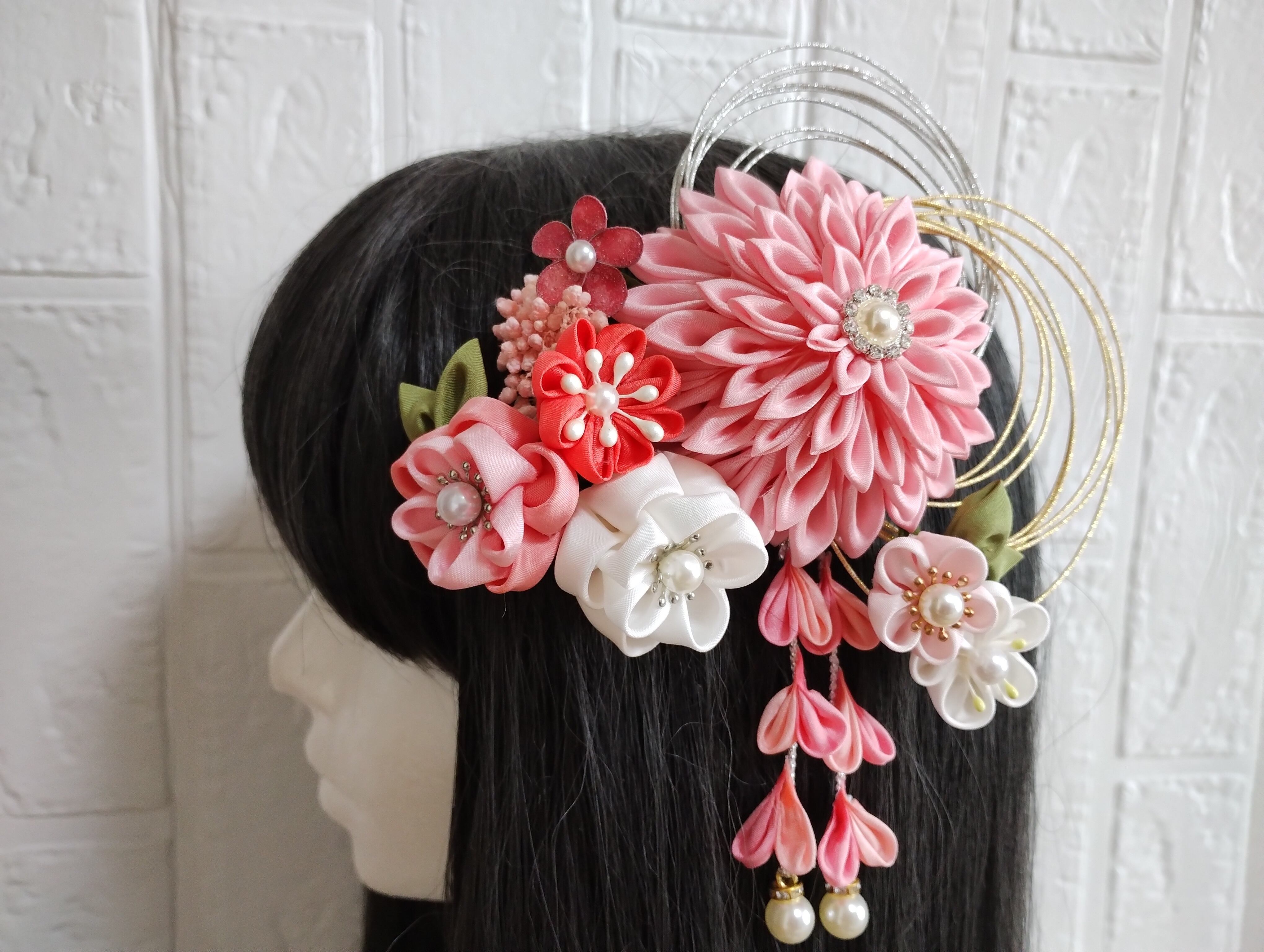 色打掛、成人式、卒業式 、七五三、浴衣、結婚式などの着物の時の和装髪飾りです。