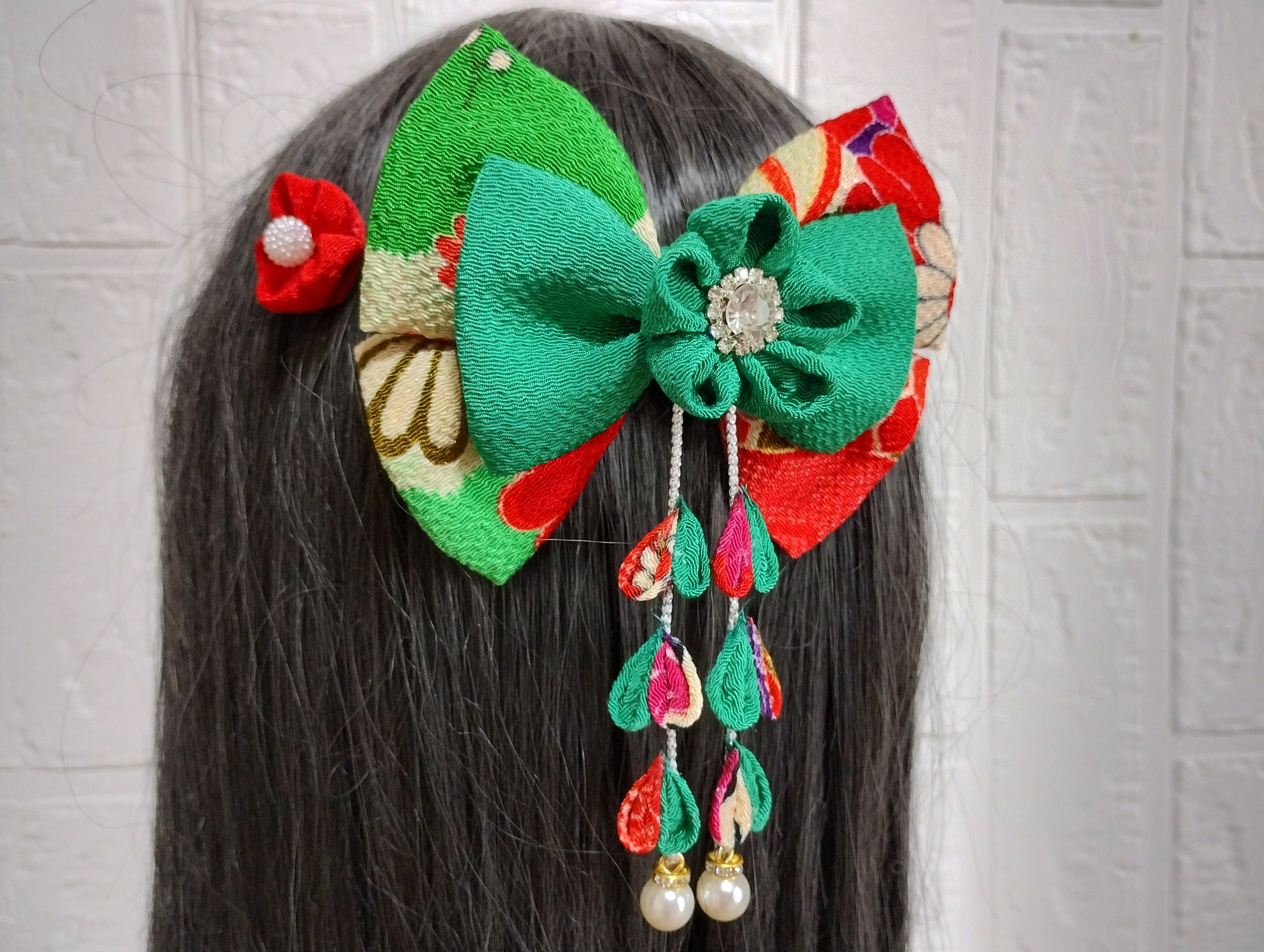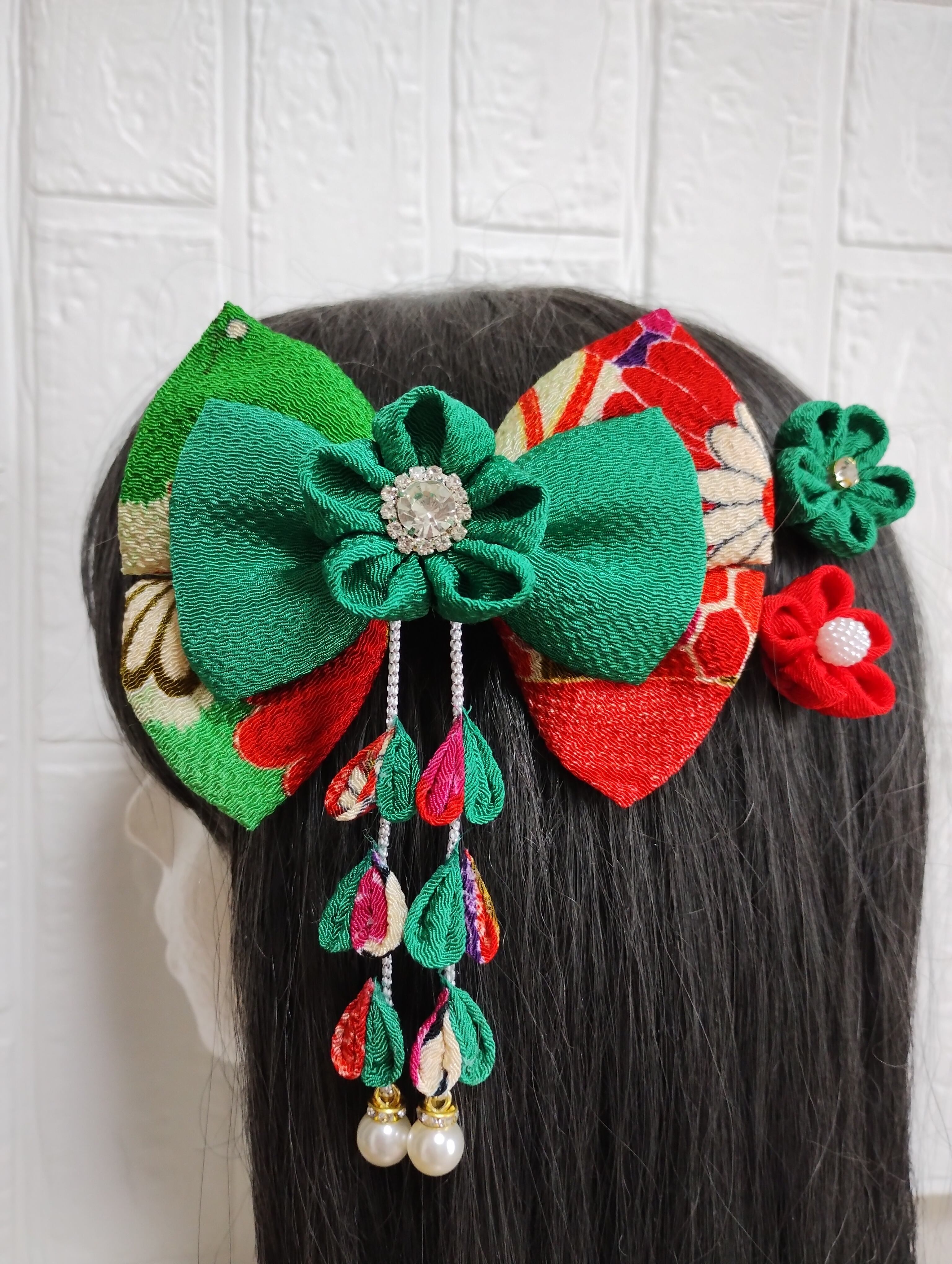 髪飾り 髪飾り緑 七五三髪飾り 卒業式髪飾り 成人式髪飾り つまみ細工