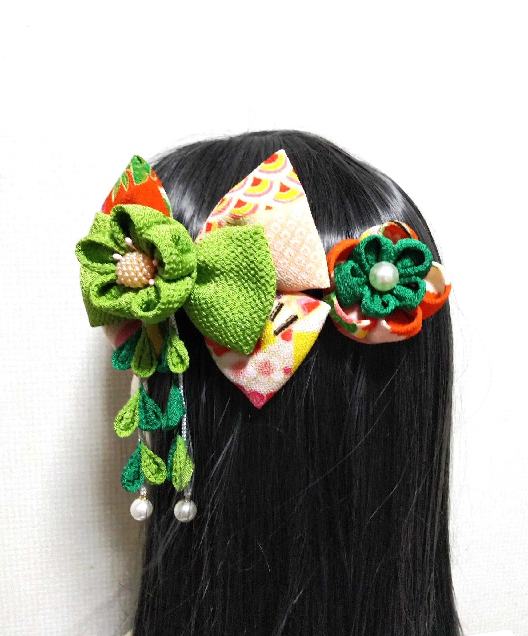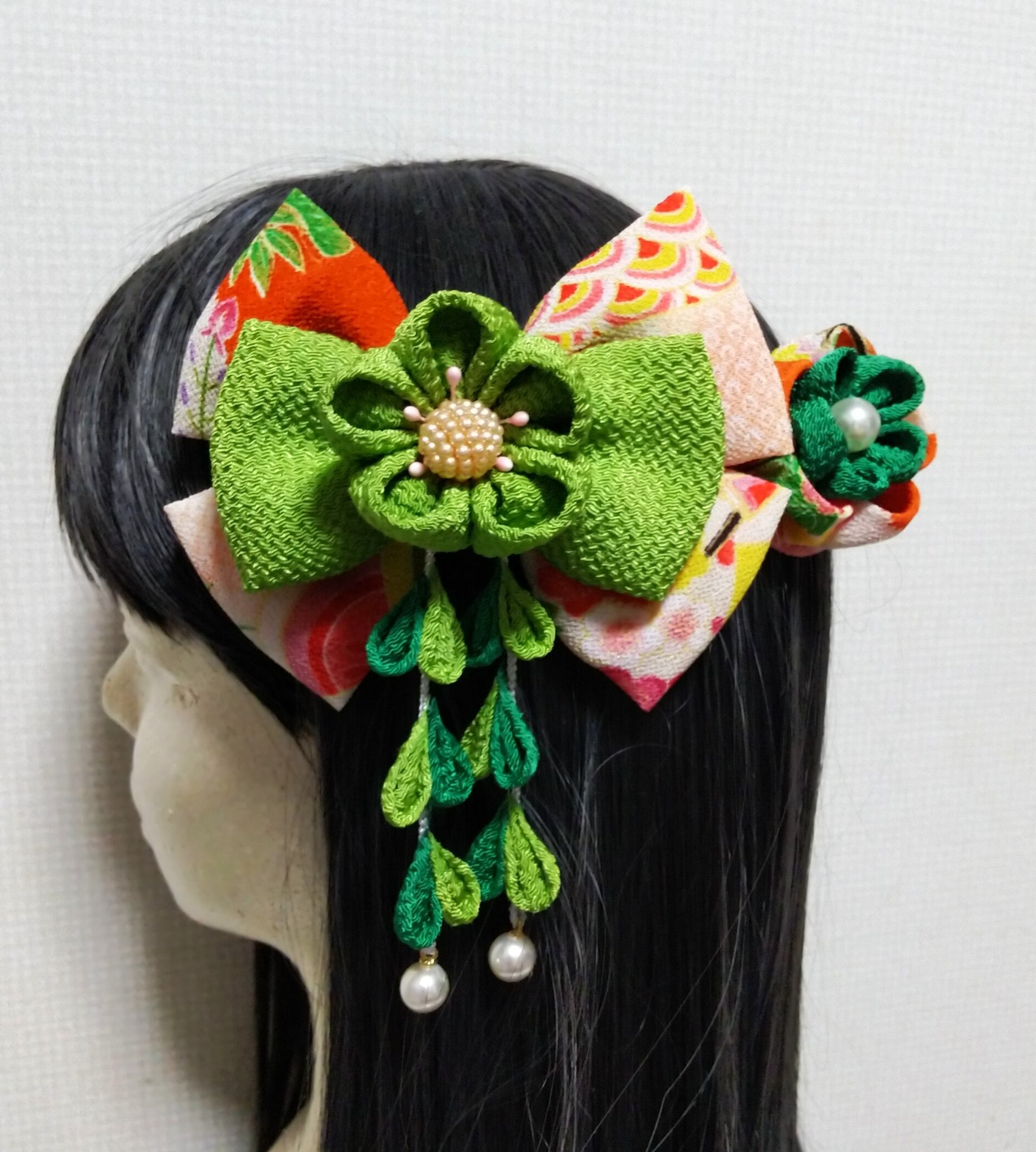 髪飾り黄緑 リボン黄緑 成人式髪飾り卒業式髪飾り七五三髪飾り