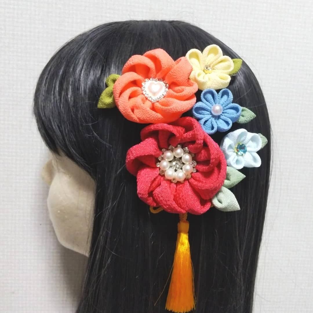 #成人式 #成人式髪飾り #卒業式髪飾り #七五三髪飾り #袴髪飾り #浴衣 #えんじ色 #オレンジ