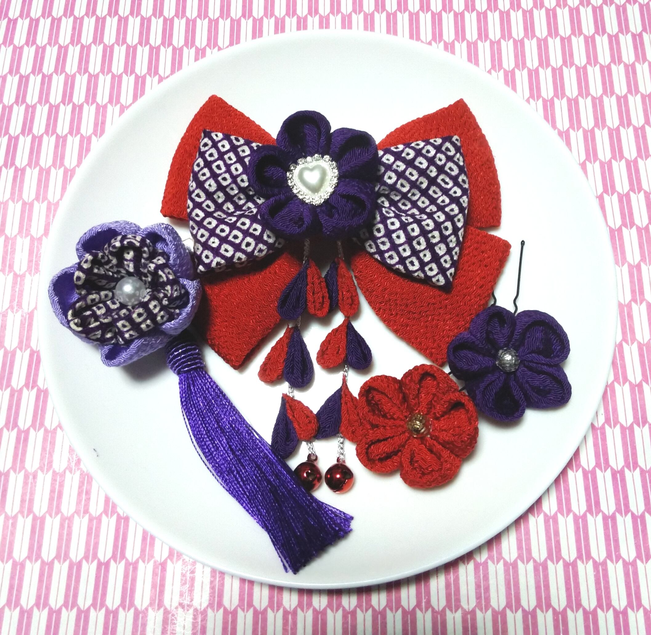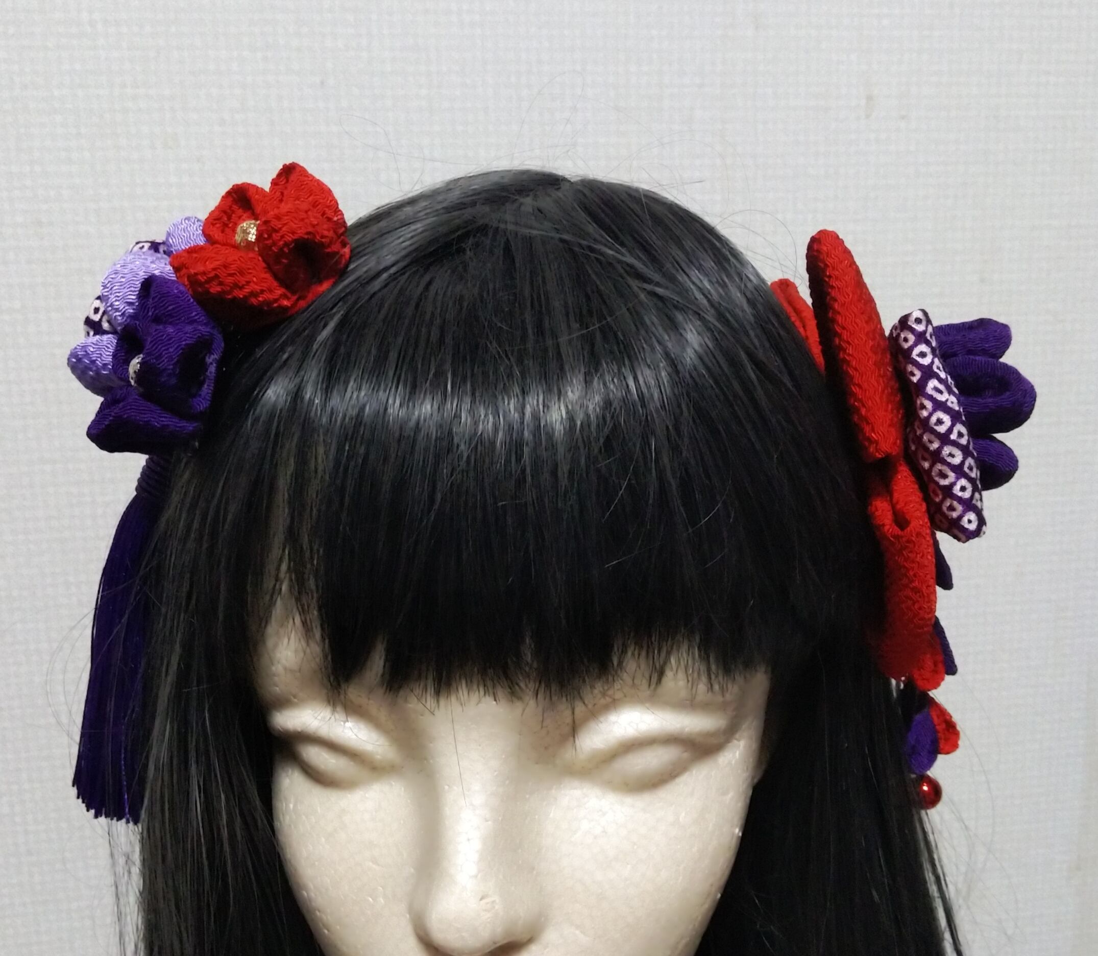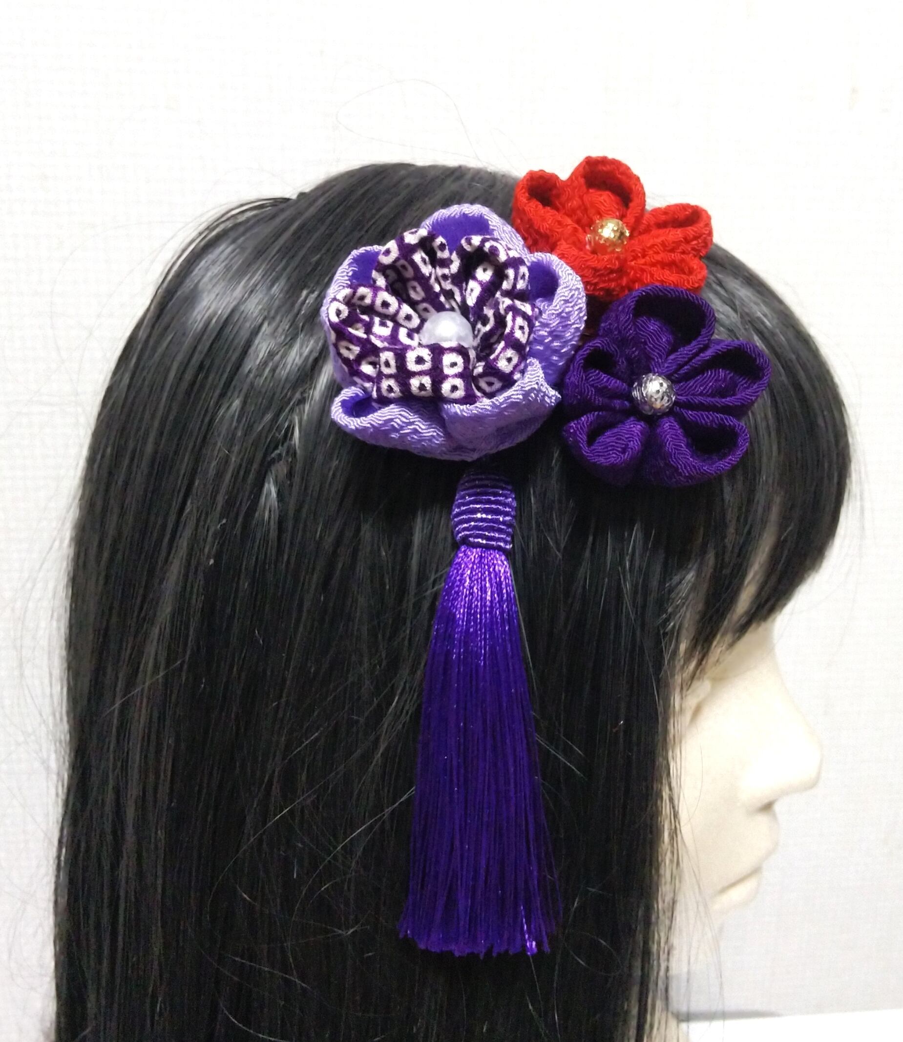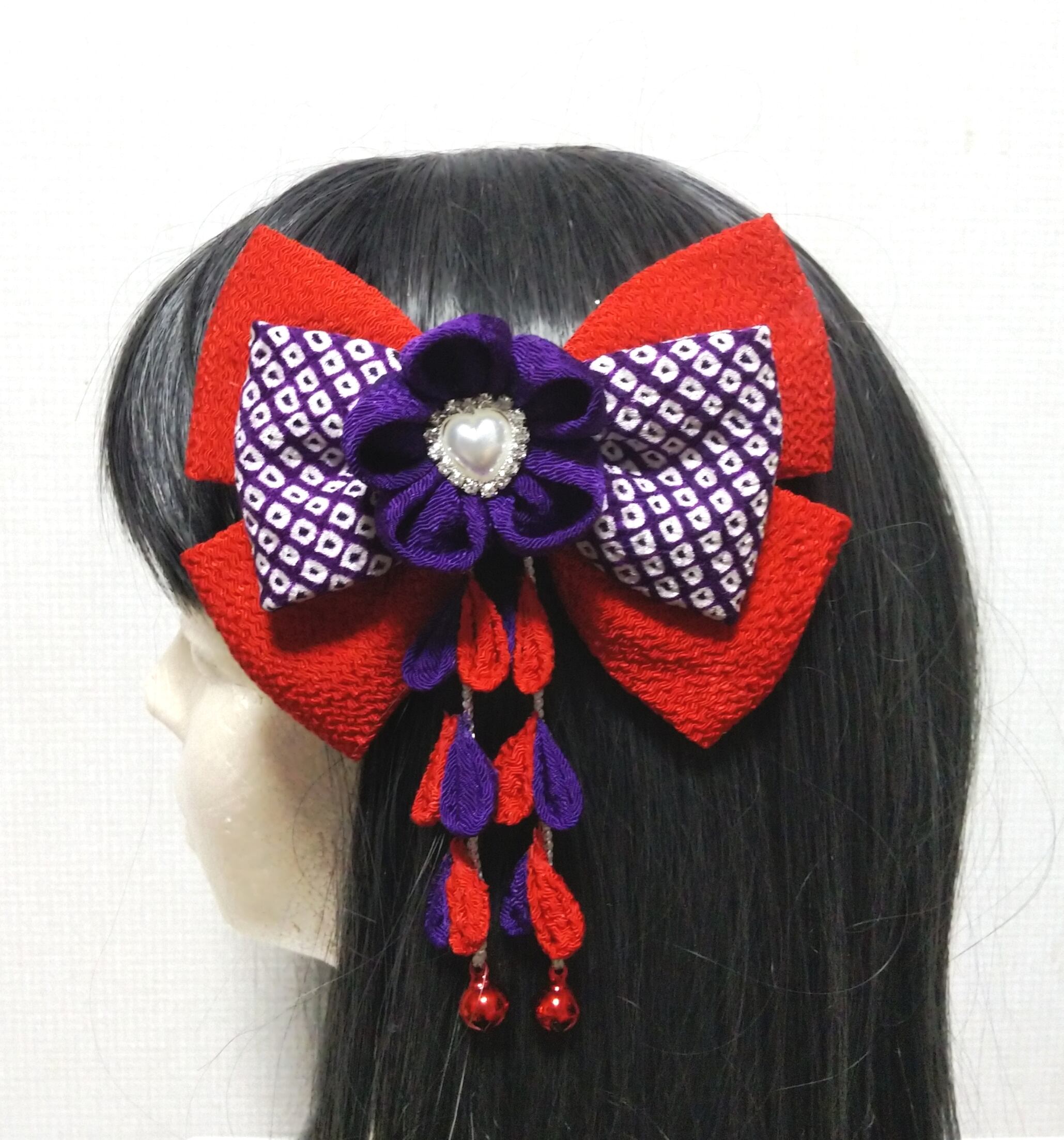 髪飾り紫 髪飾り赤 リボン紫 リボン赤 成人式髪飾り 卒業式髪飾り 七五三髪飾り