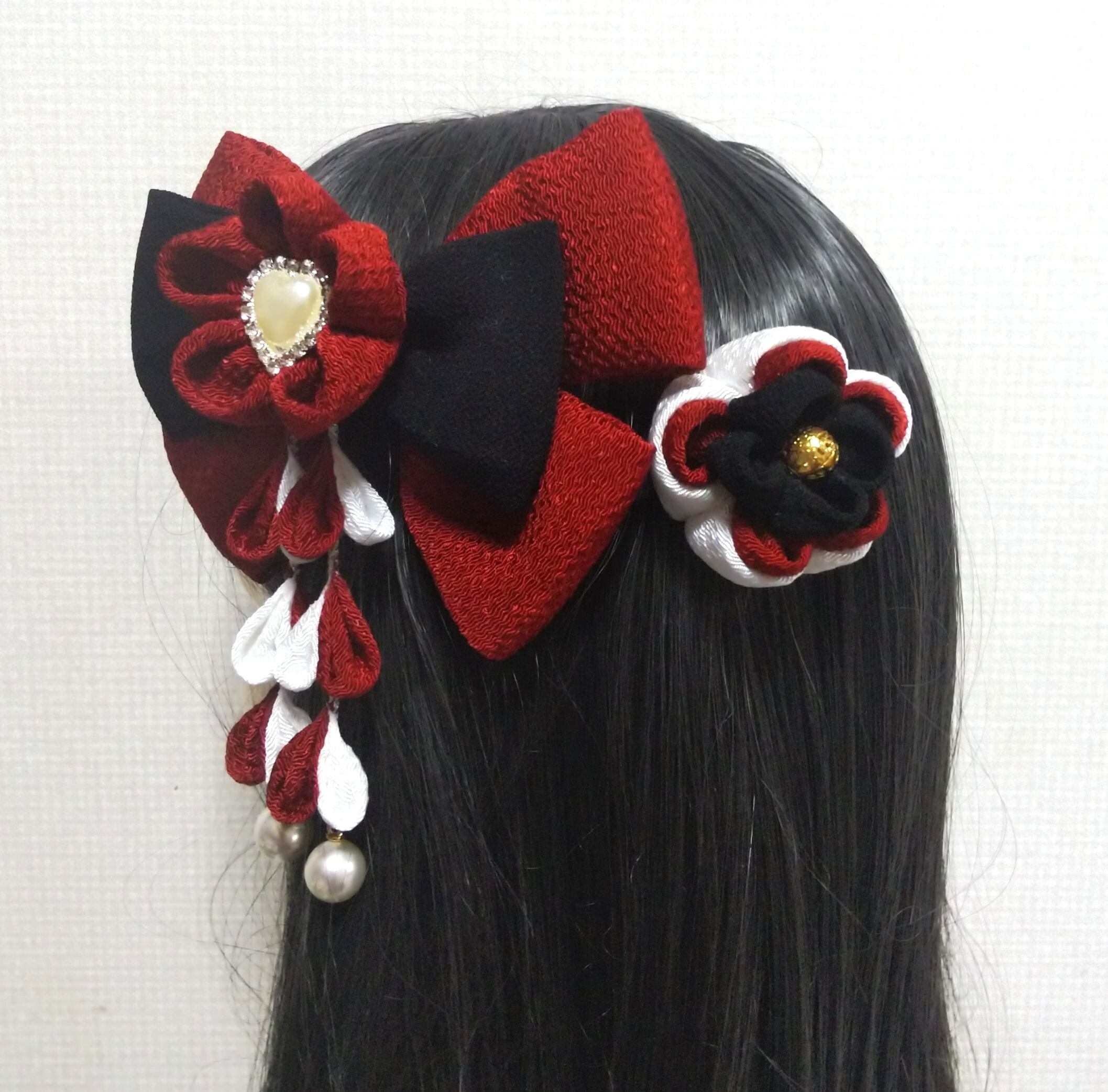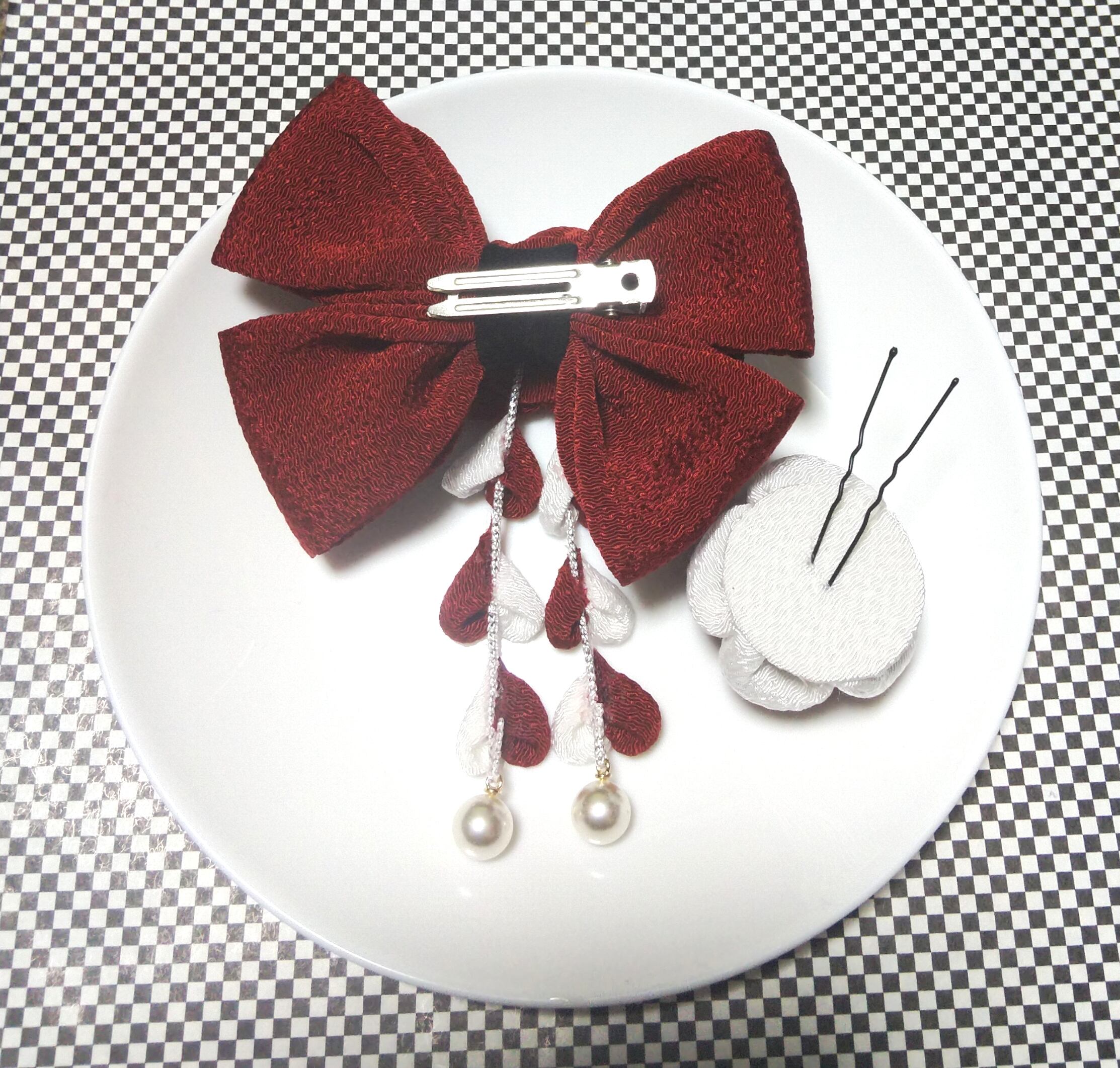 髪飾りえんじ リボンえんじ 成人式髪飾り 卒業式髪飾り 七五三髪飾り