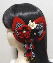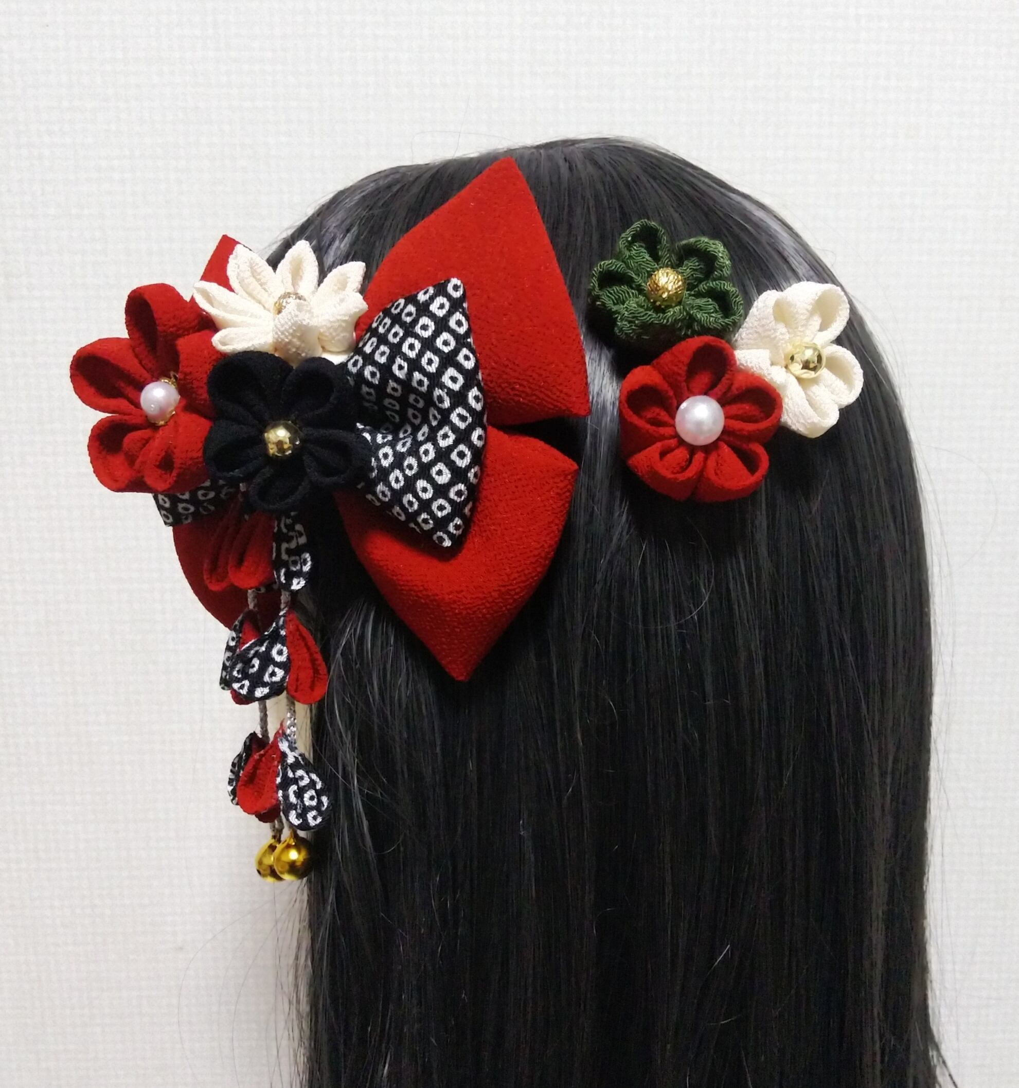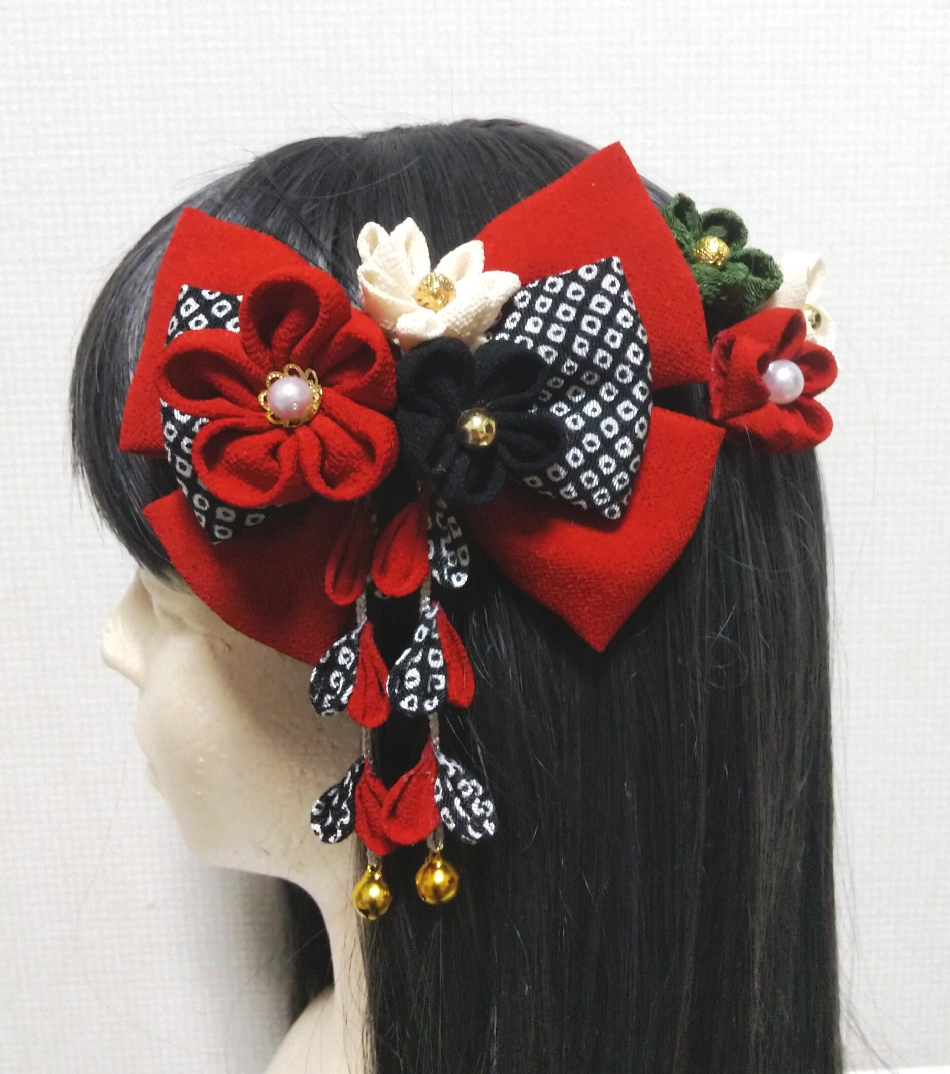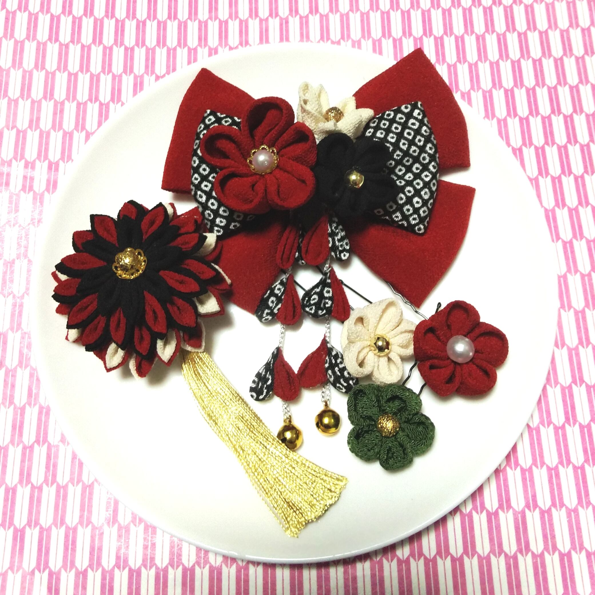 髪飾りえんじ 髪飾り深紅色 リボン 成人式髪飾り 卒業式髪飾り 七五三髪飾り