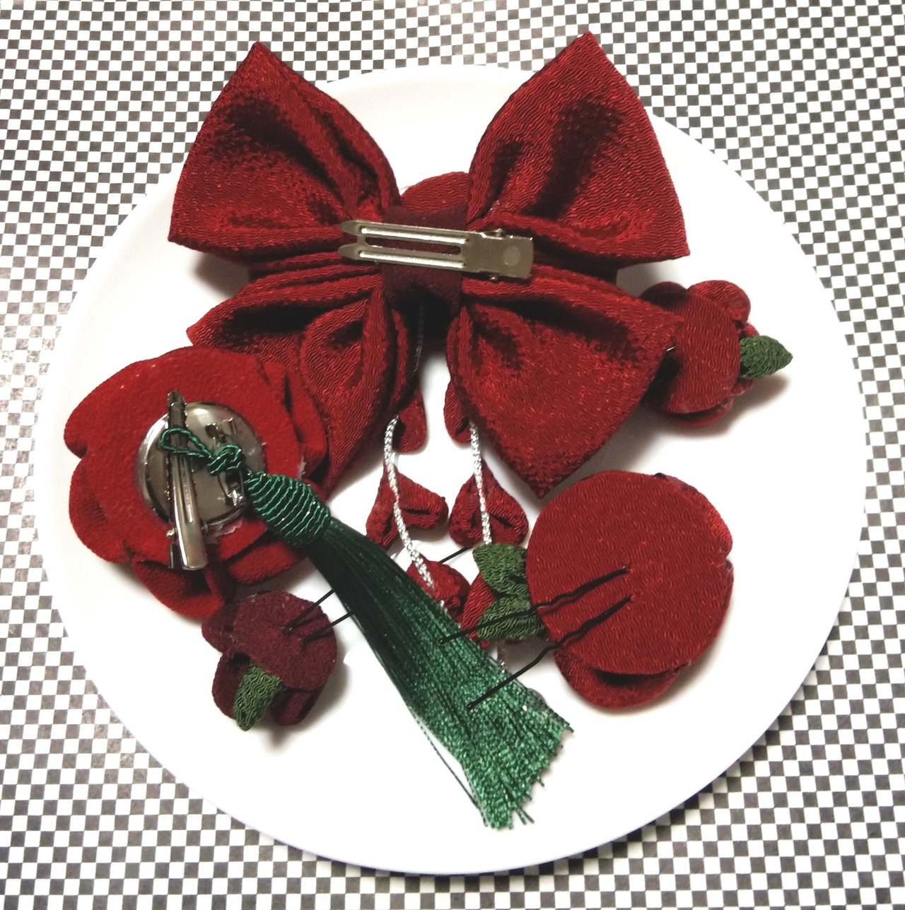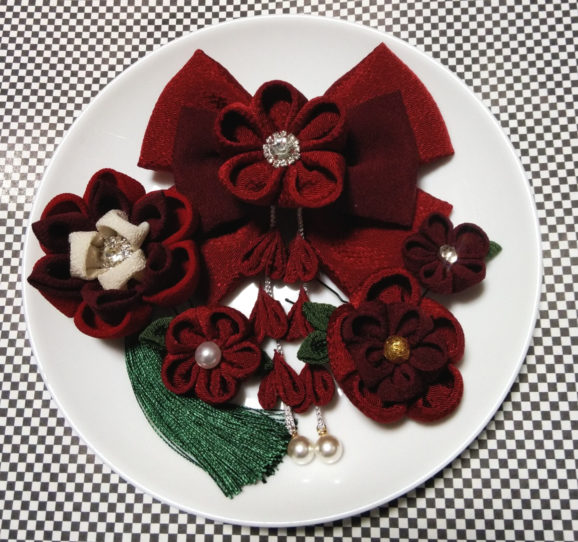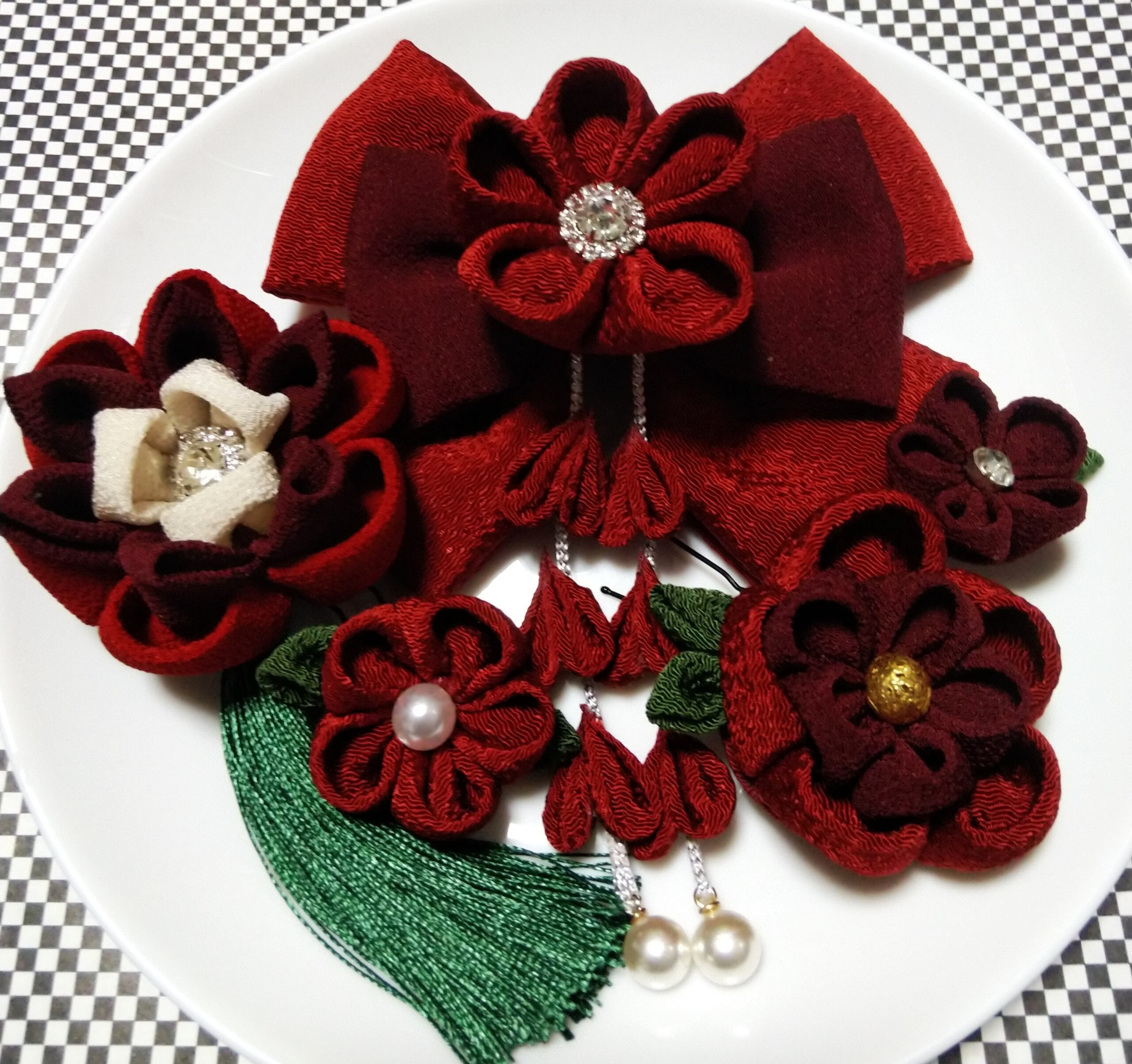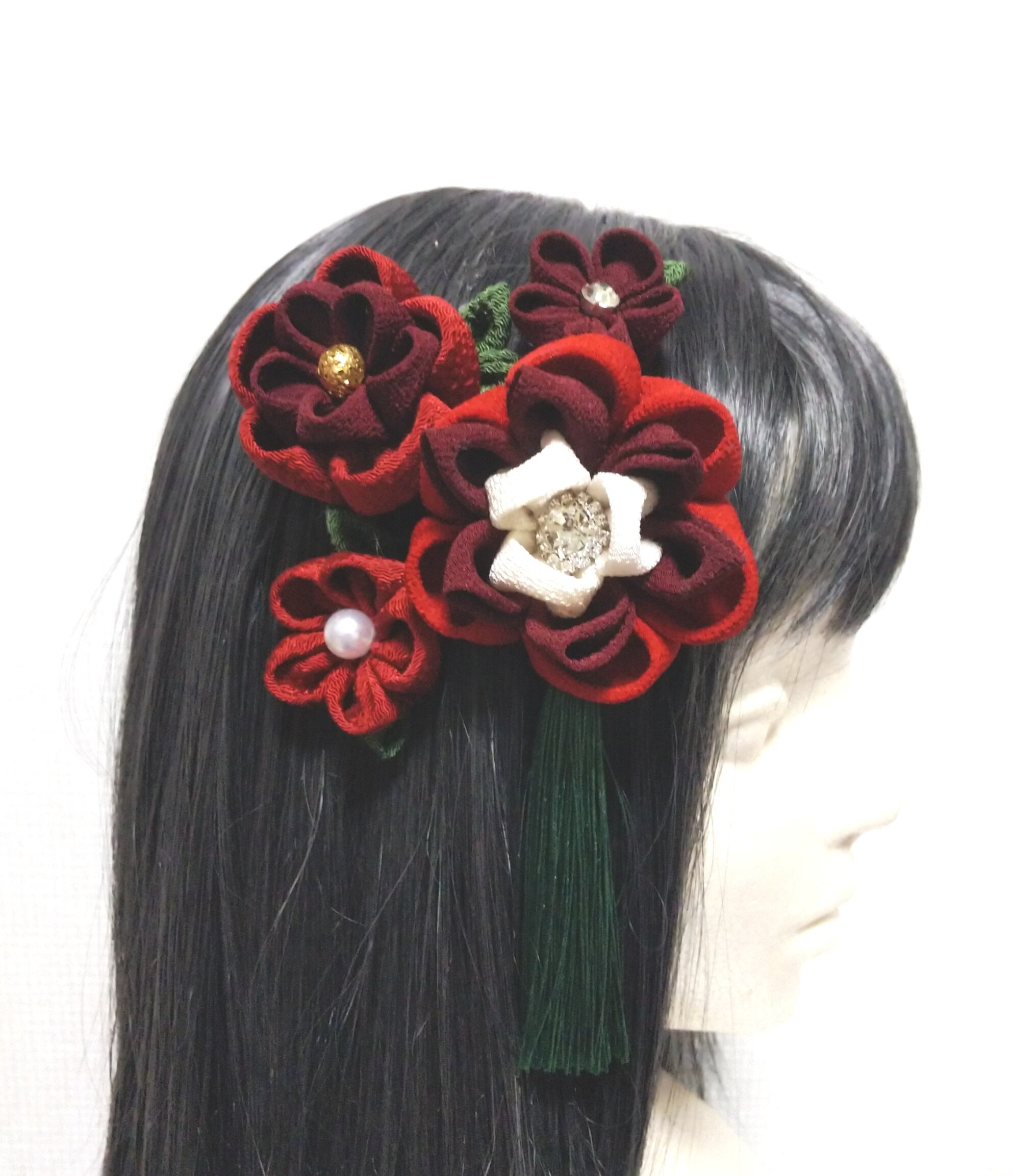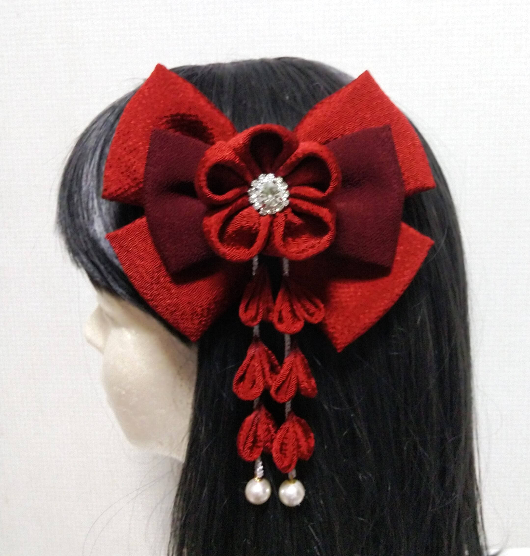 髪飾りえんじ リボンえんじ 成人式髪飾り 卒業式髪飾り 七五三髪飾り