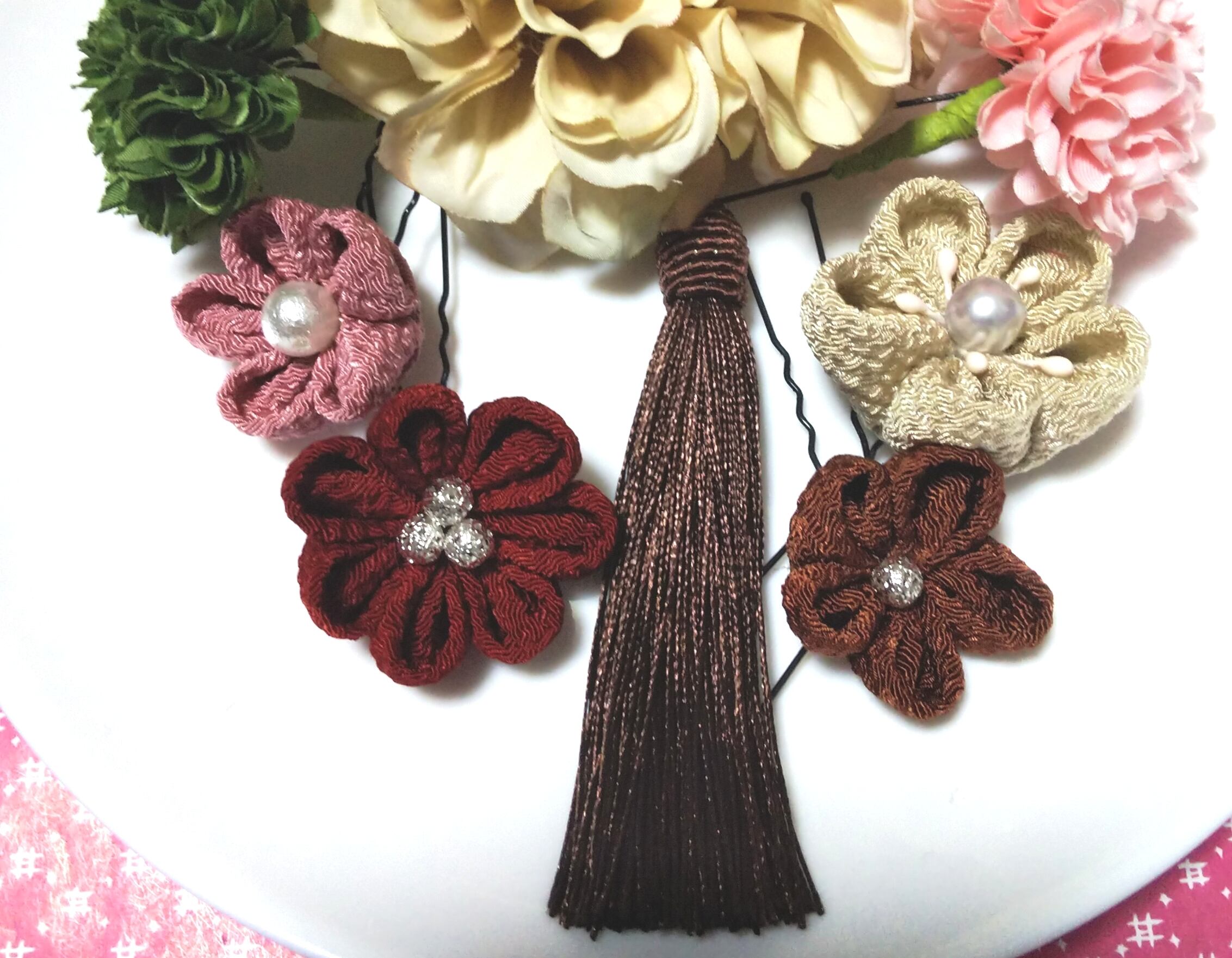 #花 #つまみ細工 #ヘヤピン #ヘアクリップ