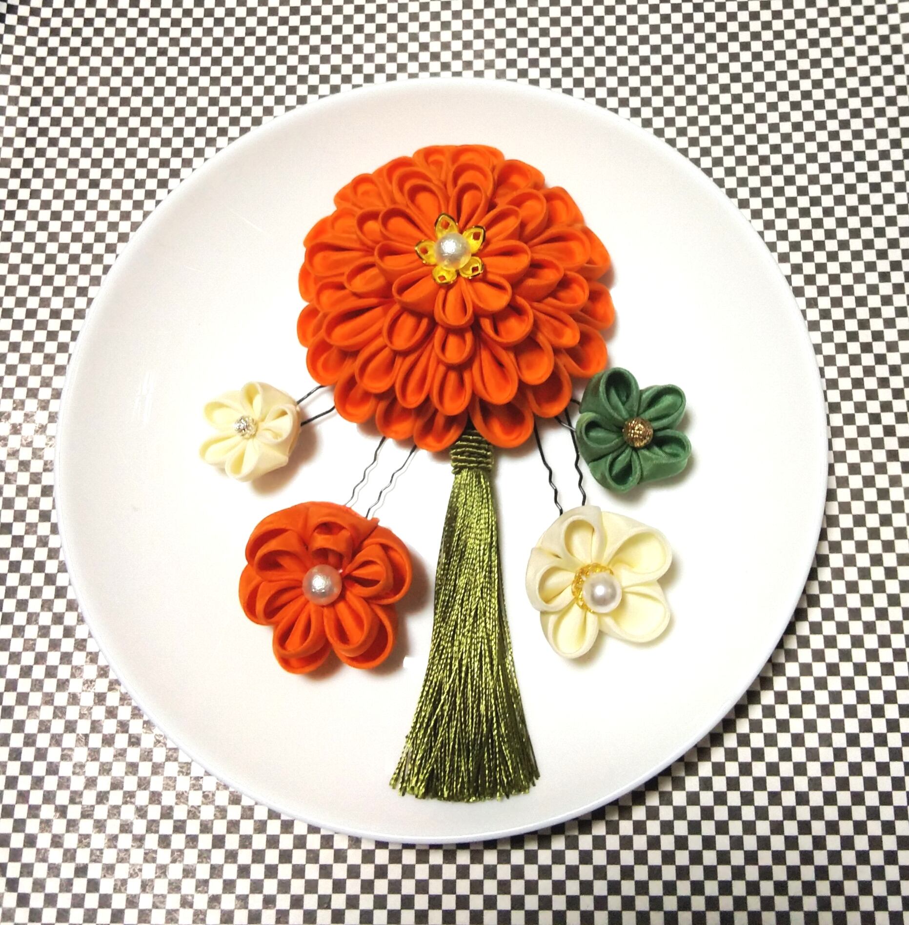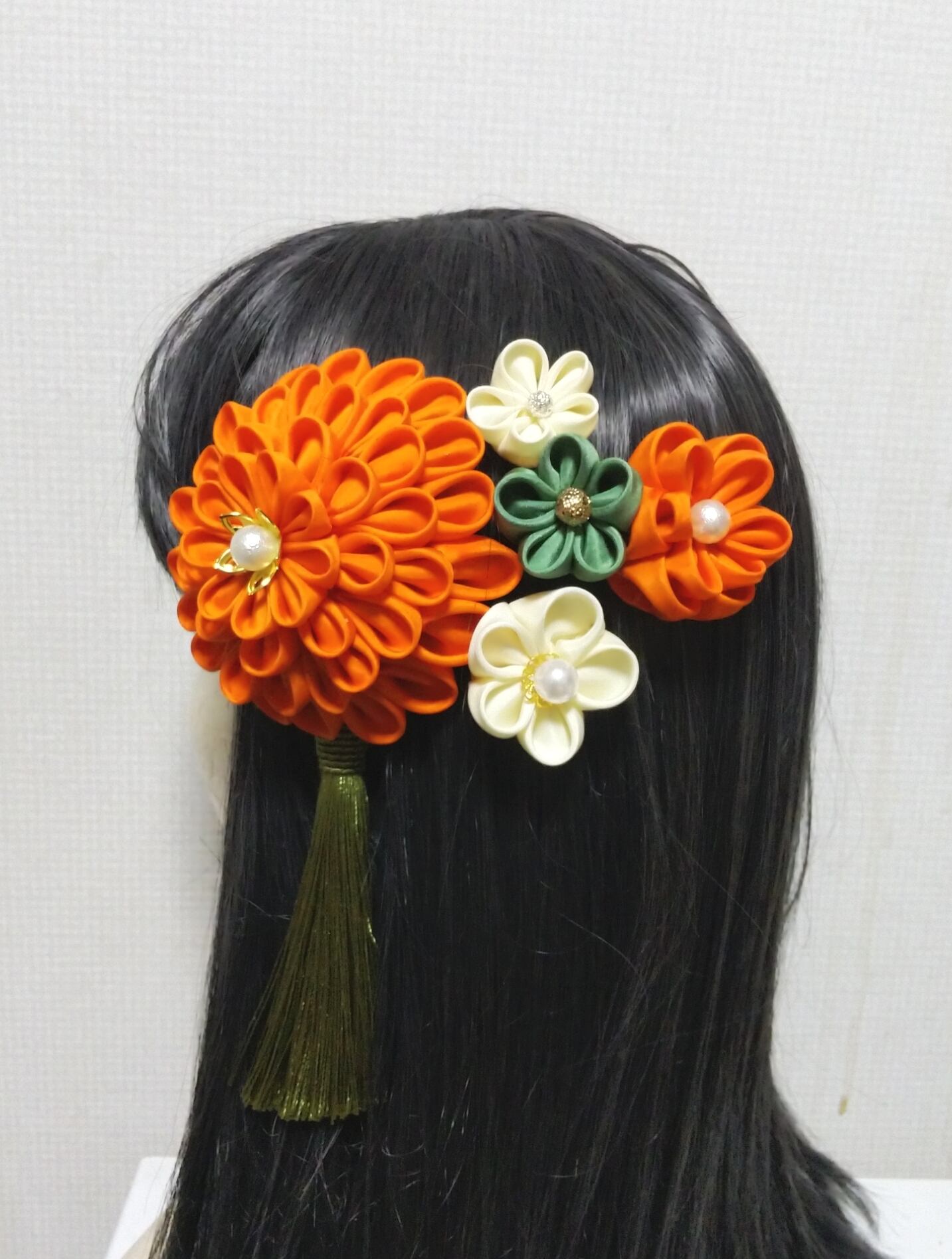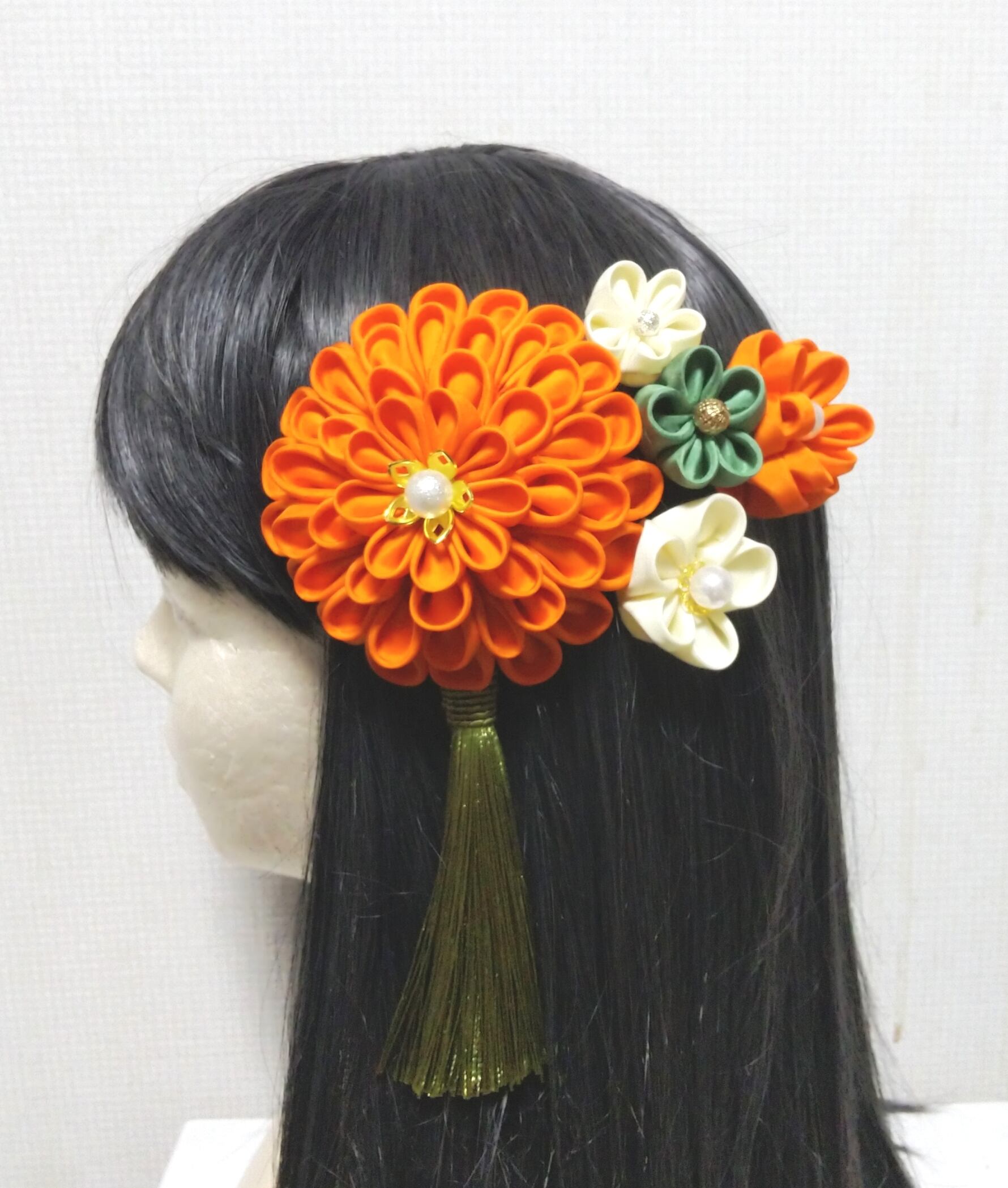 髪飾りオレンジ 成人式髪飾り 卒業式髪飾り 七五三髪飾り 浴衣髪飾り