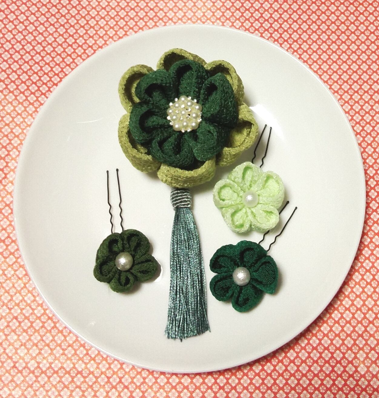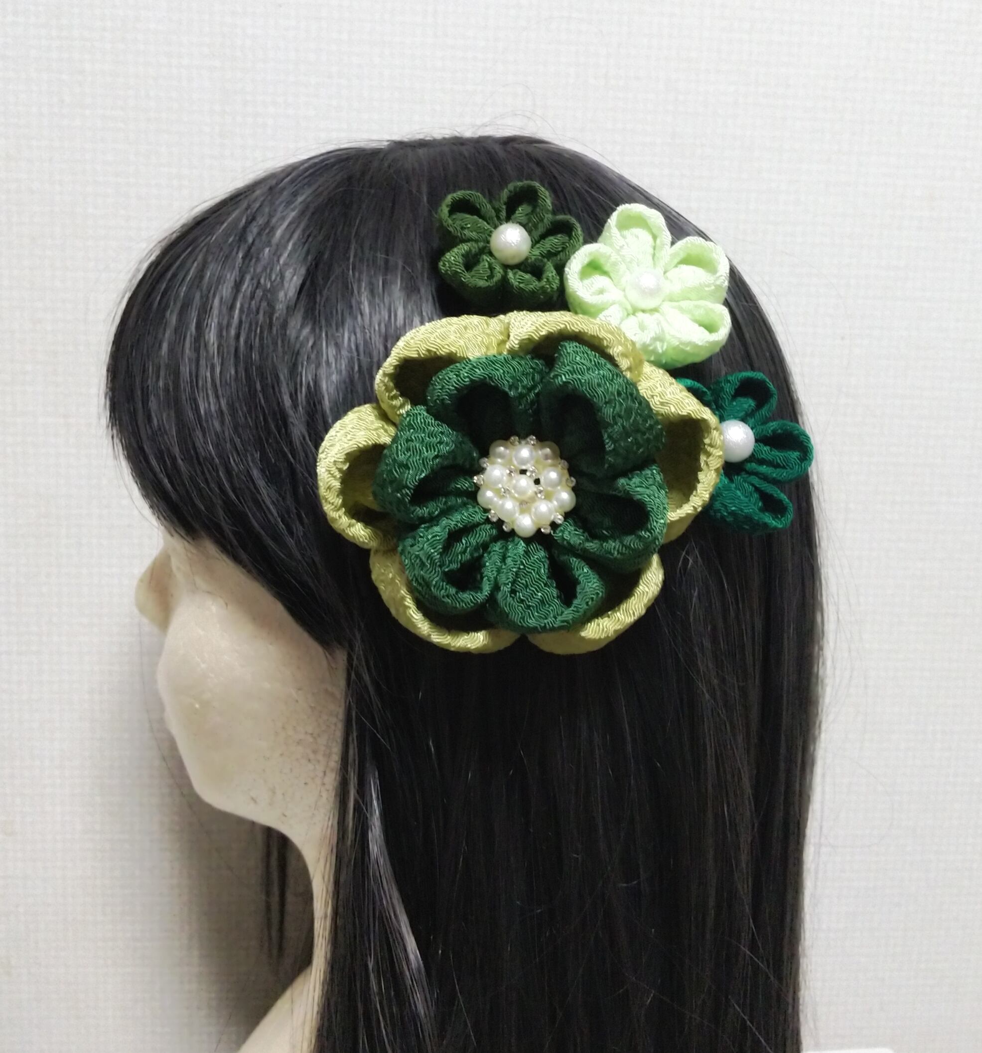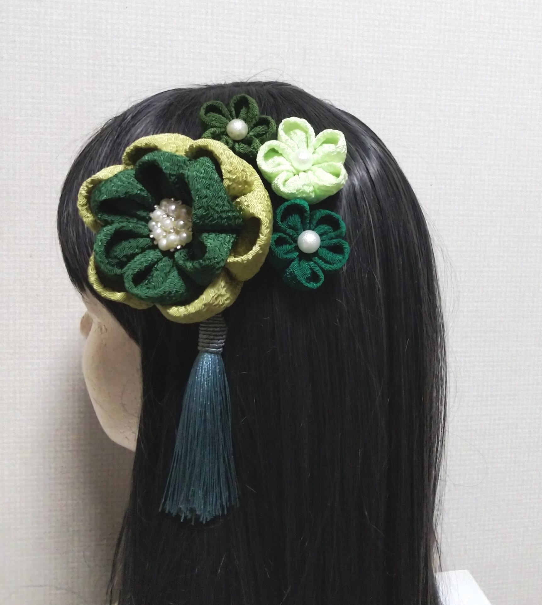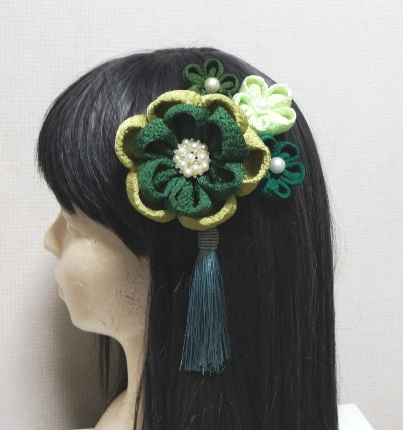 髪飾り緑 成人式髪飾り 卒業式髪飾り 七五三髪飾り 浴衣髪飾り