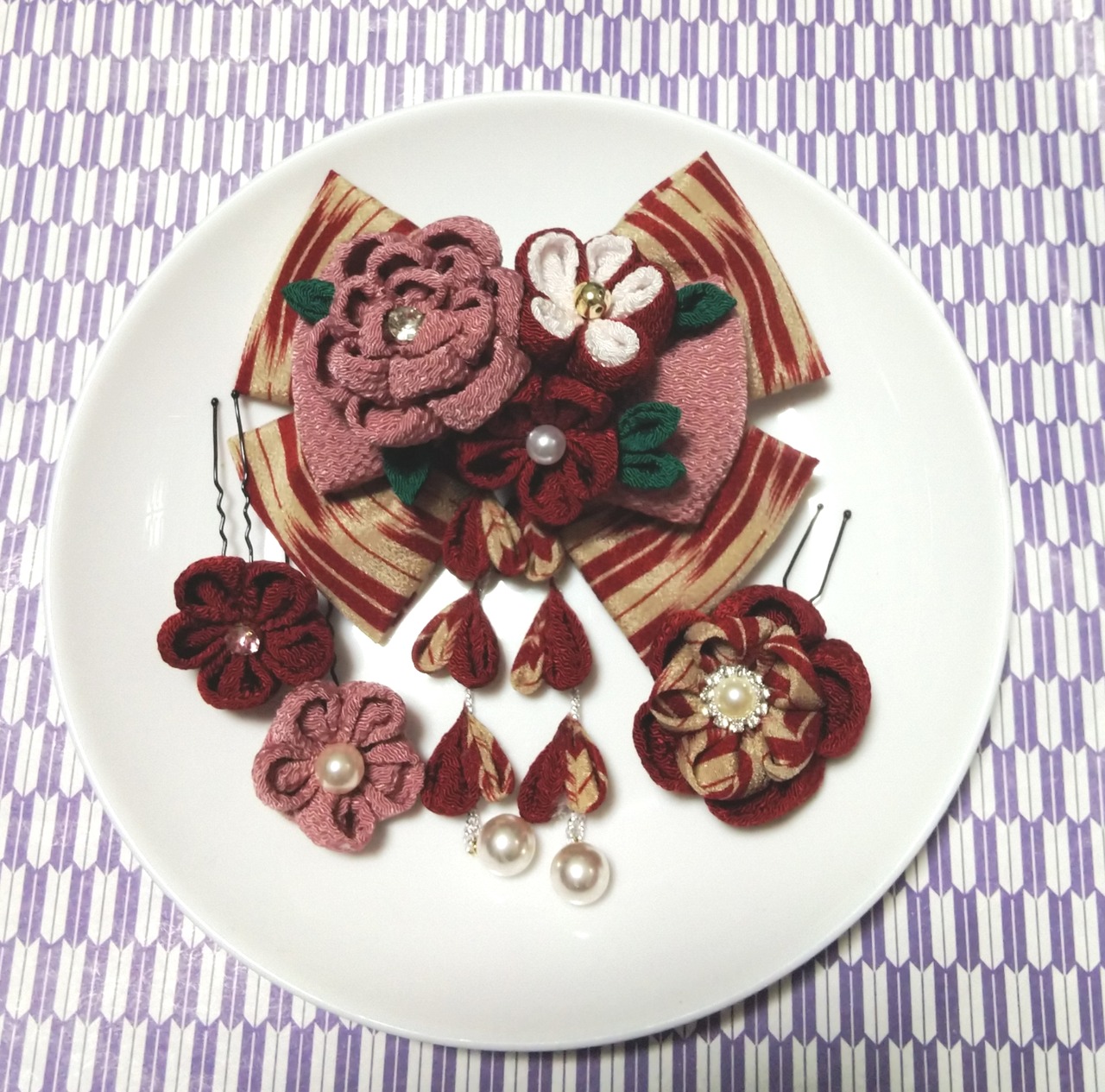 #成人式 #成人式髪飾り #卒業式髪飾り #七五三髪飾り #袴髪飾り #浴衣 #えんじ色 #オレンジ