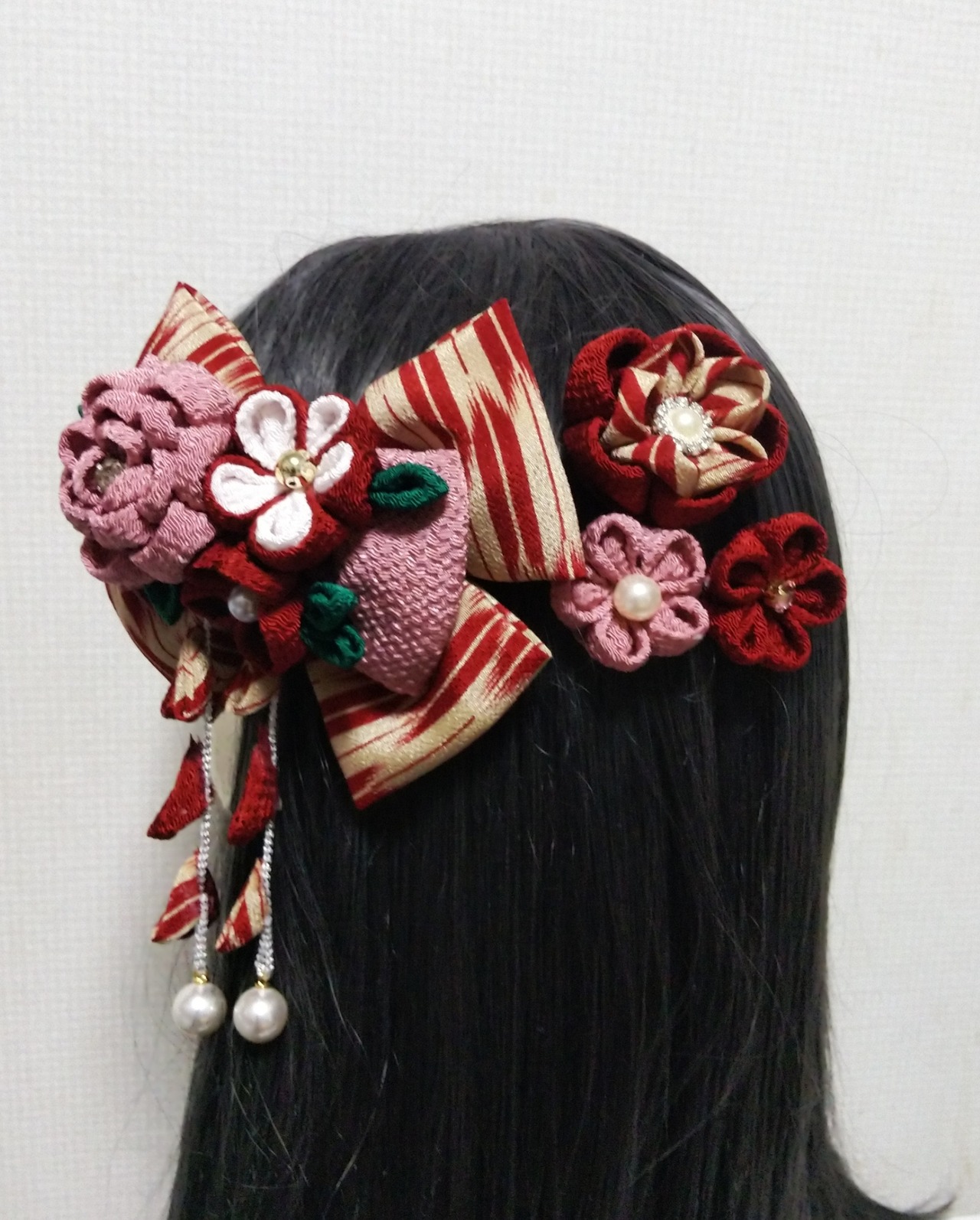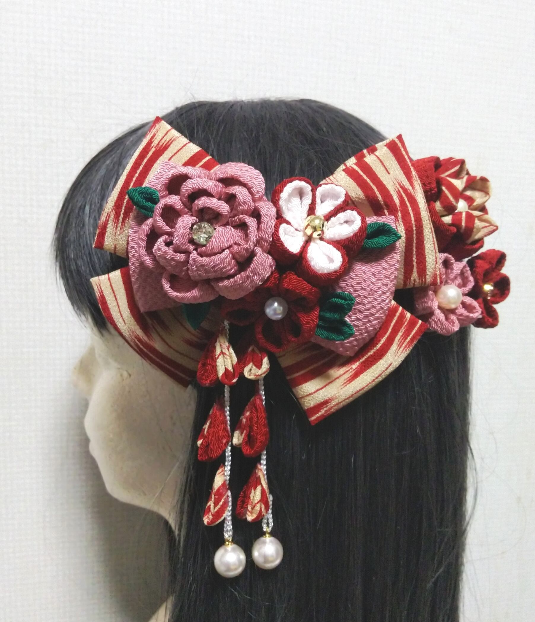 髪飾り 髪飾りえんじ リボンえんじ 成人式 卒業式 七五三 つまみ細工 浴衣