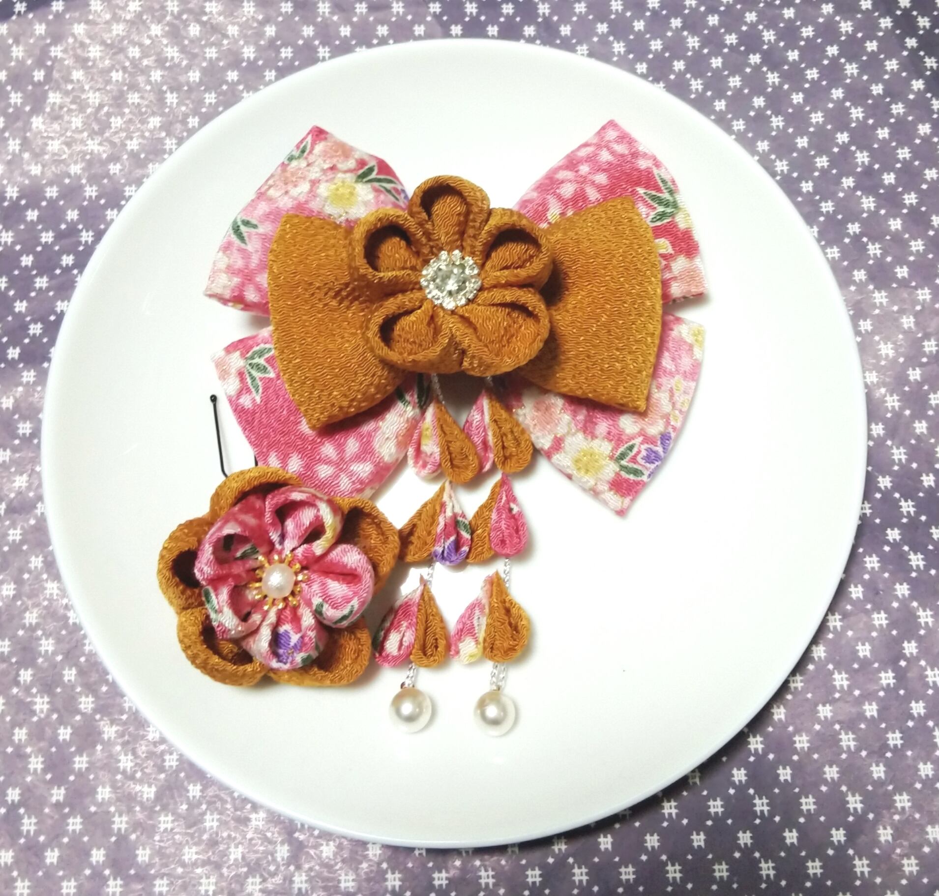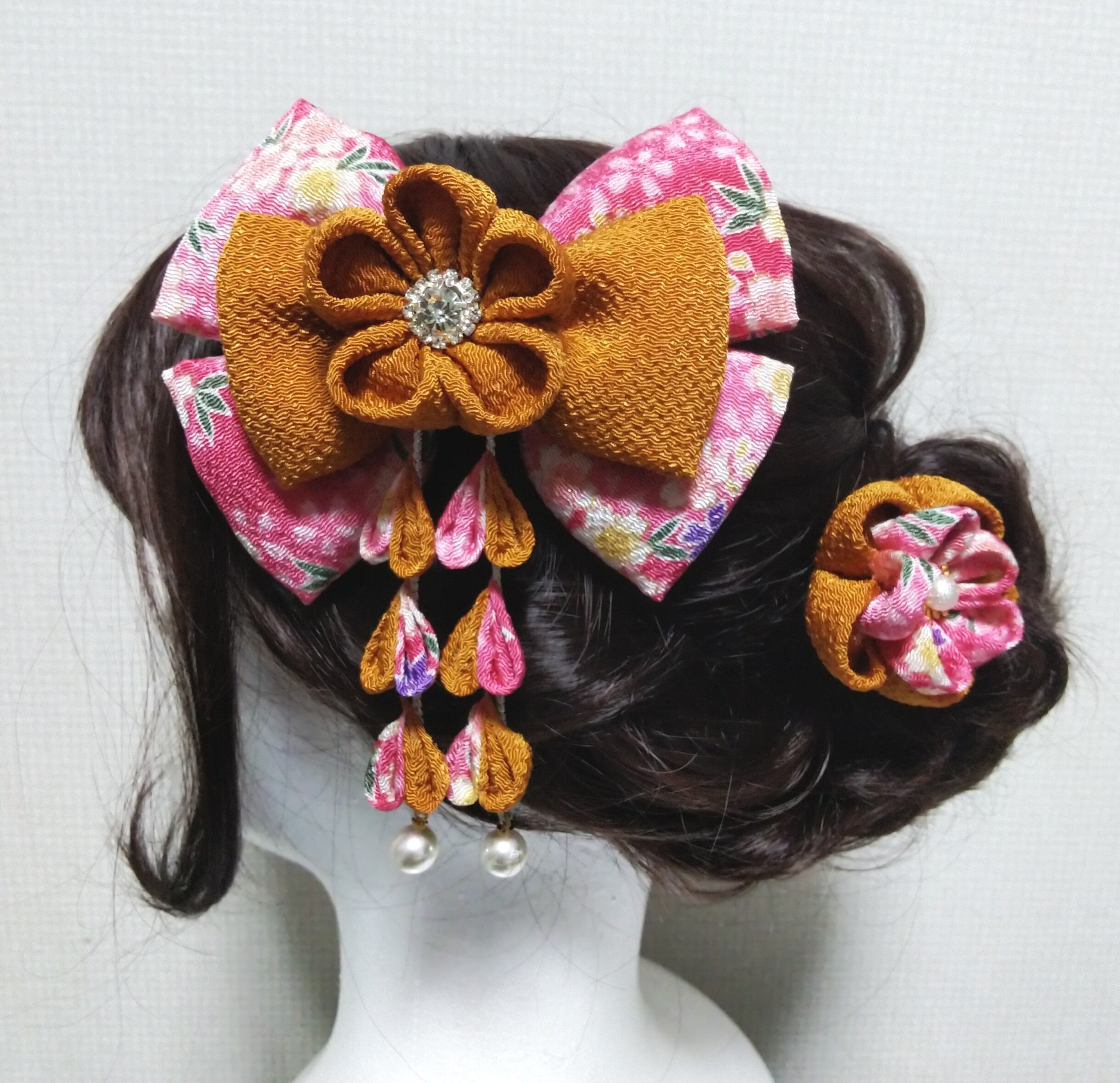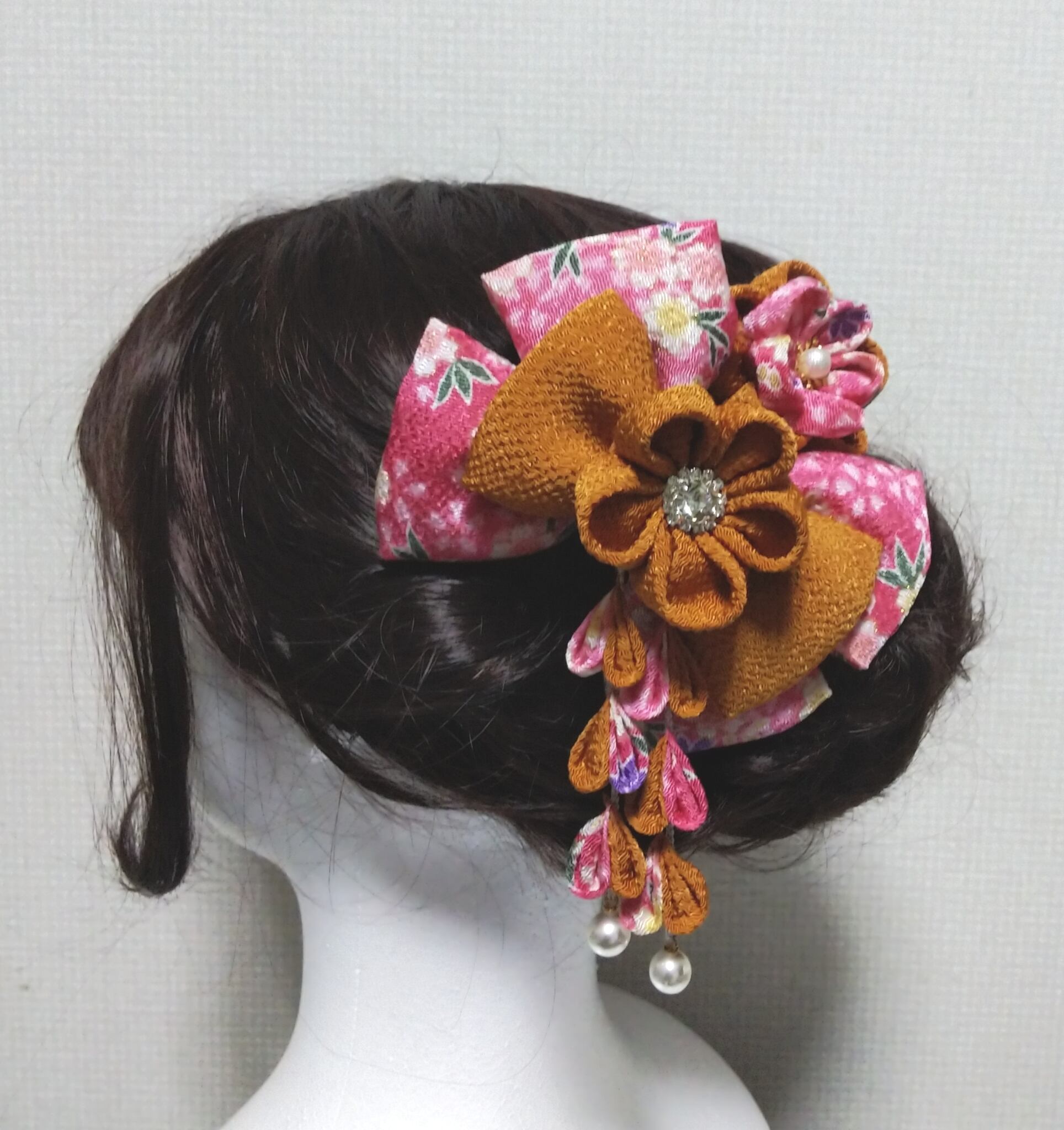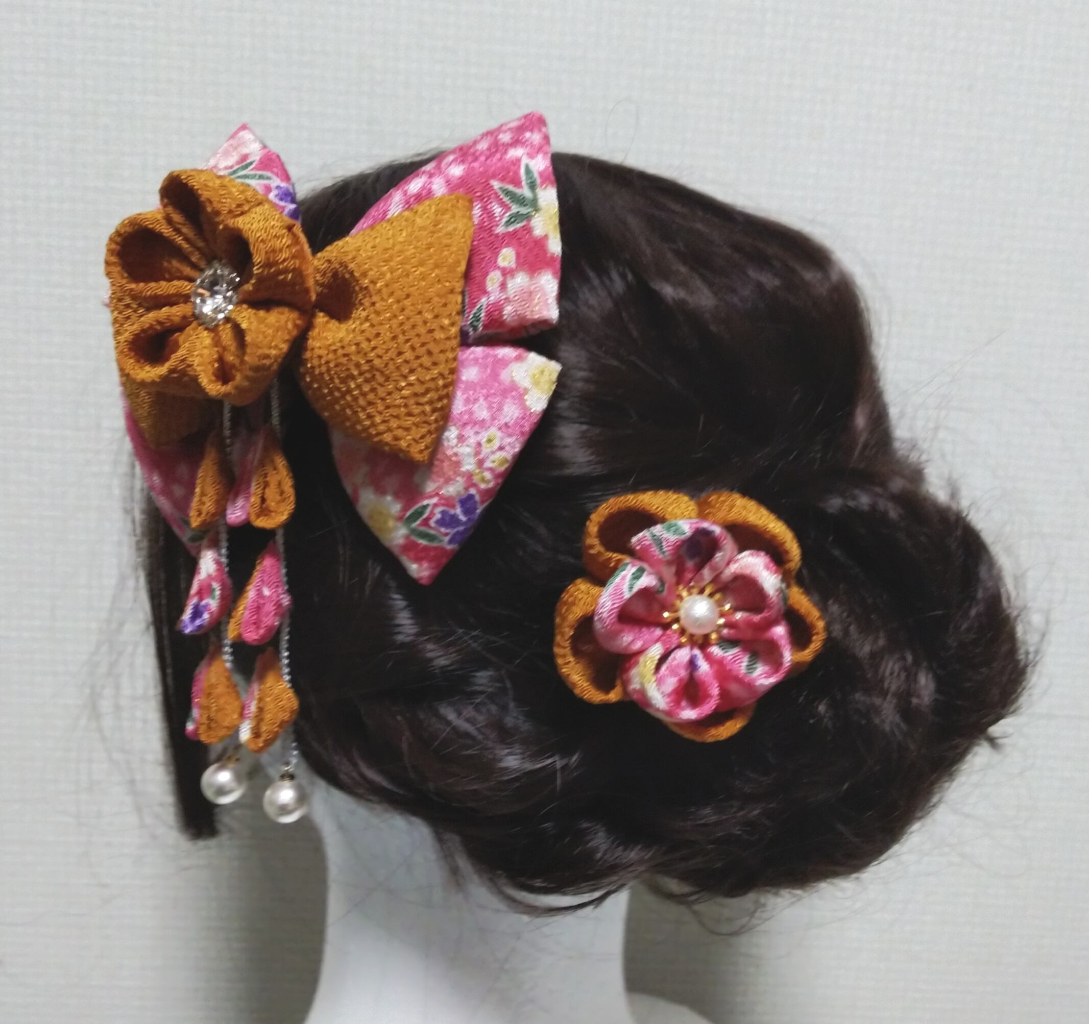 #成人式 #成人式髪飾り #卒業式髪飾り #七五三髪飾り #袴髪飾り #浴衣 #えんじ色 #オレンジ