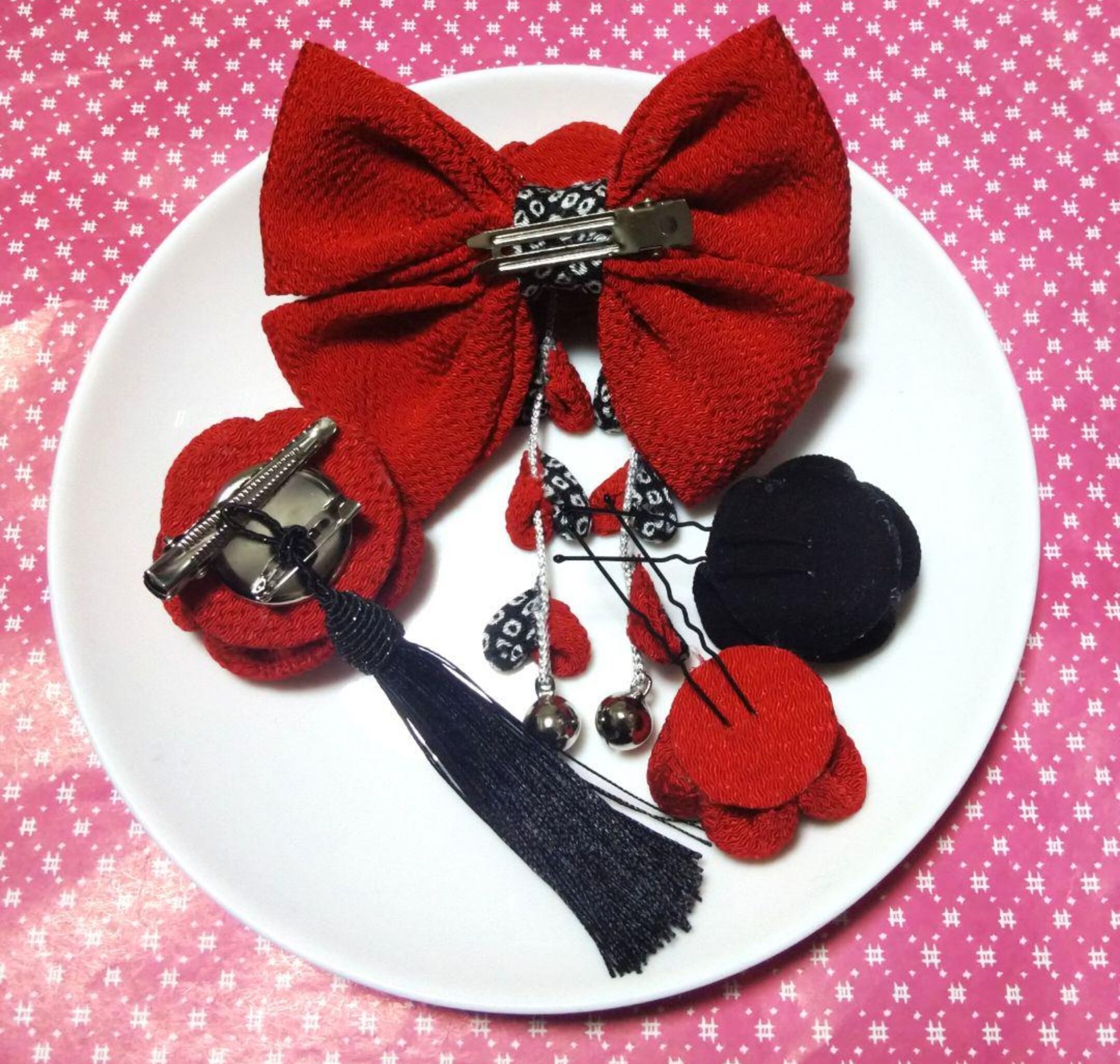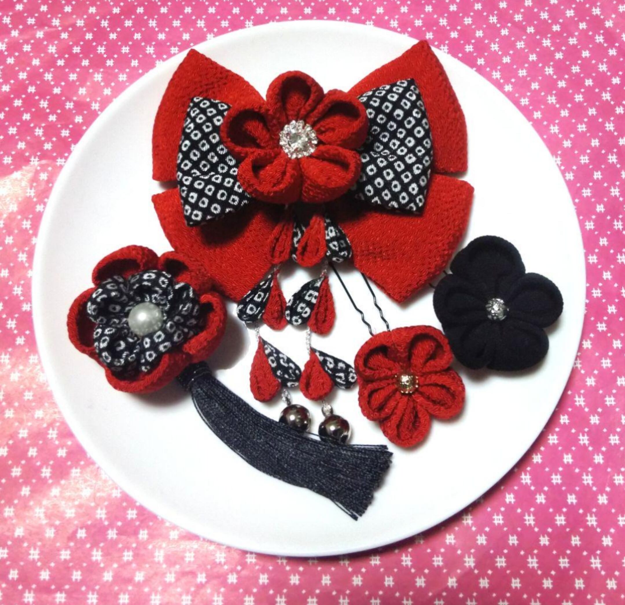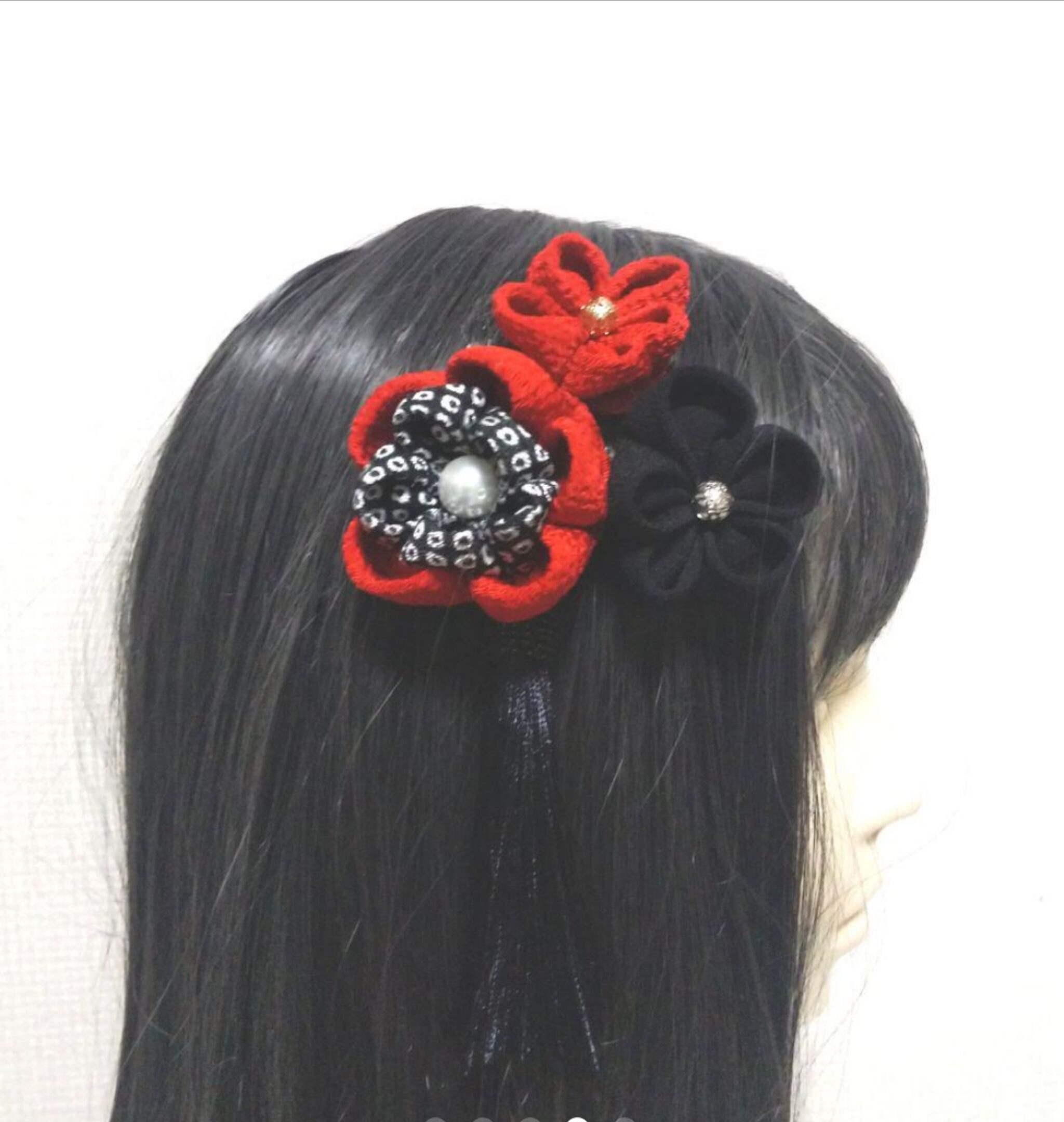 髪飾り 髪飾り赤 髪飾り黒 成人式髪飾り 卒業式髪飾り 七五三髪飾り つまみ細工髪飾り 袴髪飾り