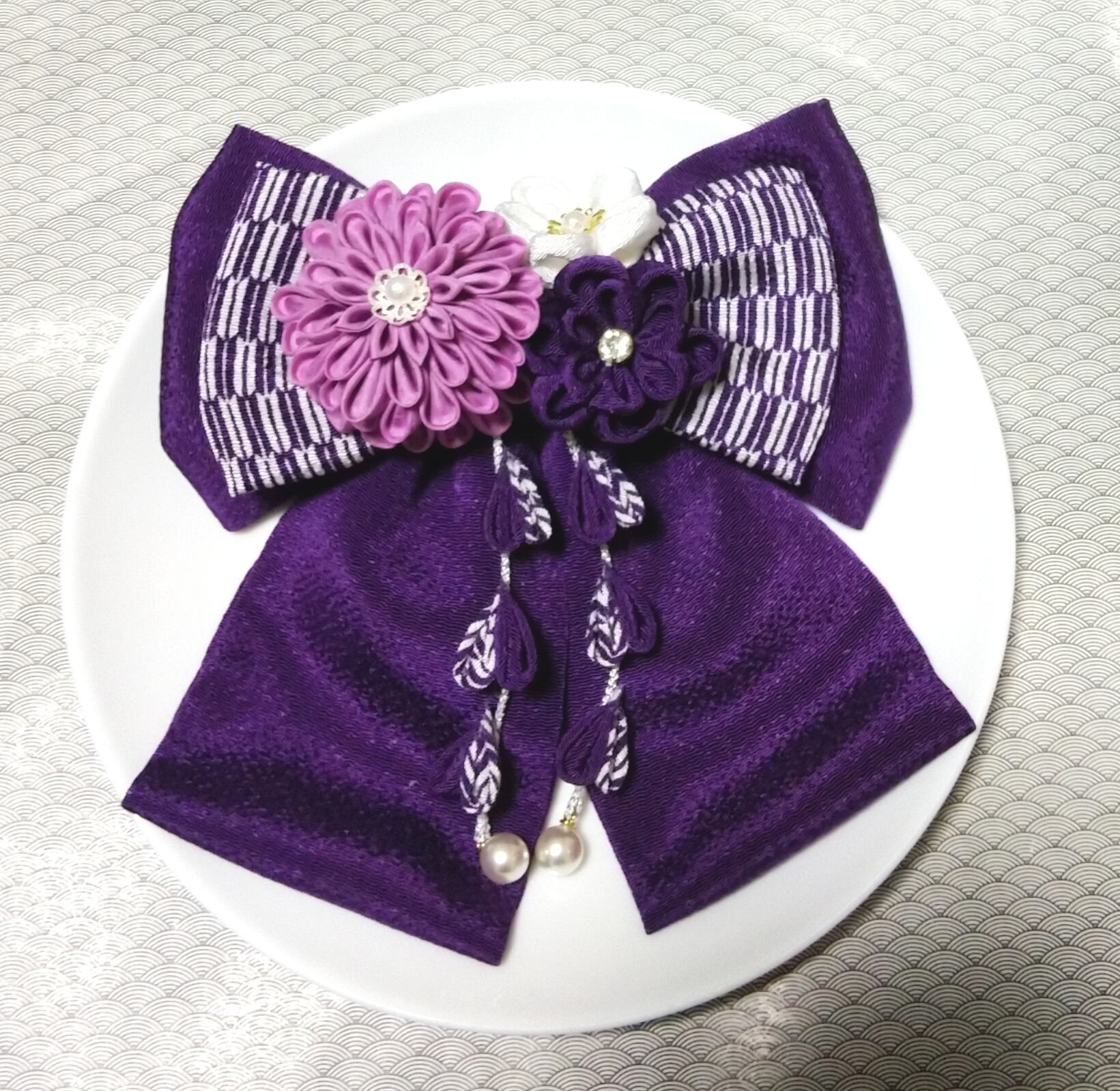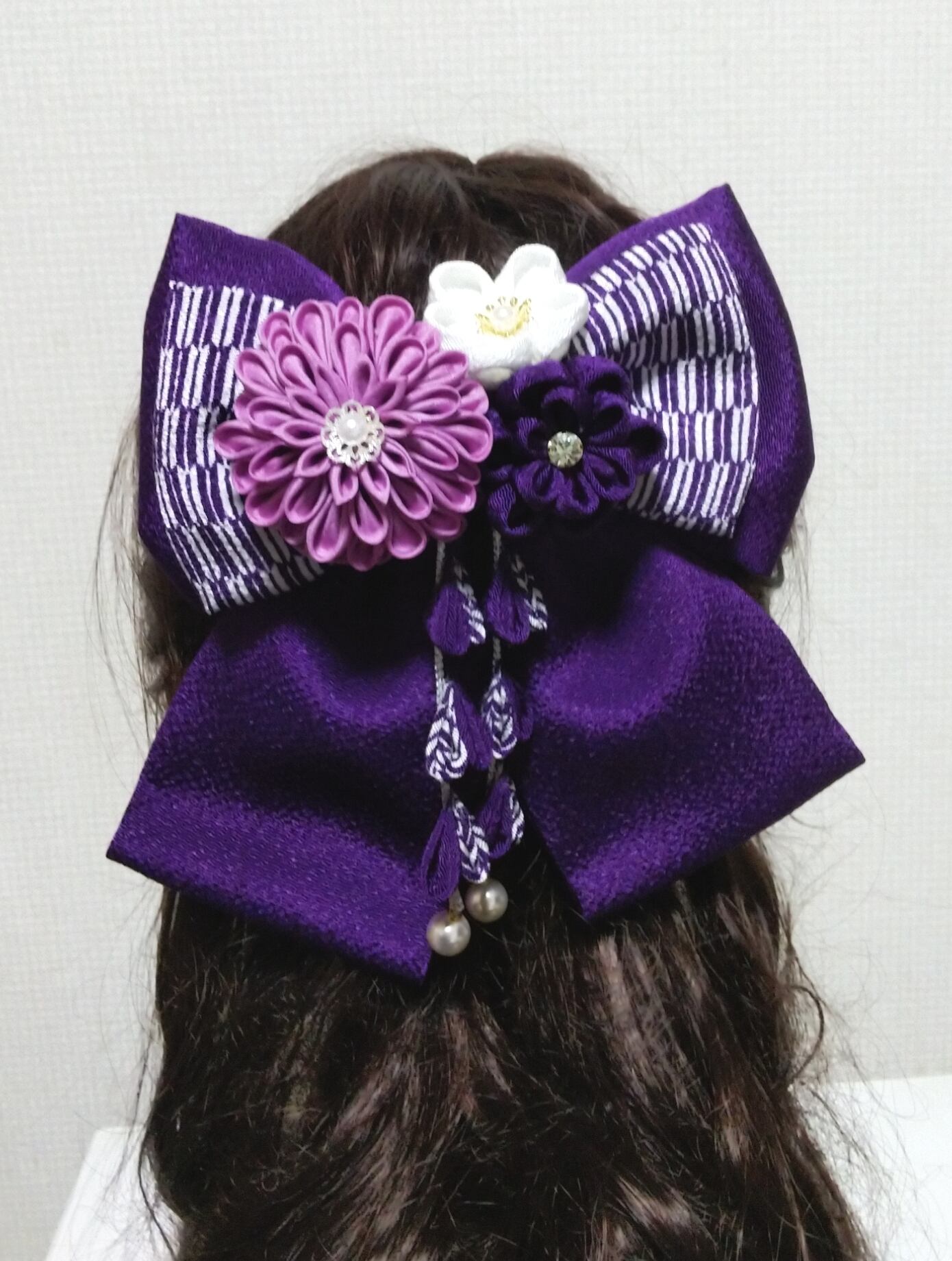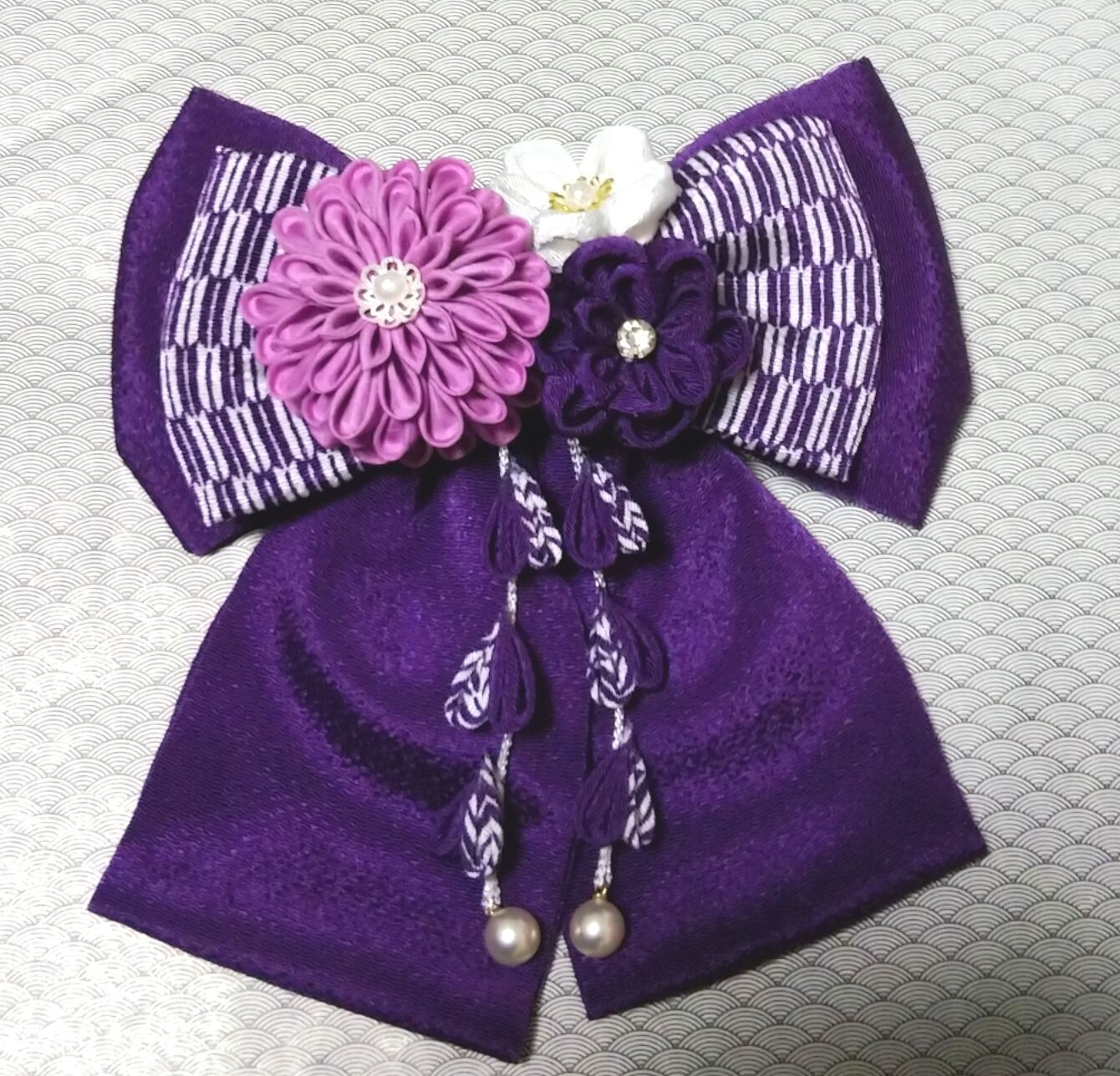 髪飾り紫 リボン紫 卒業式髪飾り 卒園式髪飾り つまみ細工