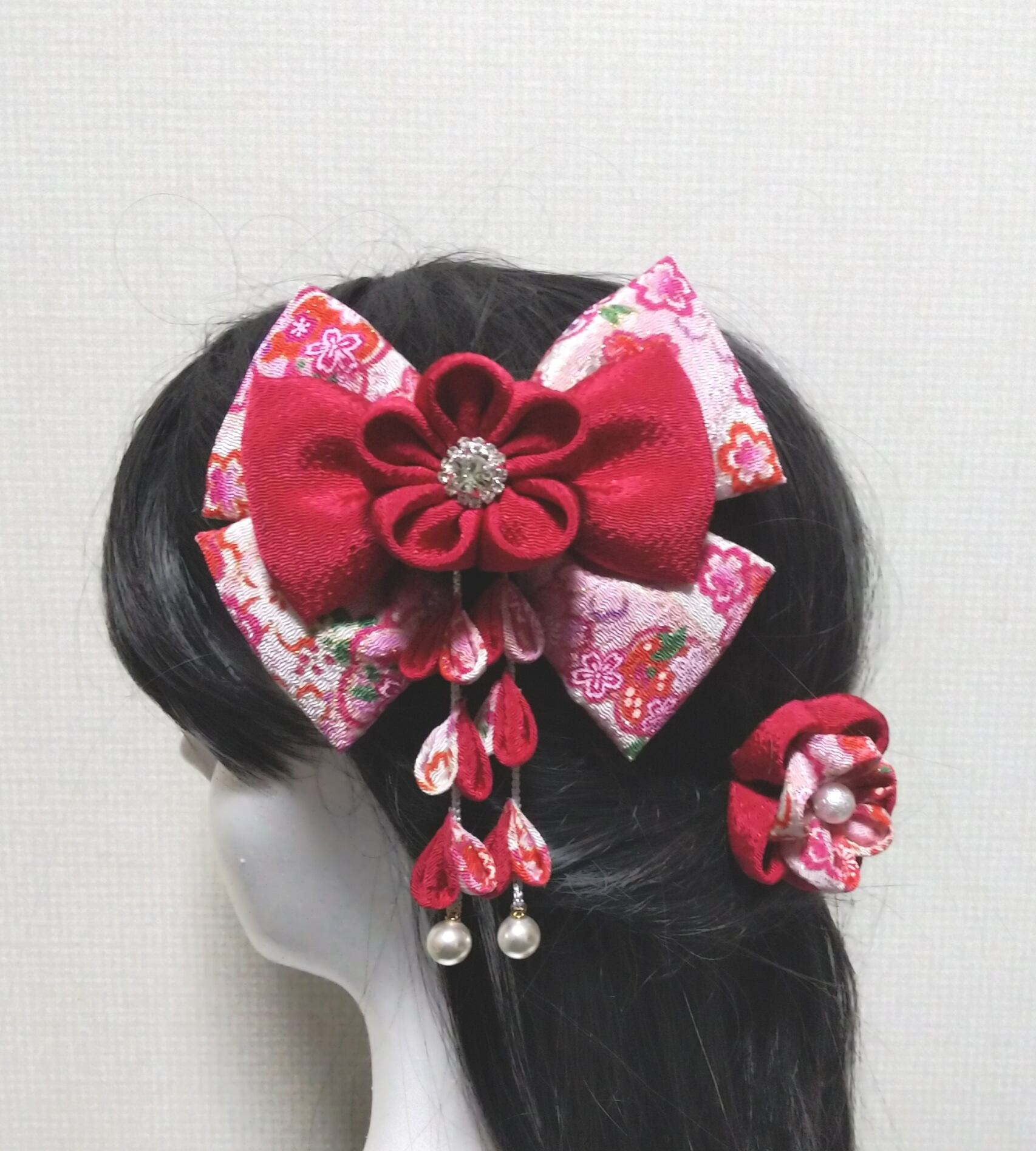 髪飾り 髪飾りピンク リボンピンク 成人式 卒業式 七五三 つまみ細工
