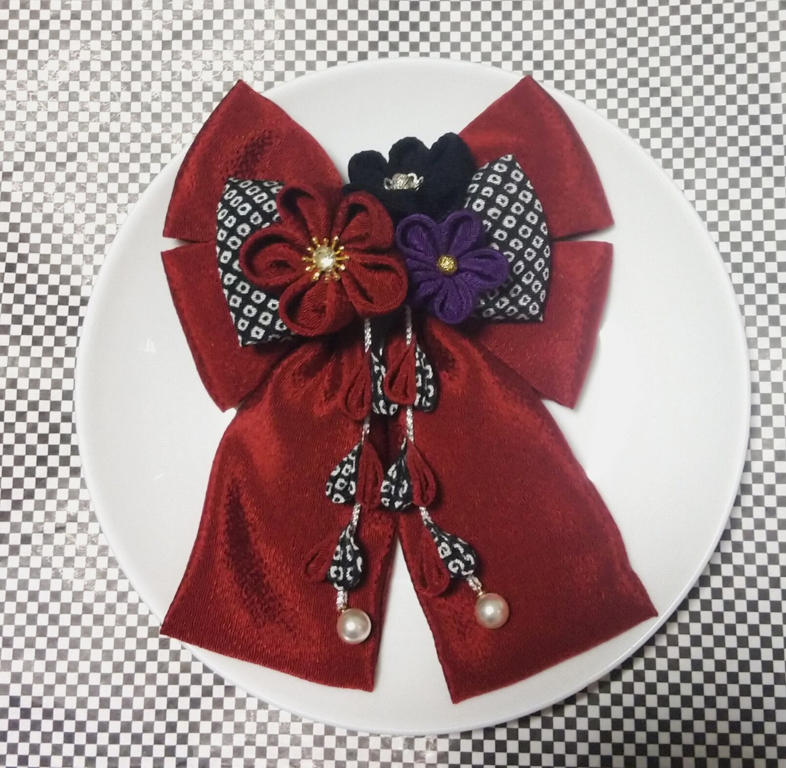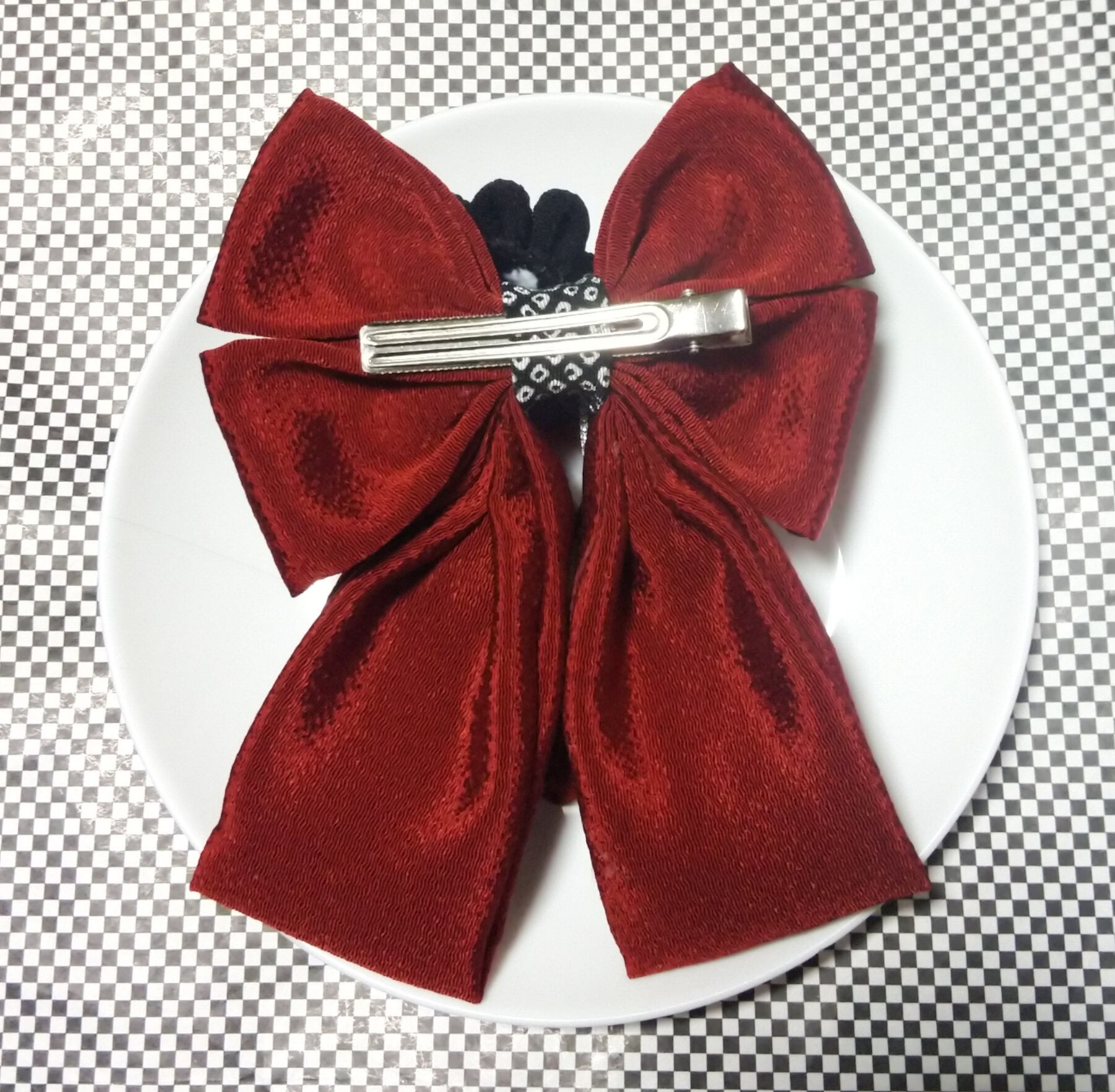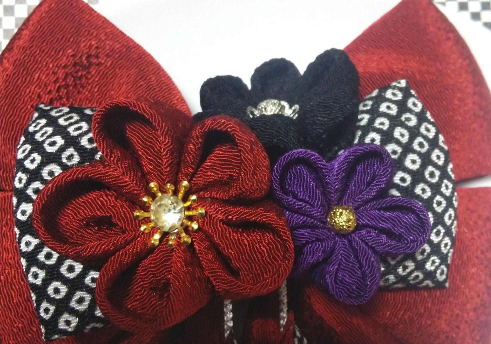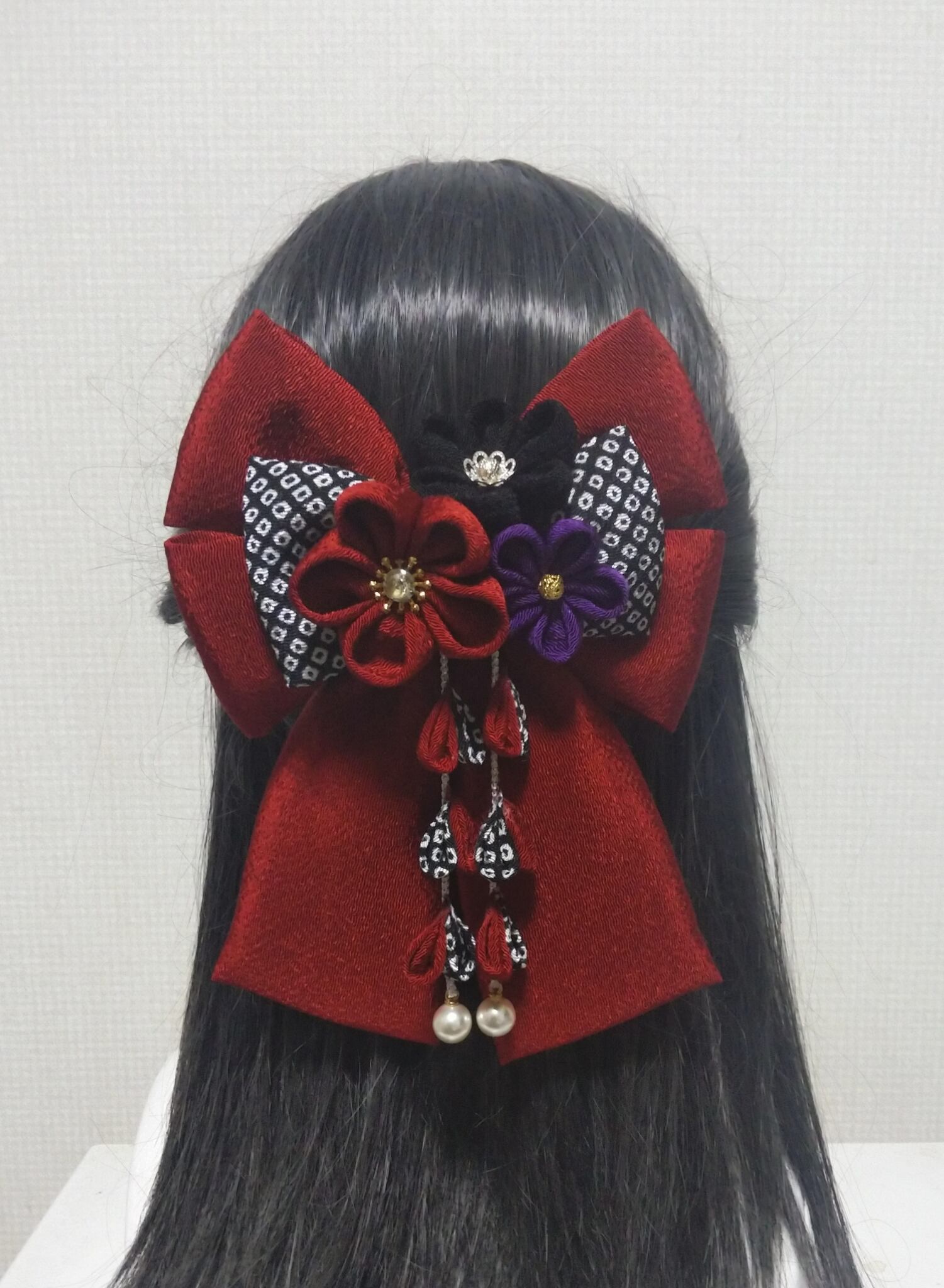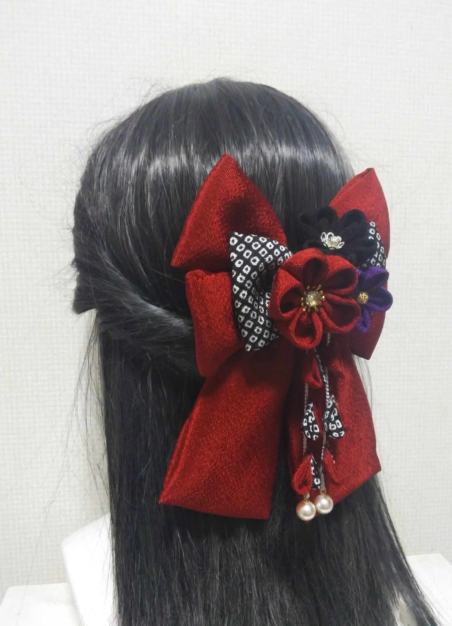 髪飾り 髪飾りえんじ リボンえんじ 髪飾り黒 リボン 卒業式 卒園式 つまみ細工 はいからさんリボン