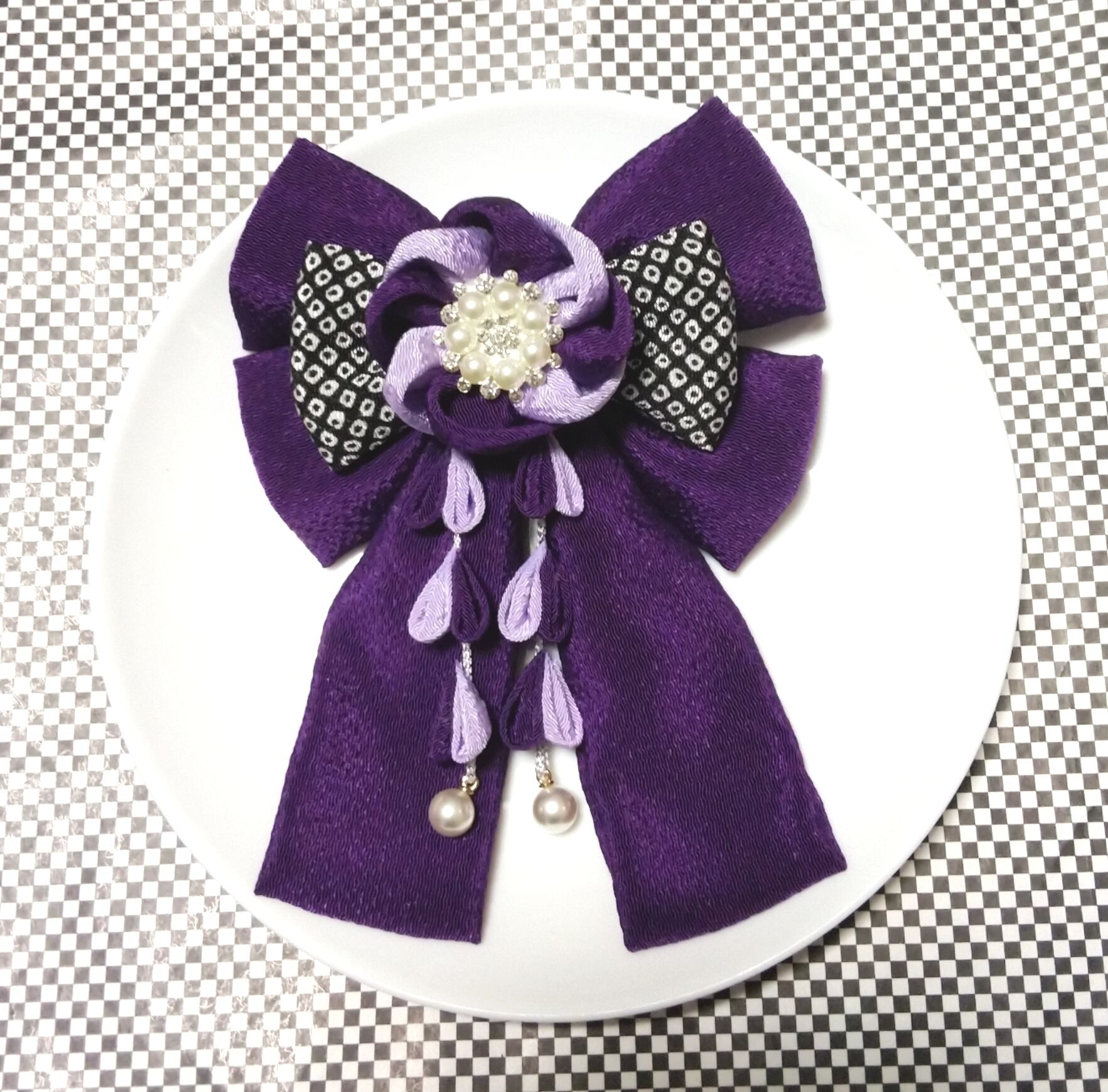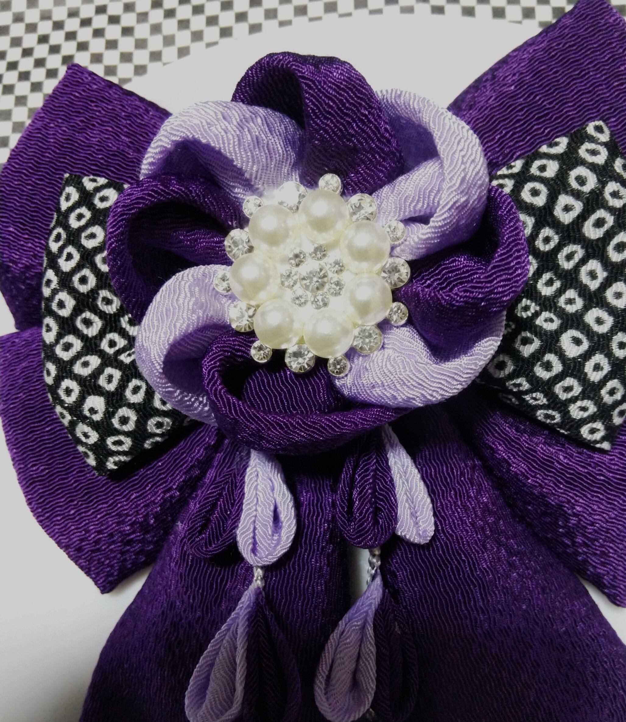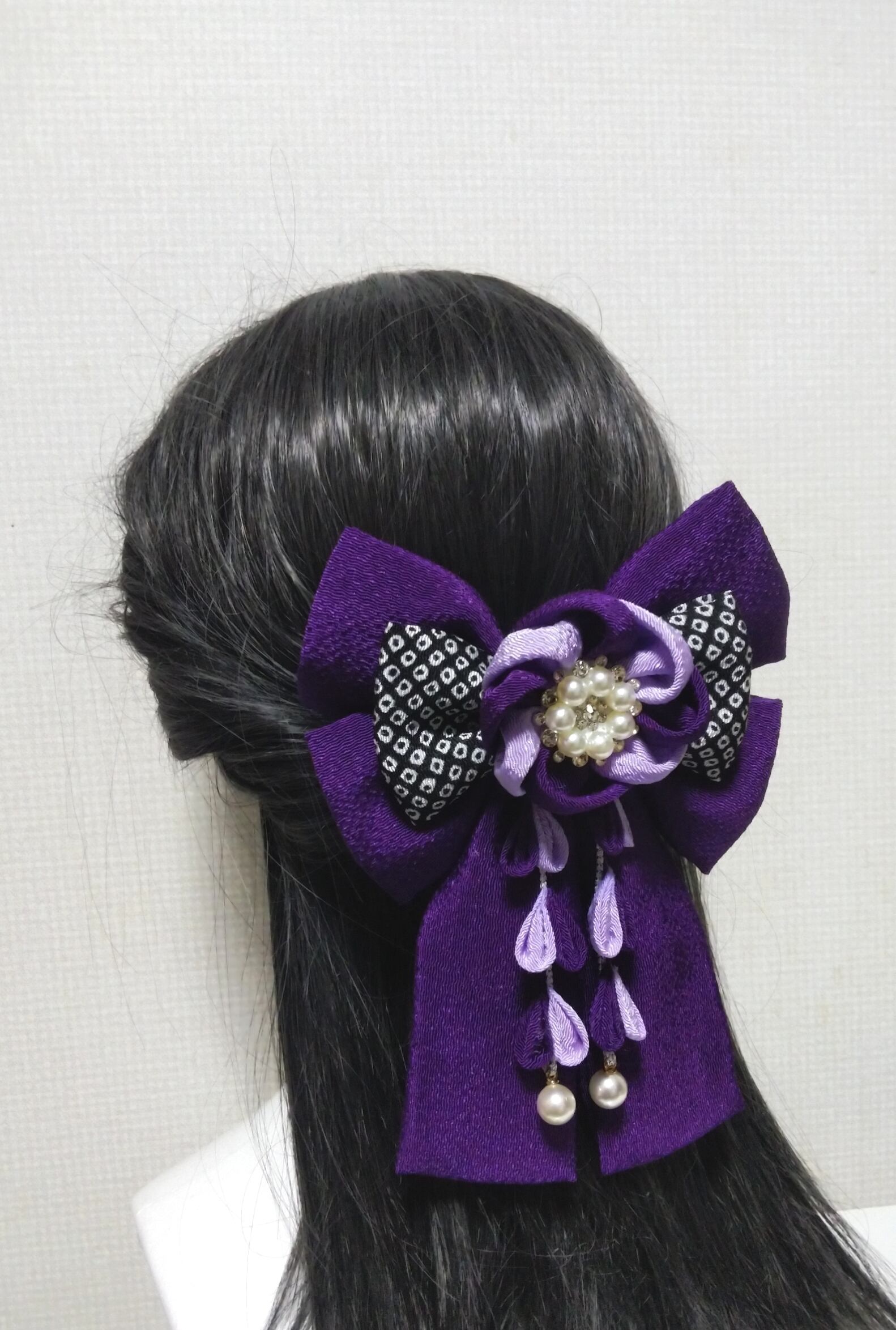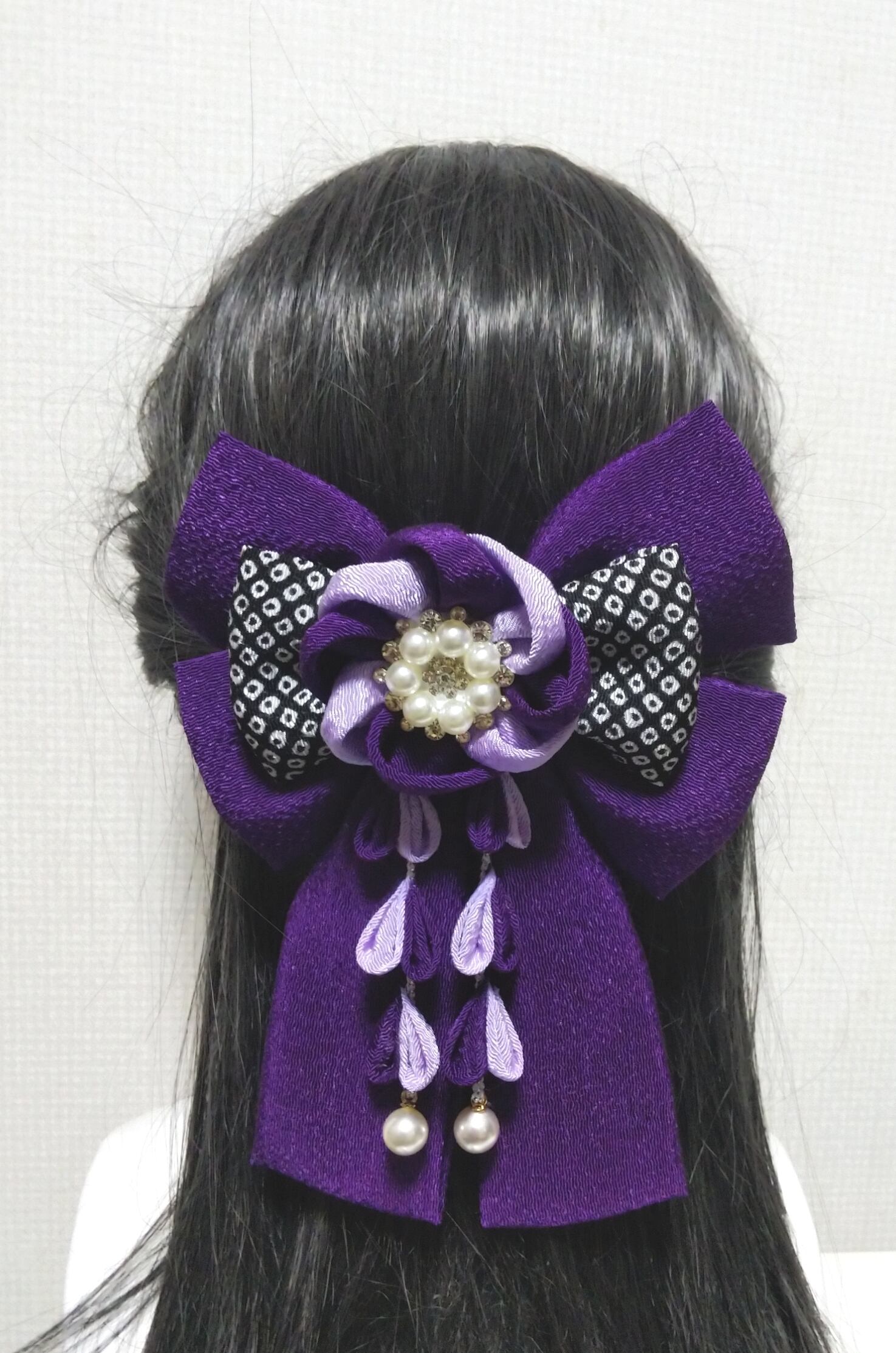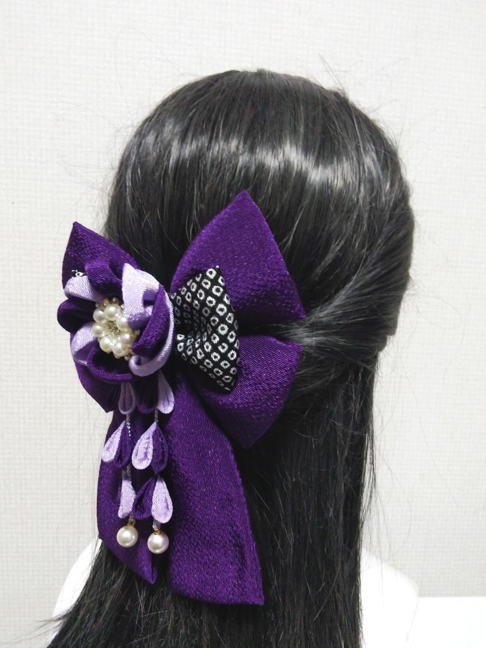 髪飾り 髪飾り紫 リボン紫 成人式髪飾り 卒園式髪飾り 卒業式髪飾り 七五三 つまみ細工