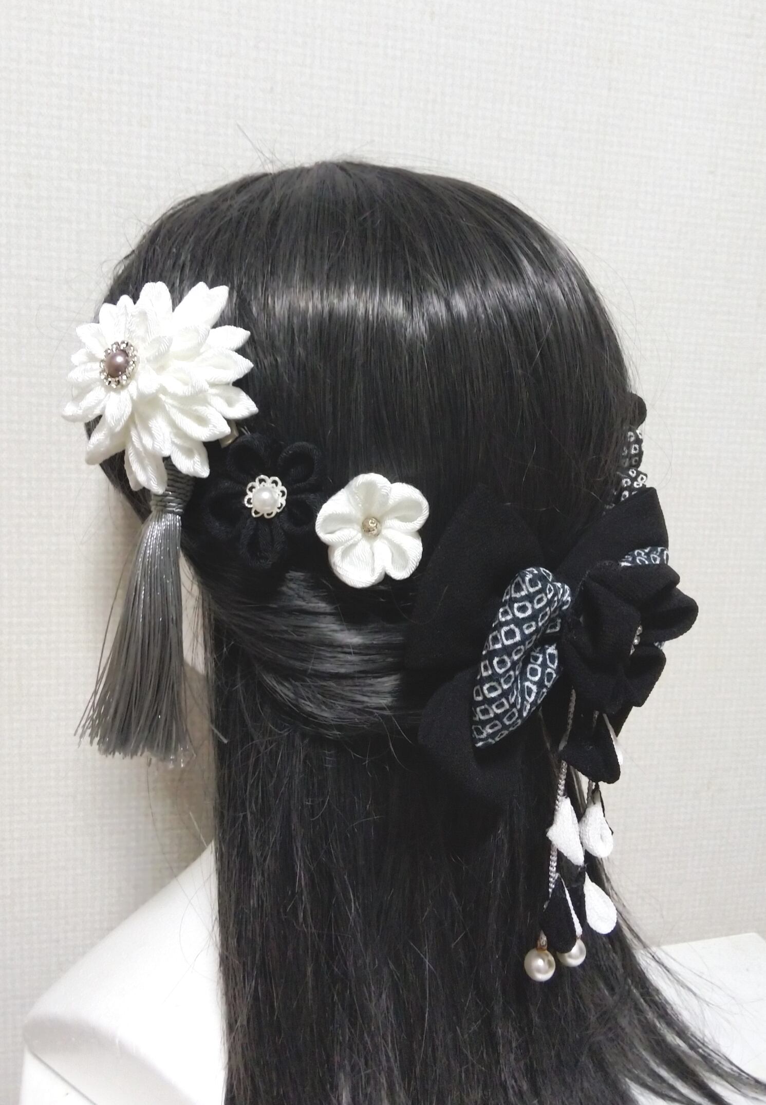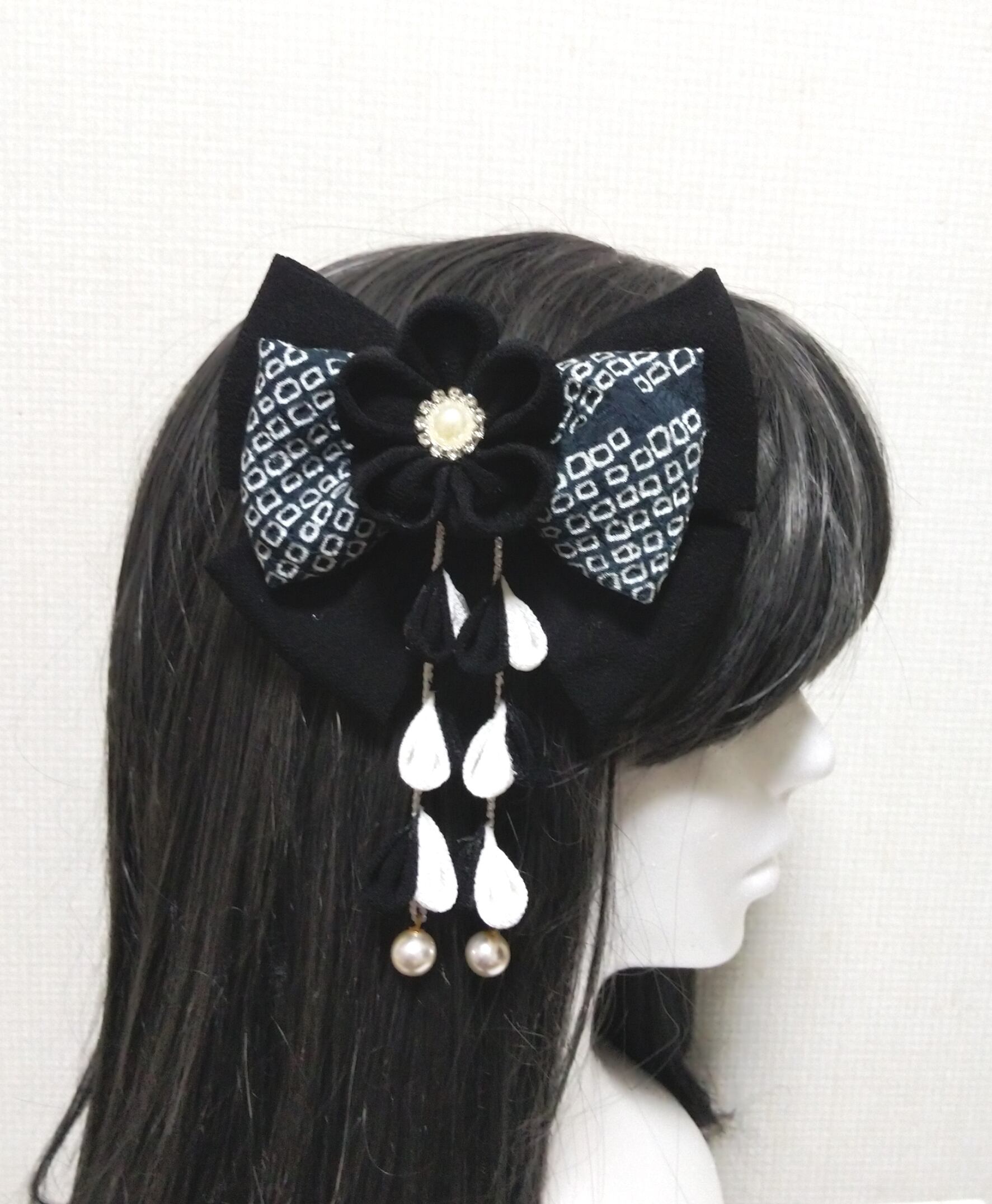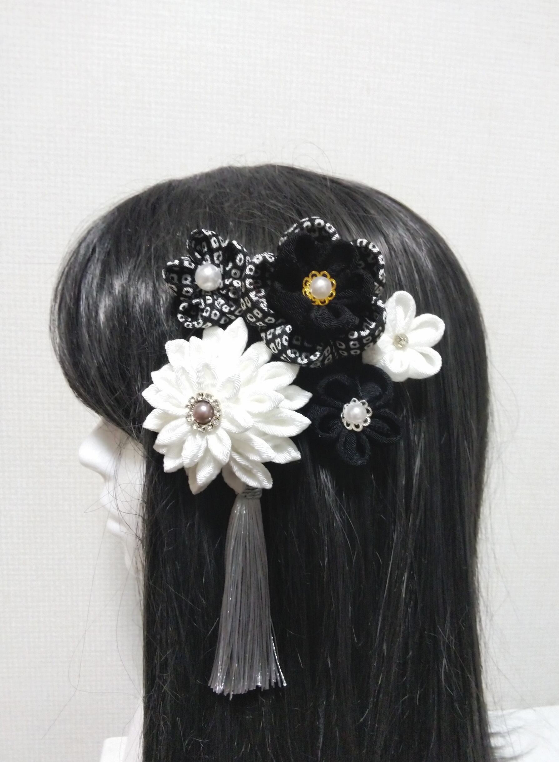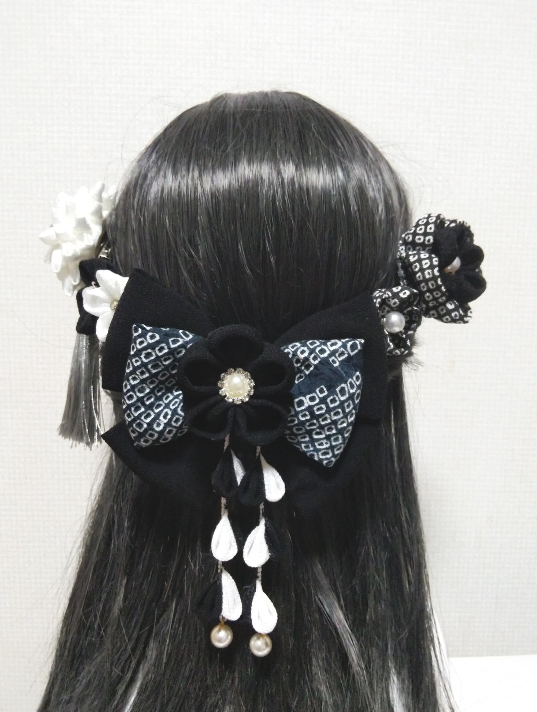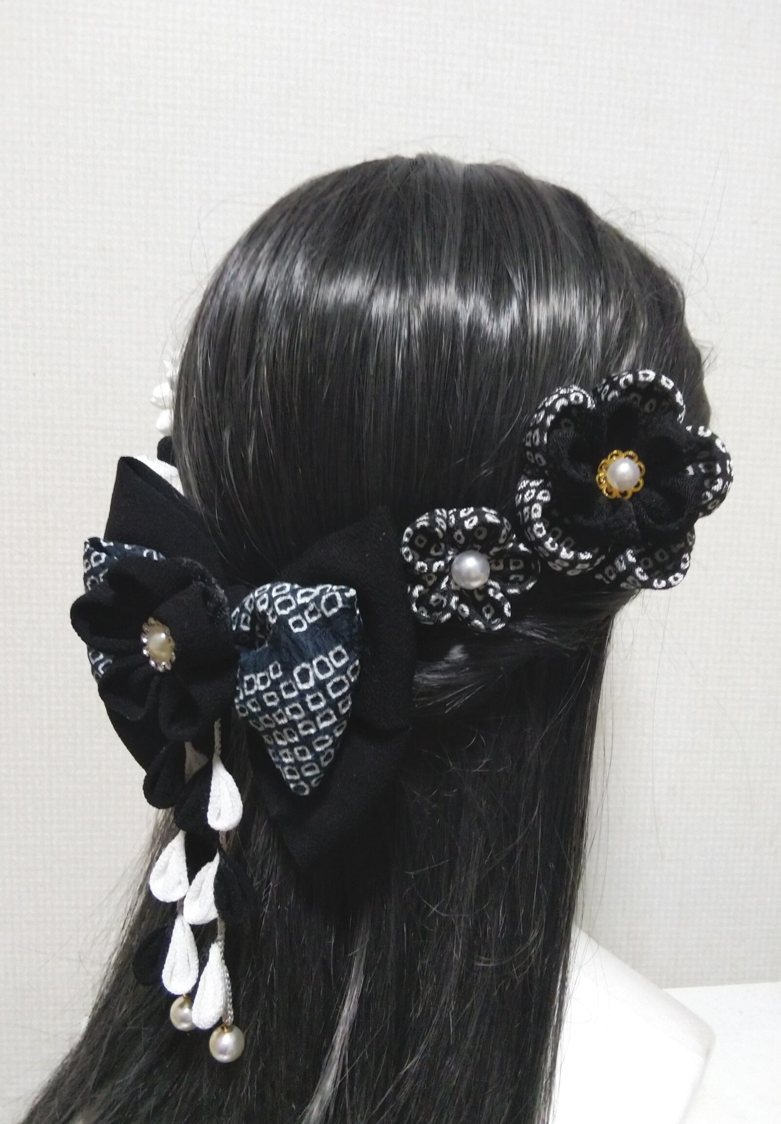 髪飾り黒 リボン黒 モノトーン 成人式髪飾り 卒業式髪飾り 七五三髪飾り つまみ細工髪飾り