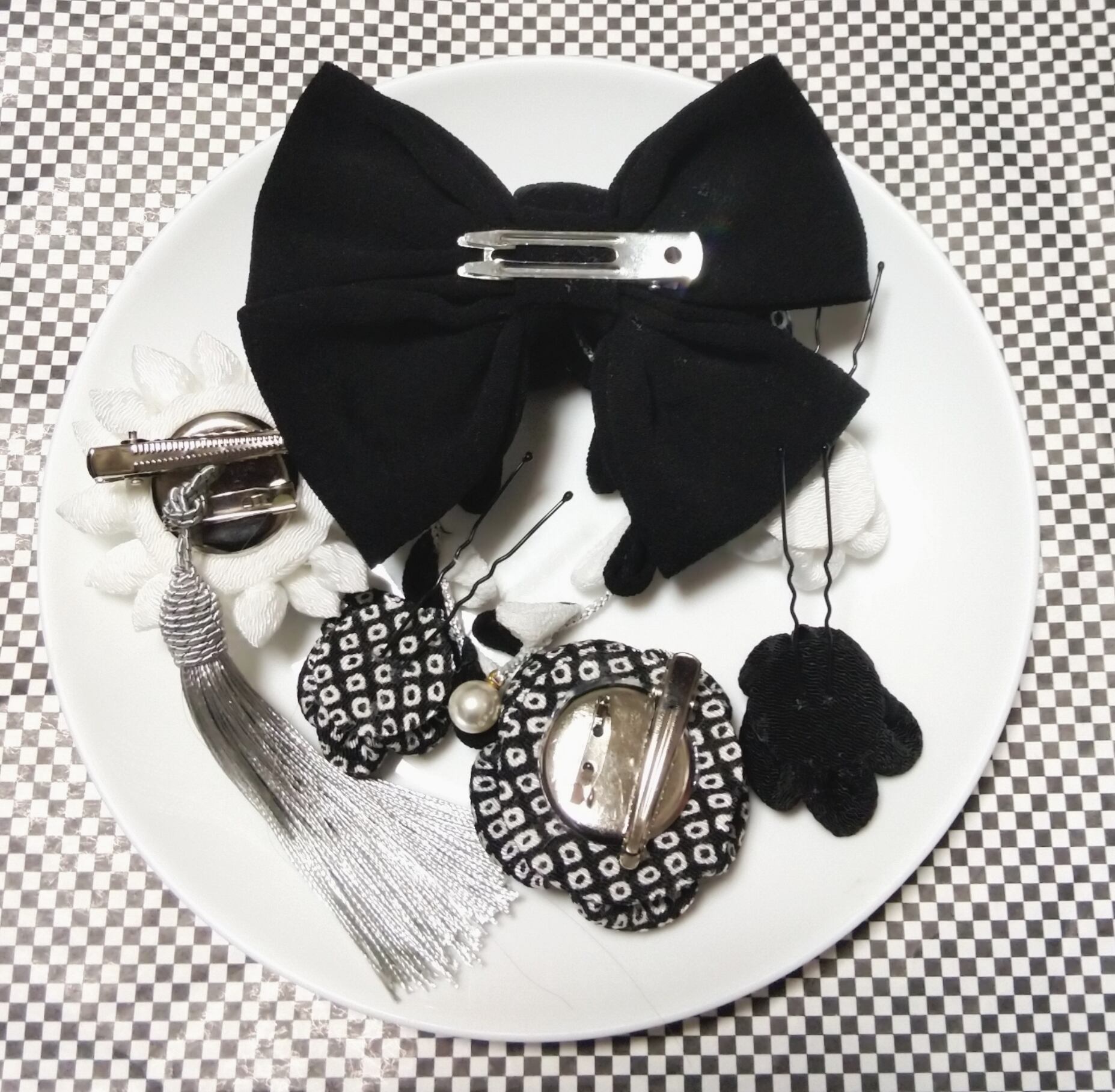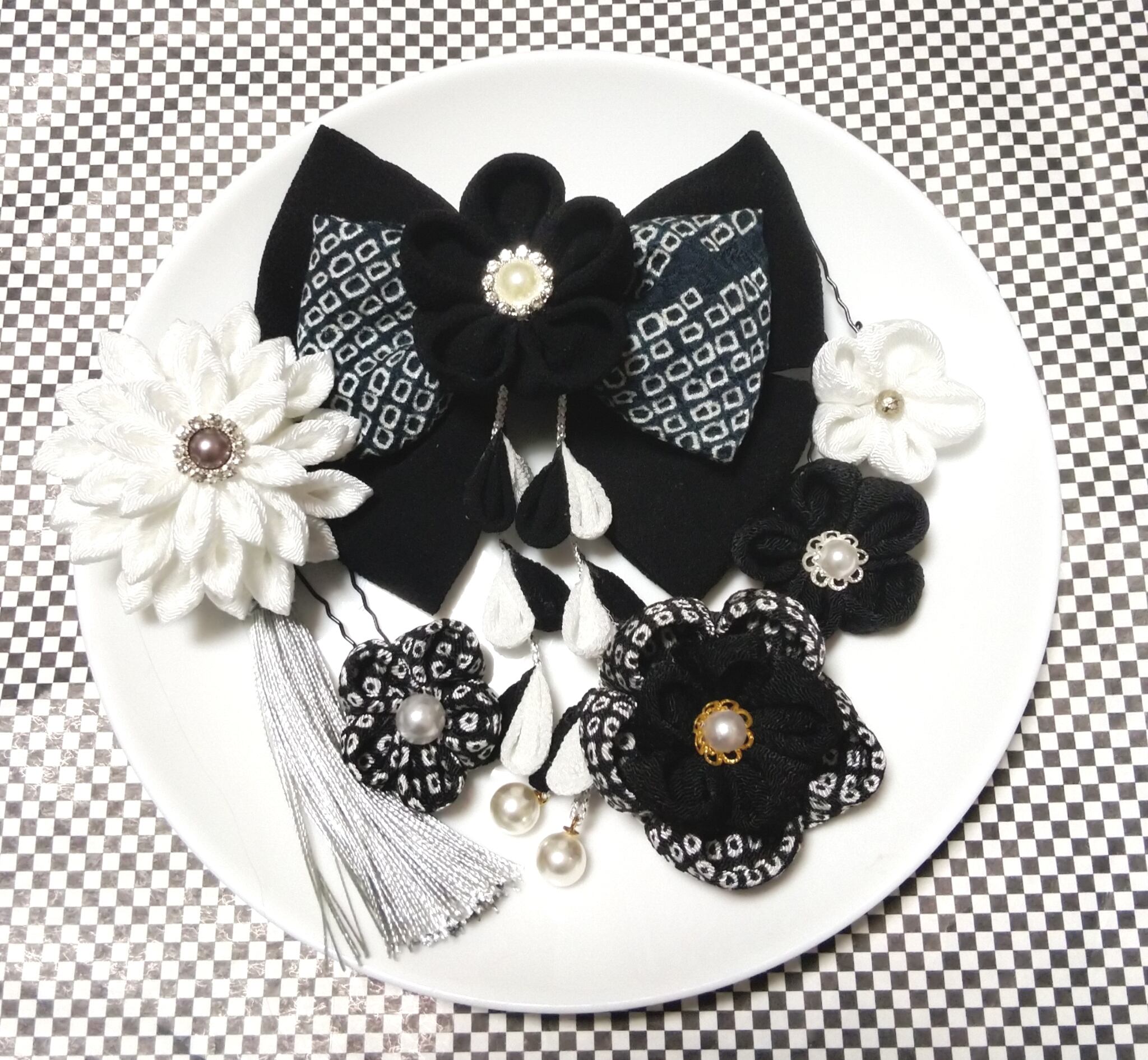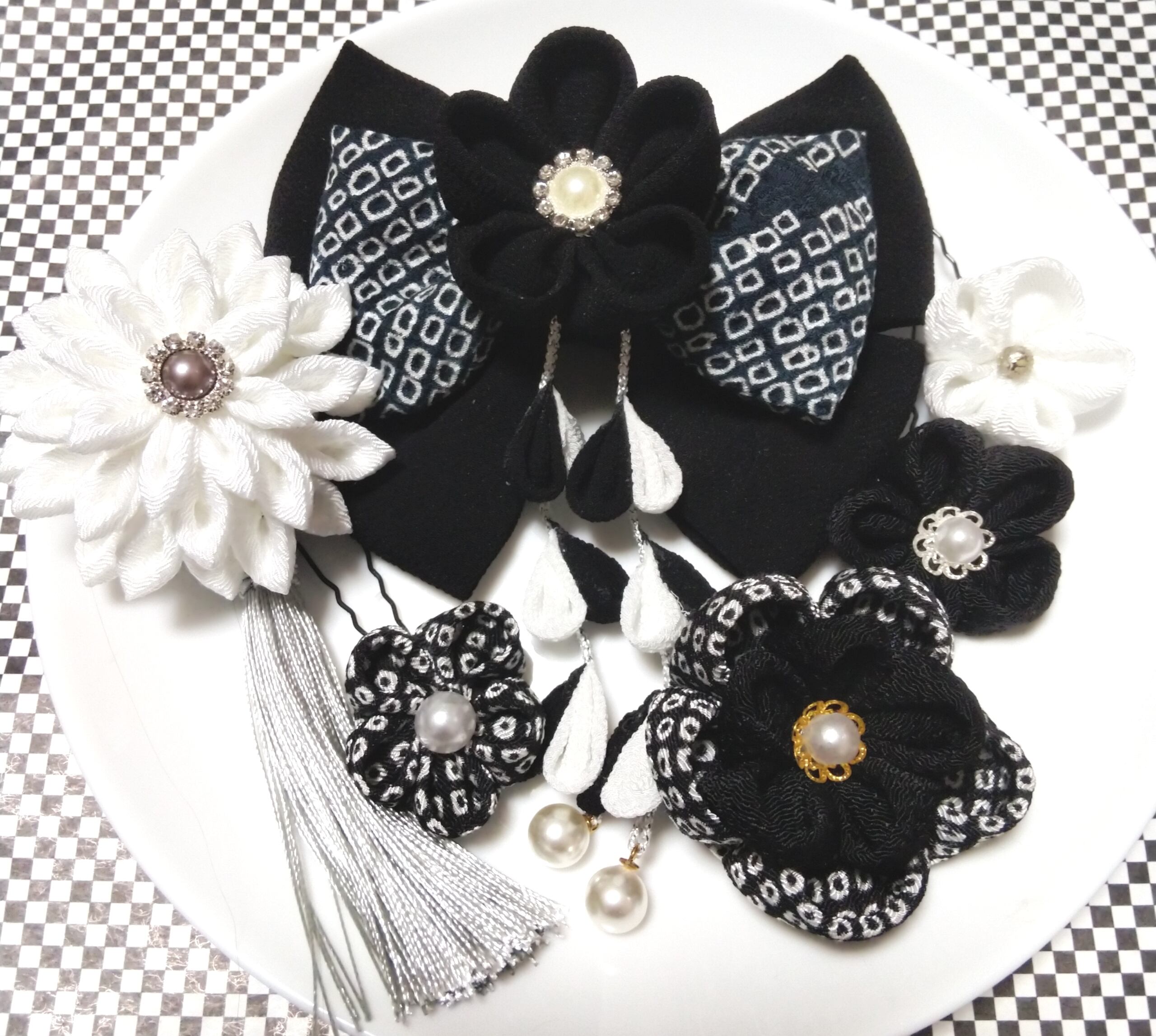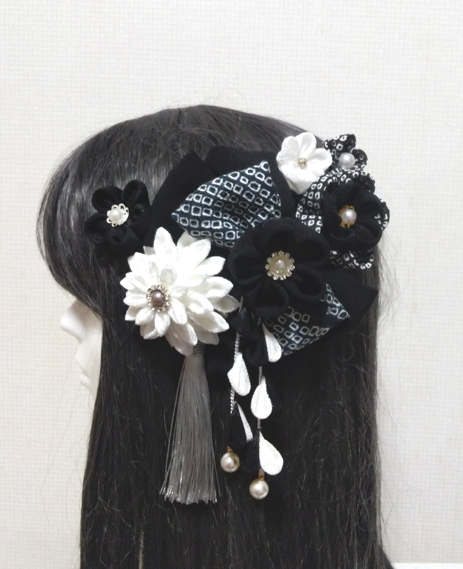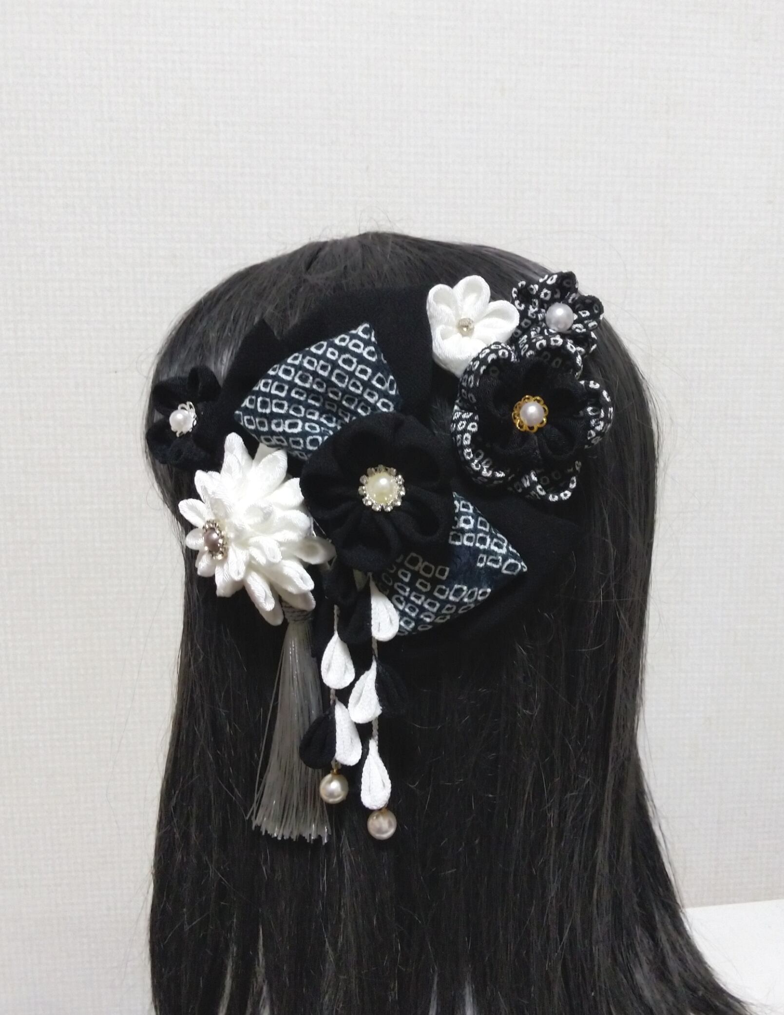 髪飾り黒 リボン黒 モノトーン 成人式髪飾り 卒業式髪飾り 七五三髪飾り つまみ細工髪飾り