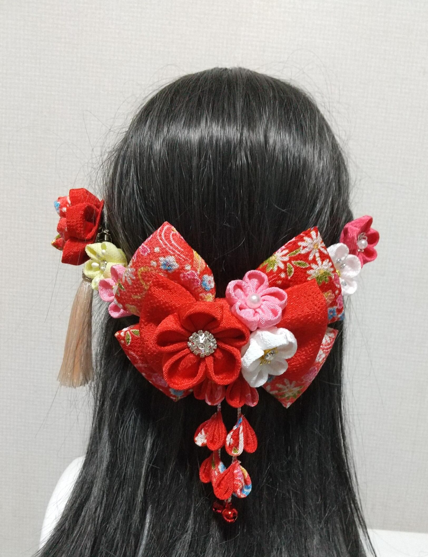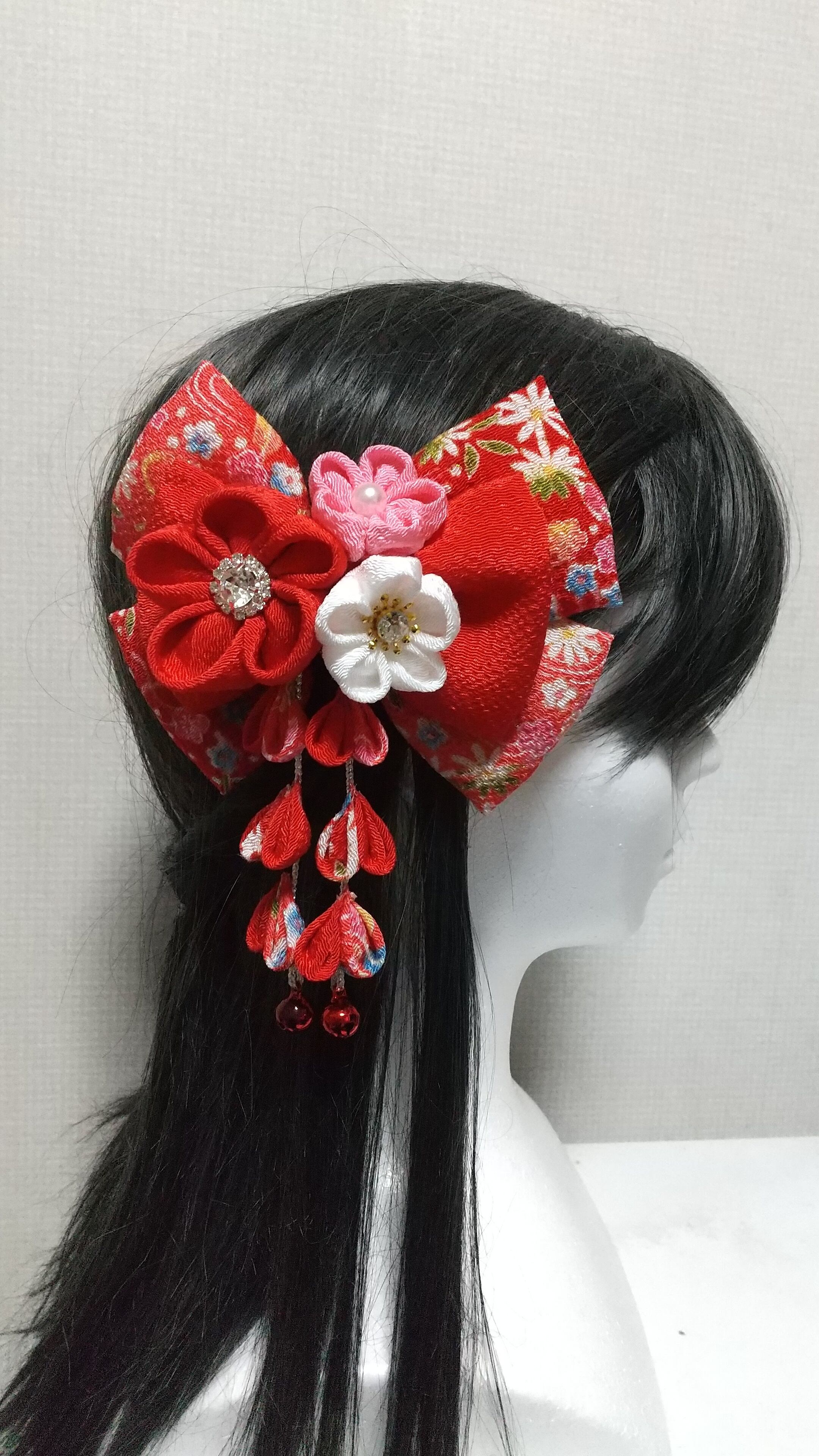 髪飾り 髪飾り赤 リボン赤 成人式髪飾り 卒業式髪飾り 七五三髪飾り 袴髪飾り つまみ細工髪飾り