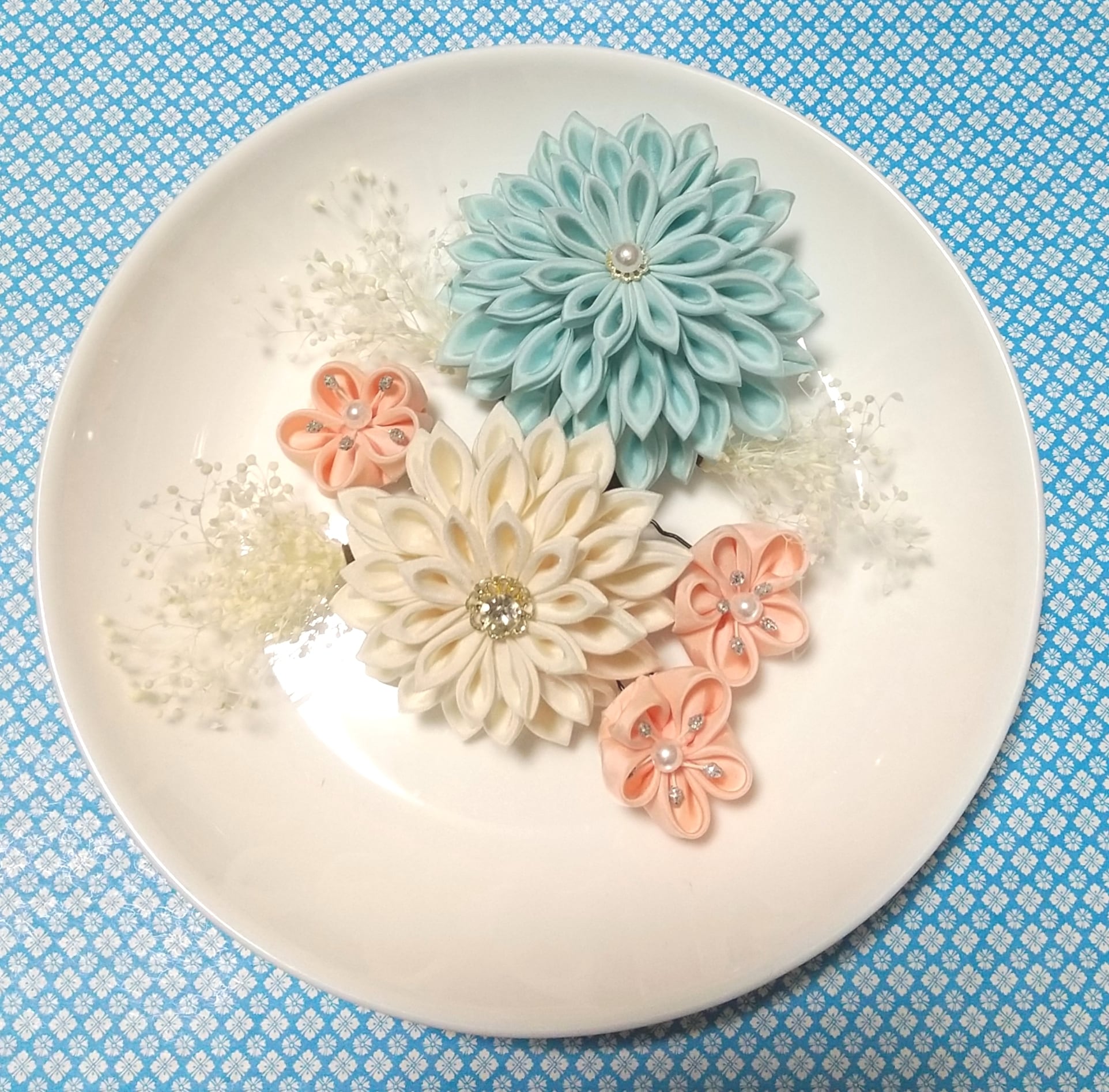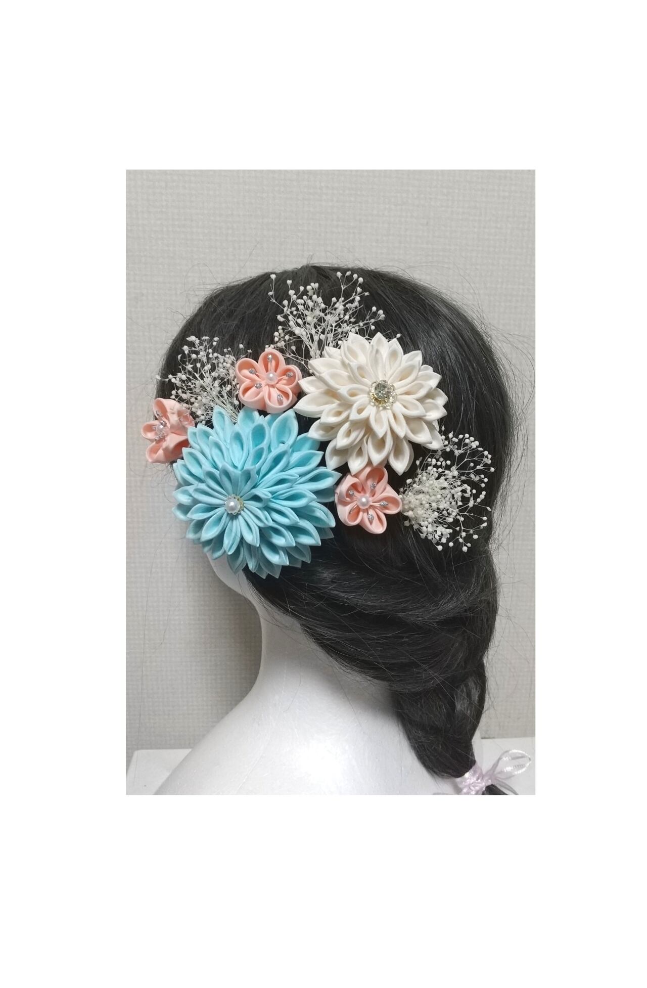 髪飾り 髪飾り水色 髪飾りアイボリー 成人式卒業式 七五三