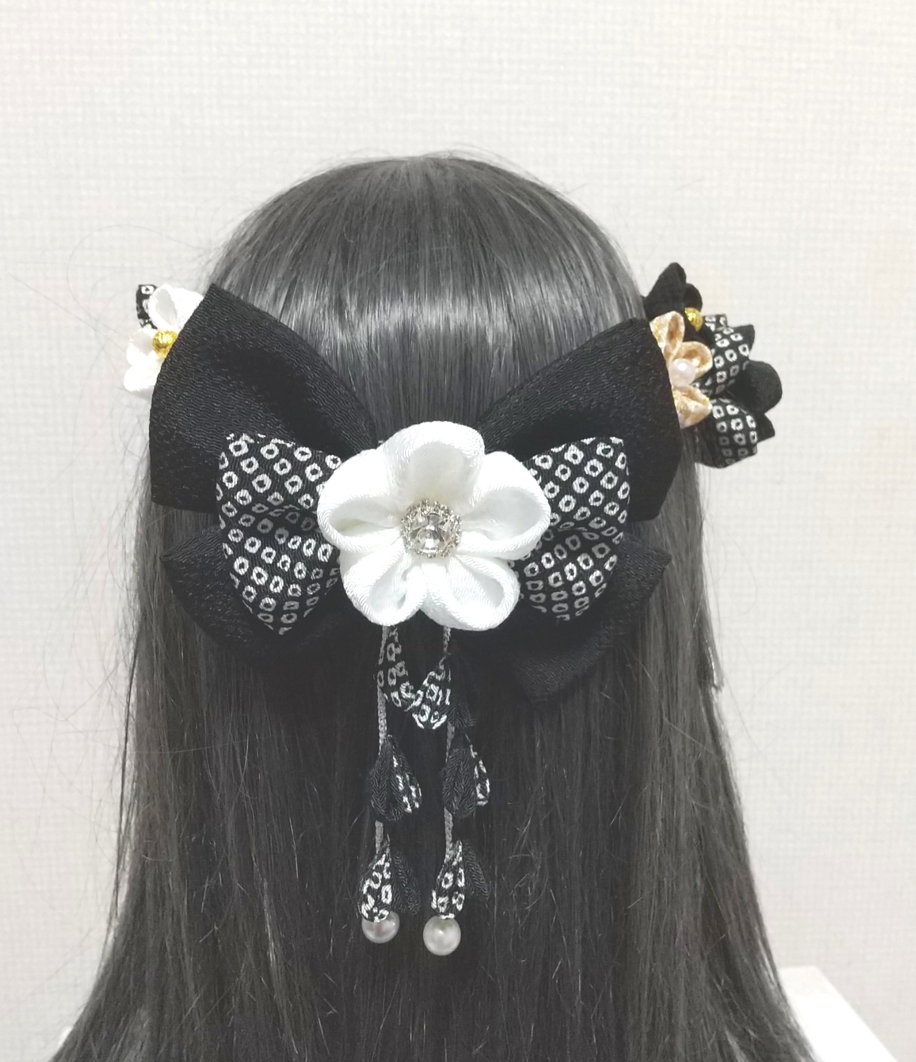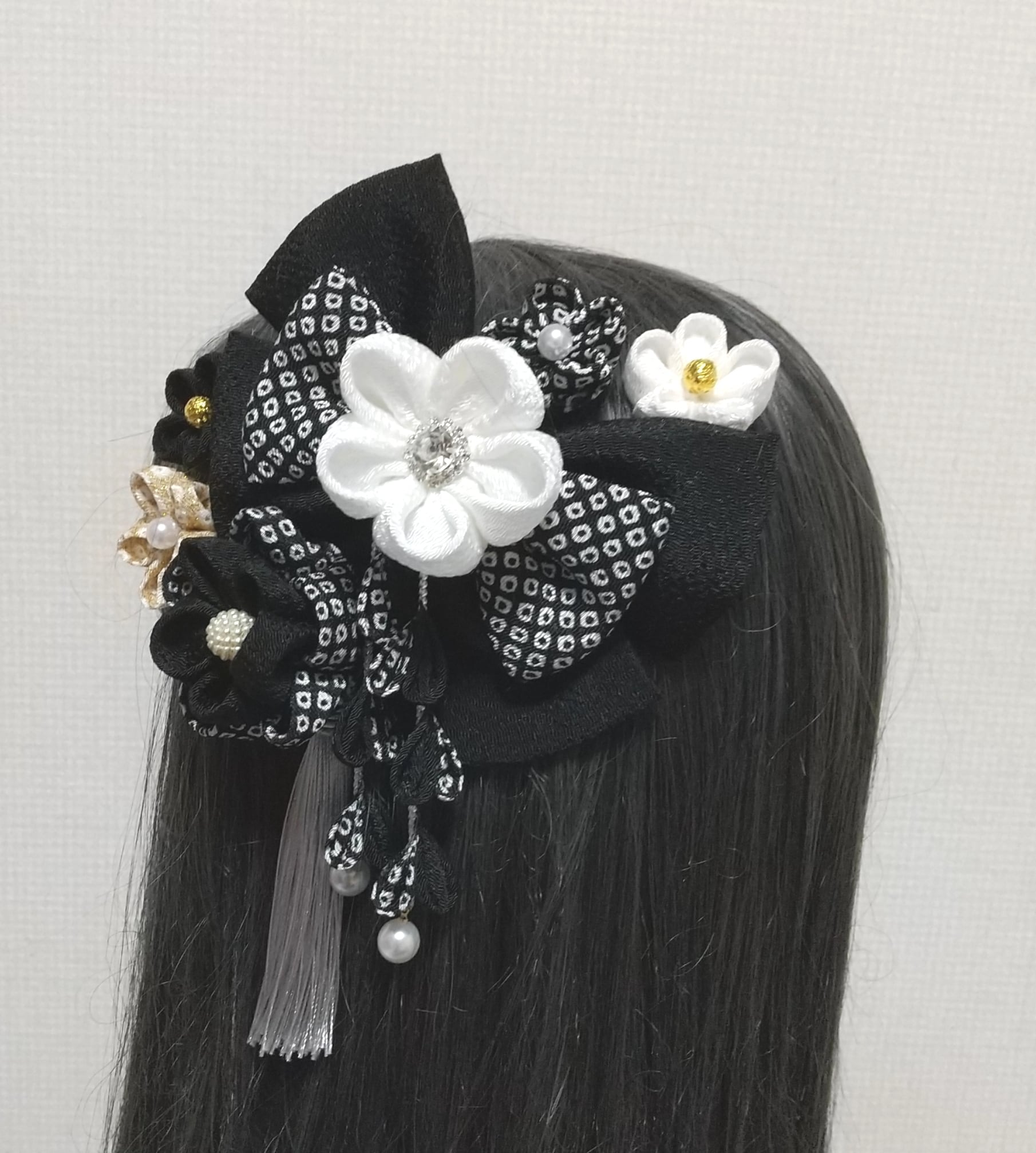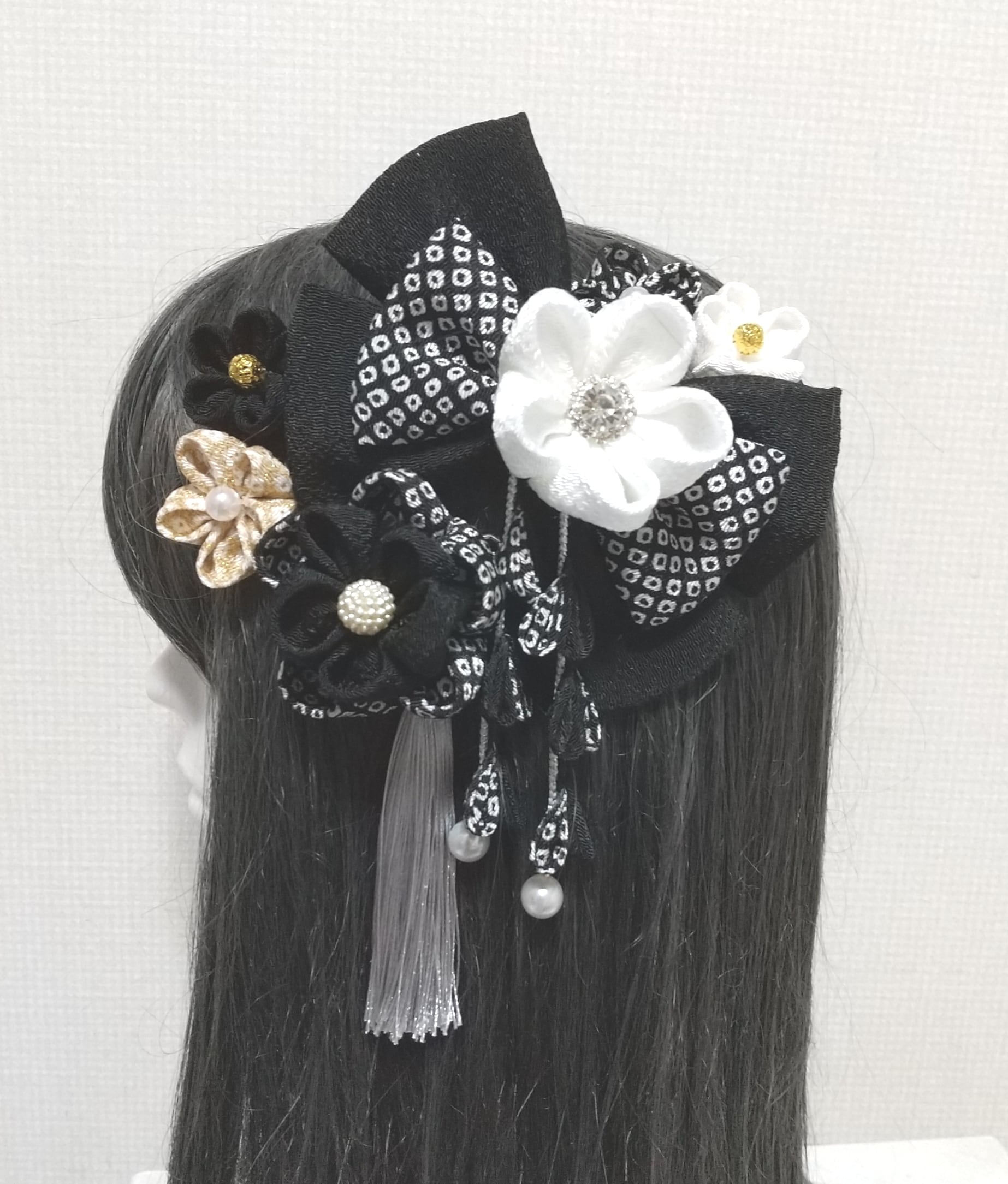 髪飾り 髪飾り黒 リボン黒 成人式 七五三 卒業式 つまみ細工 浴衣