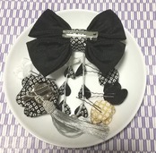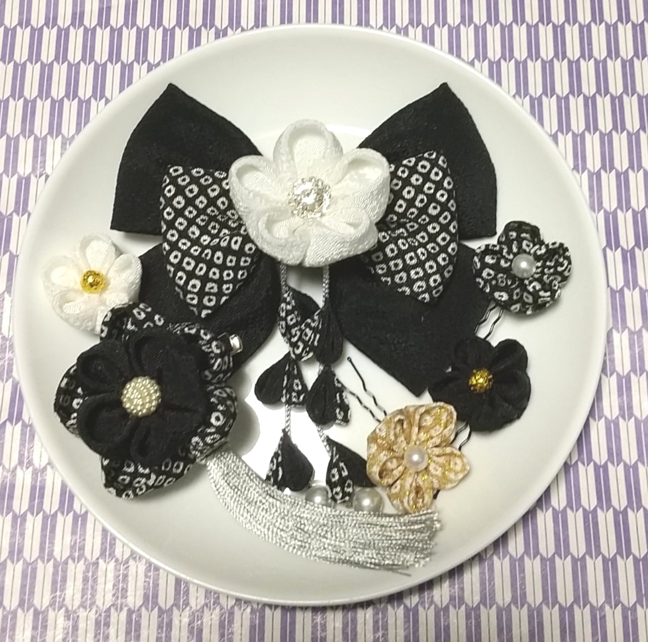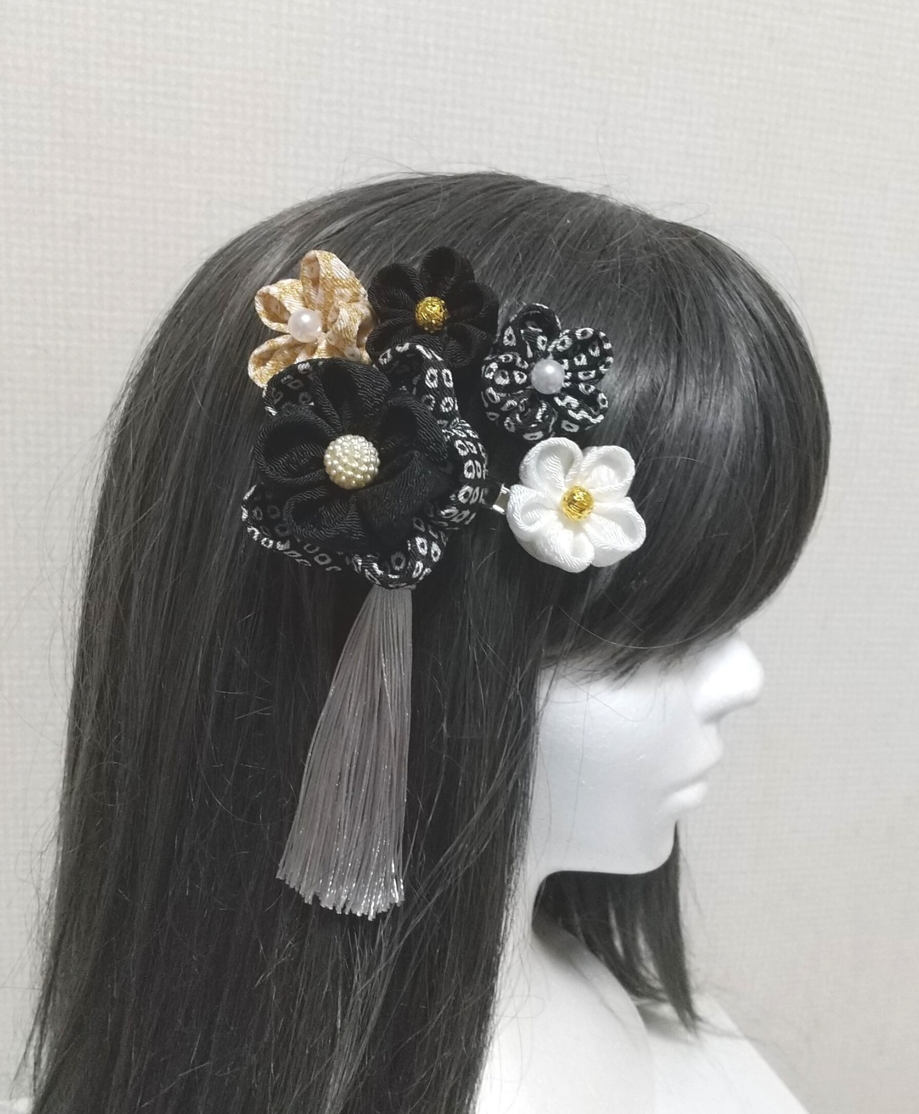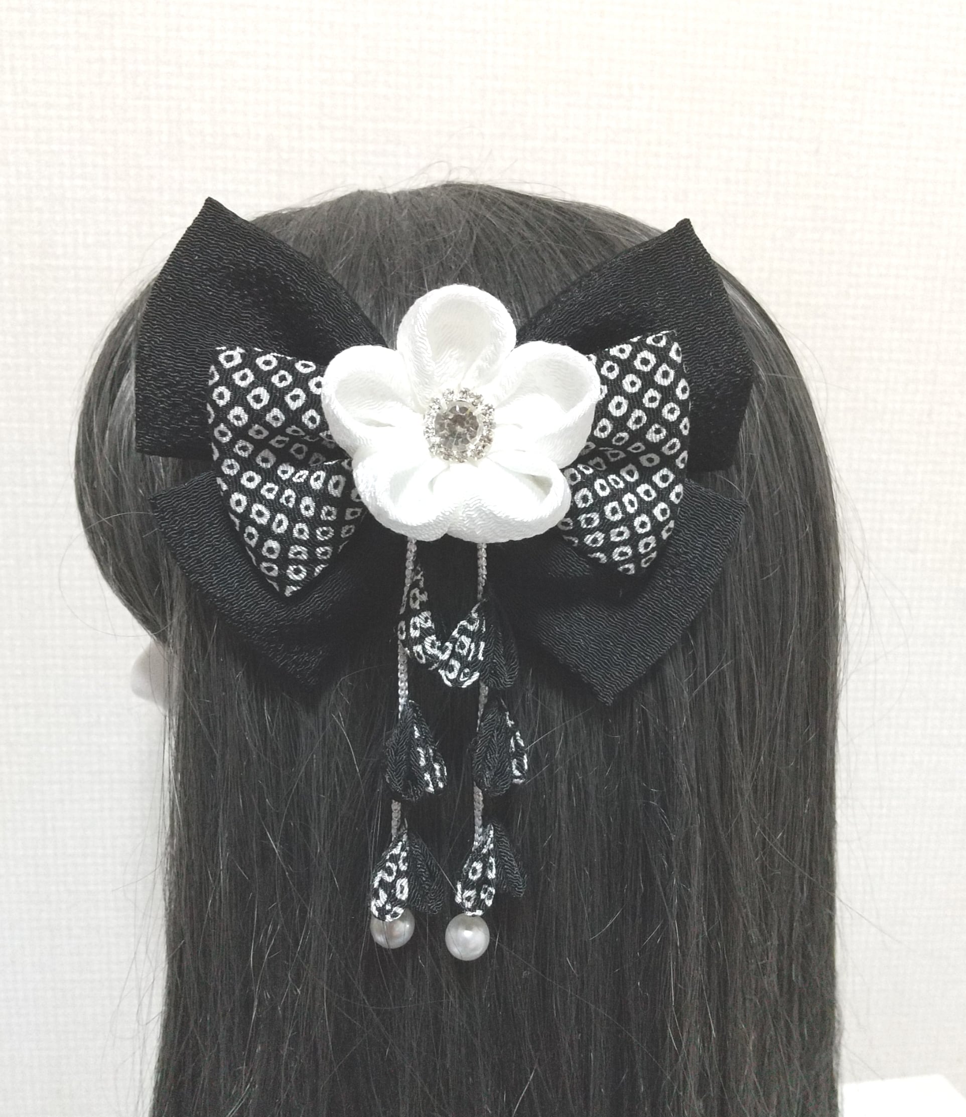 髪飾り 髪飾り黒 リボン黒 成人式 七五三 卒業式 つまみ細工 浴衣