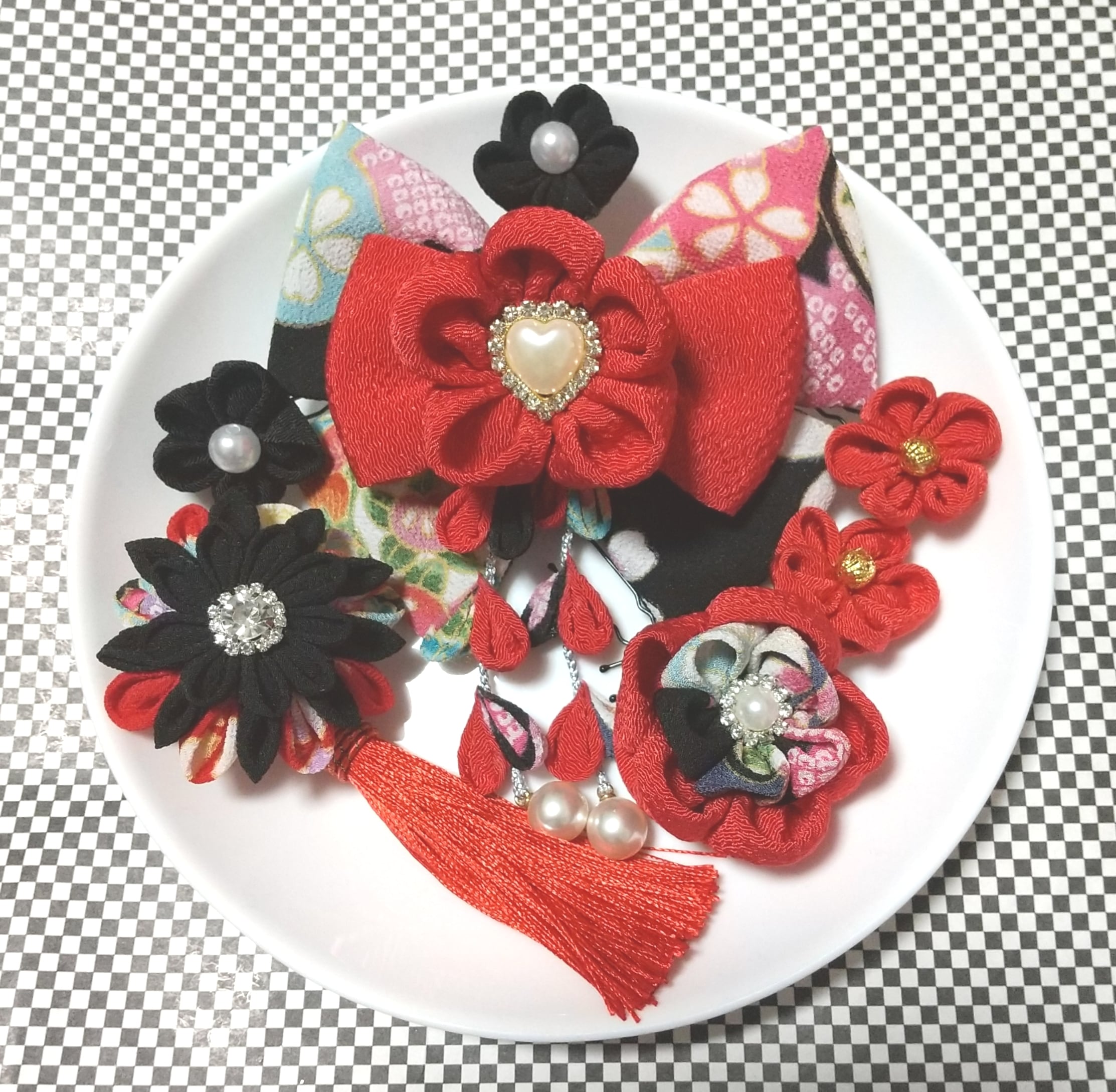 #花ヘッドアクセ #つまみ細工 #ヘヤピン #ヘアクリップ袴髪飾り