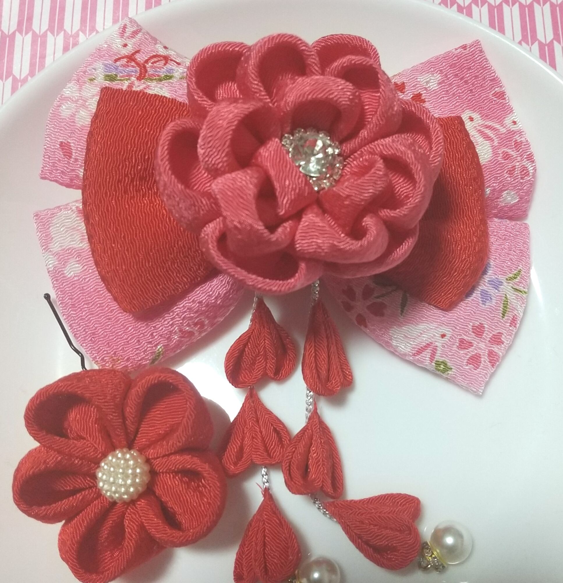 #花ヘッドアクセ #つまみ細工 #ヘヤピン #ヘアクリップ袴髪飾り