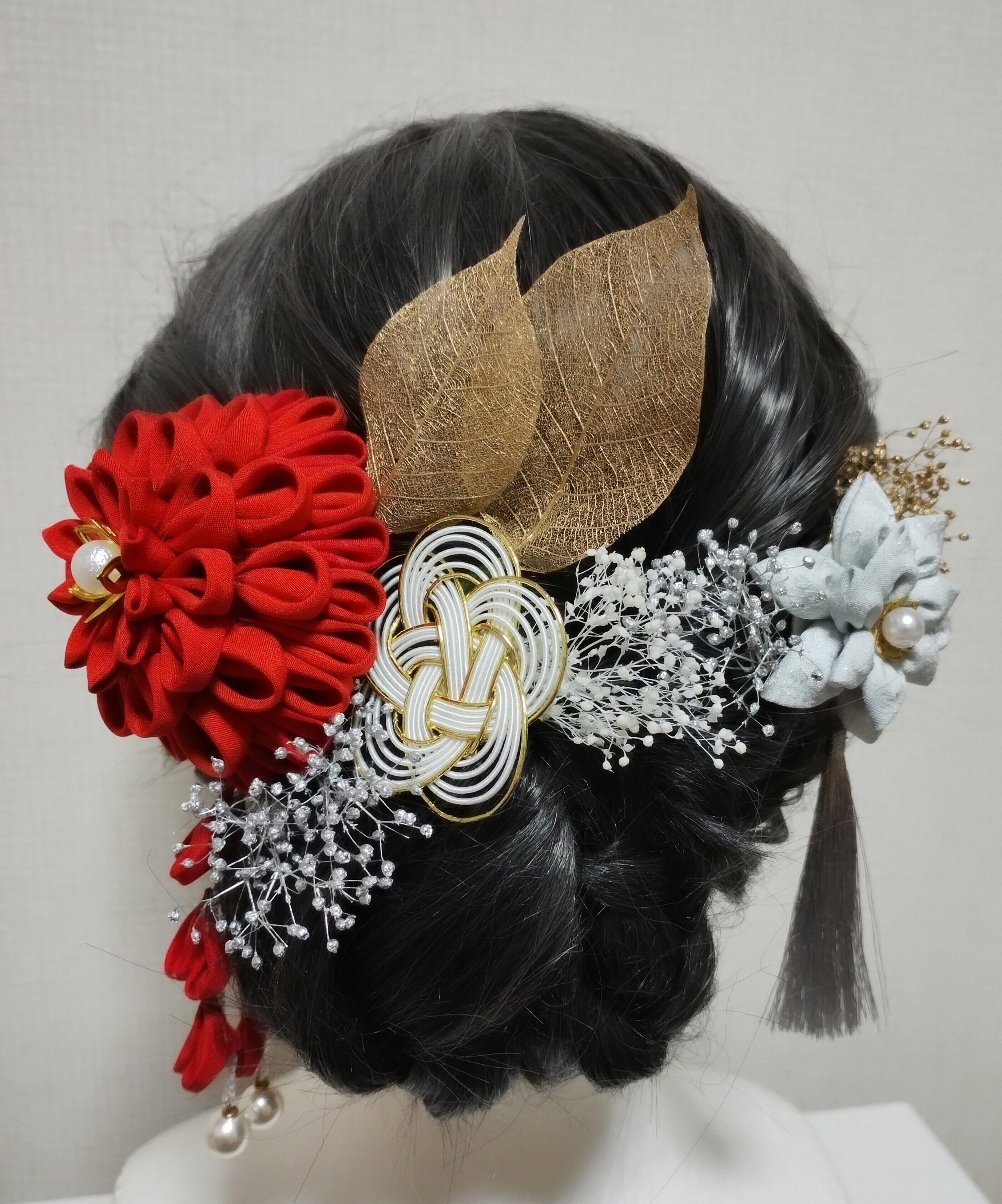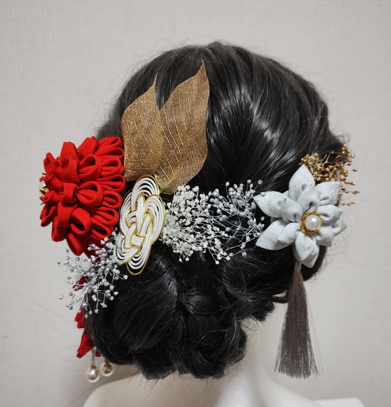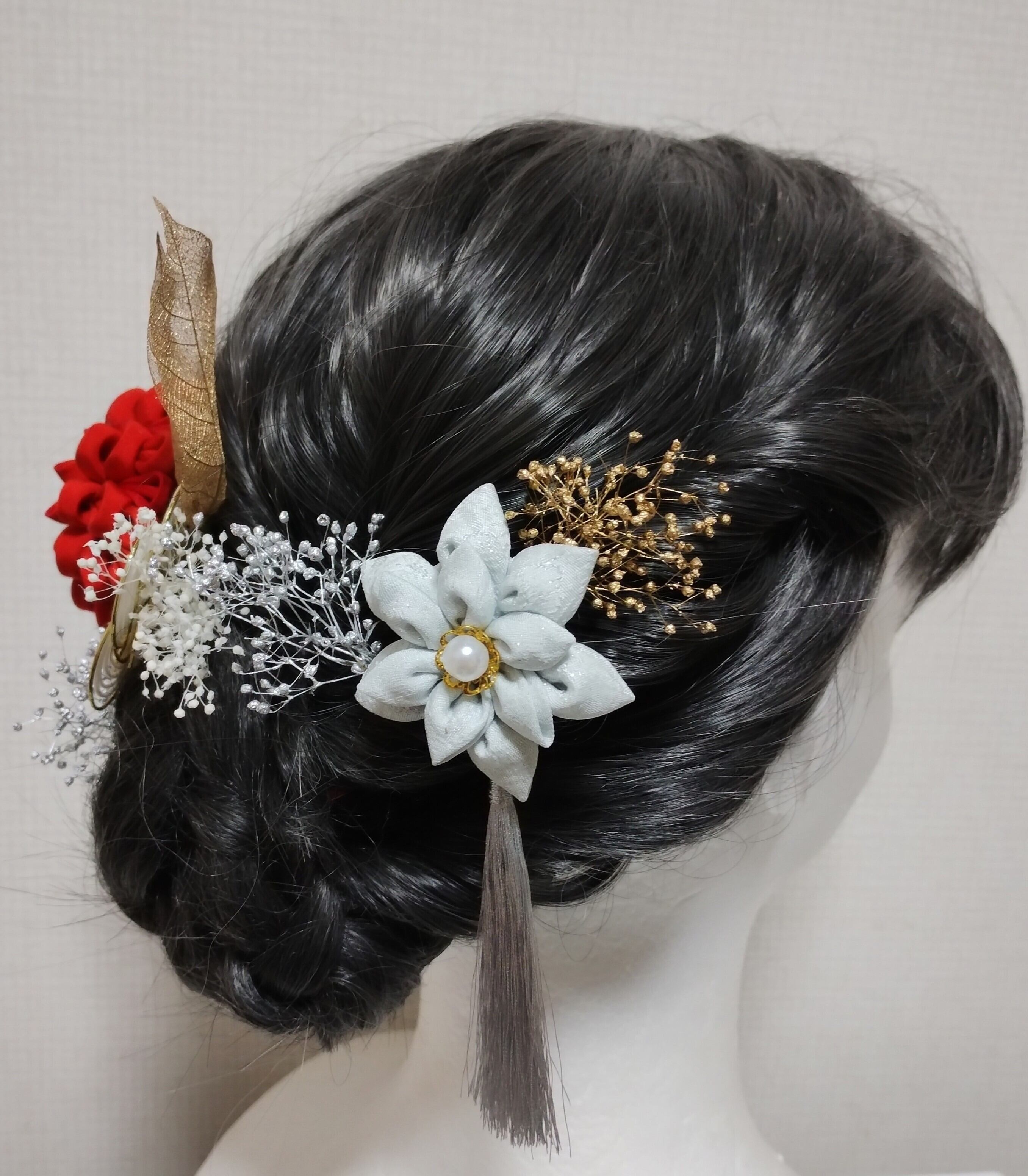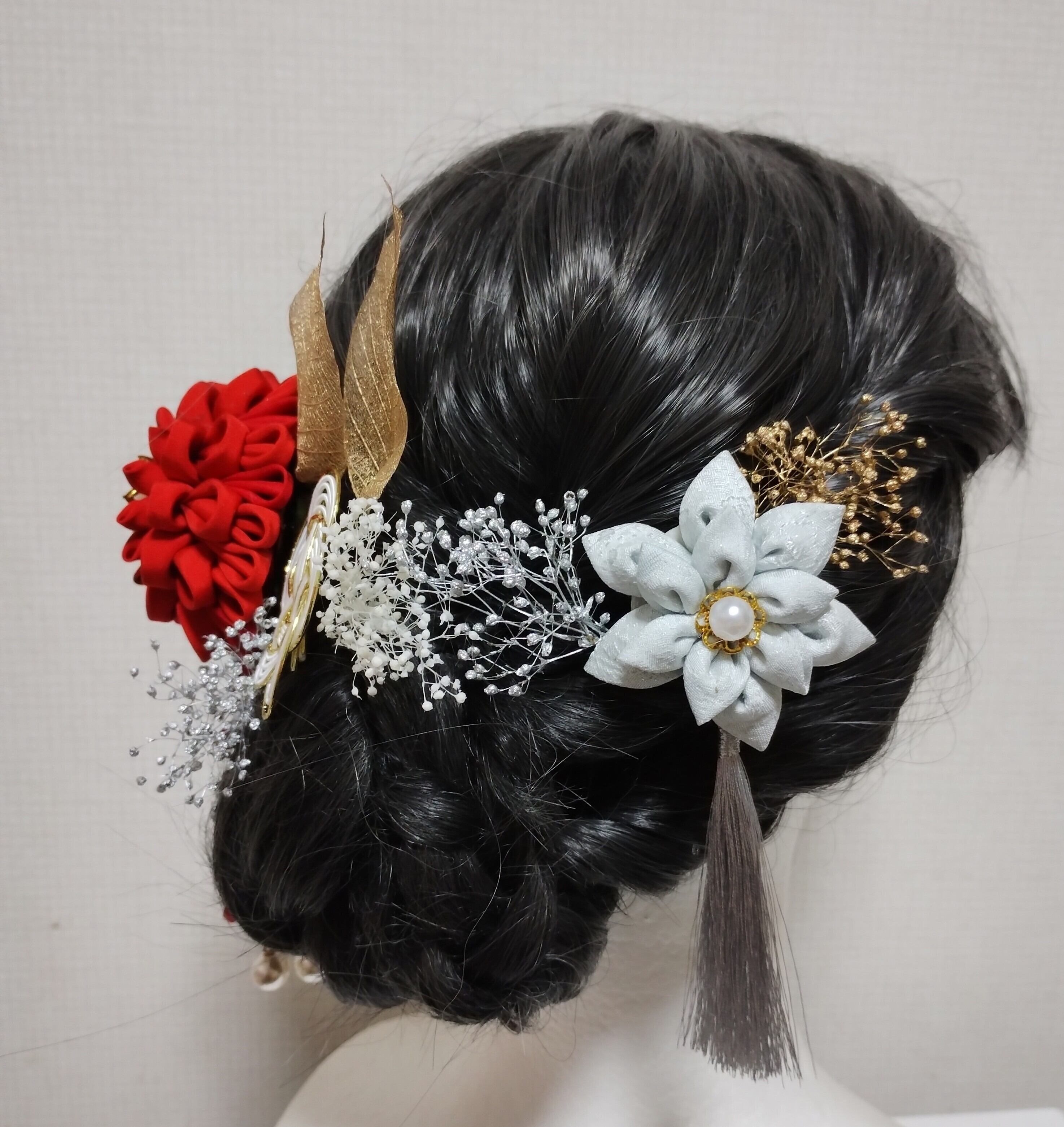 色打掛、成人式、卒業式 、七五三、浴衣、結婚式などの着物の時の和装髪飾りです。