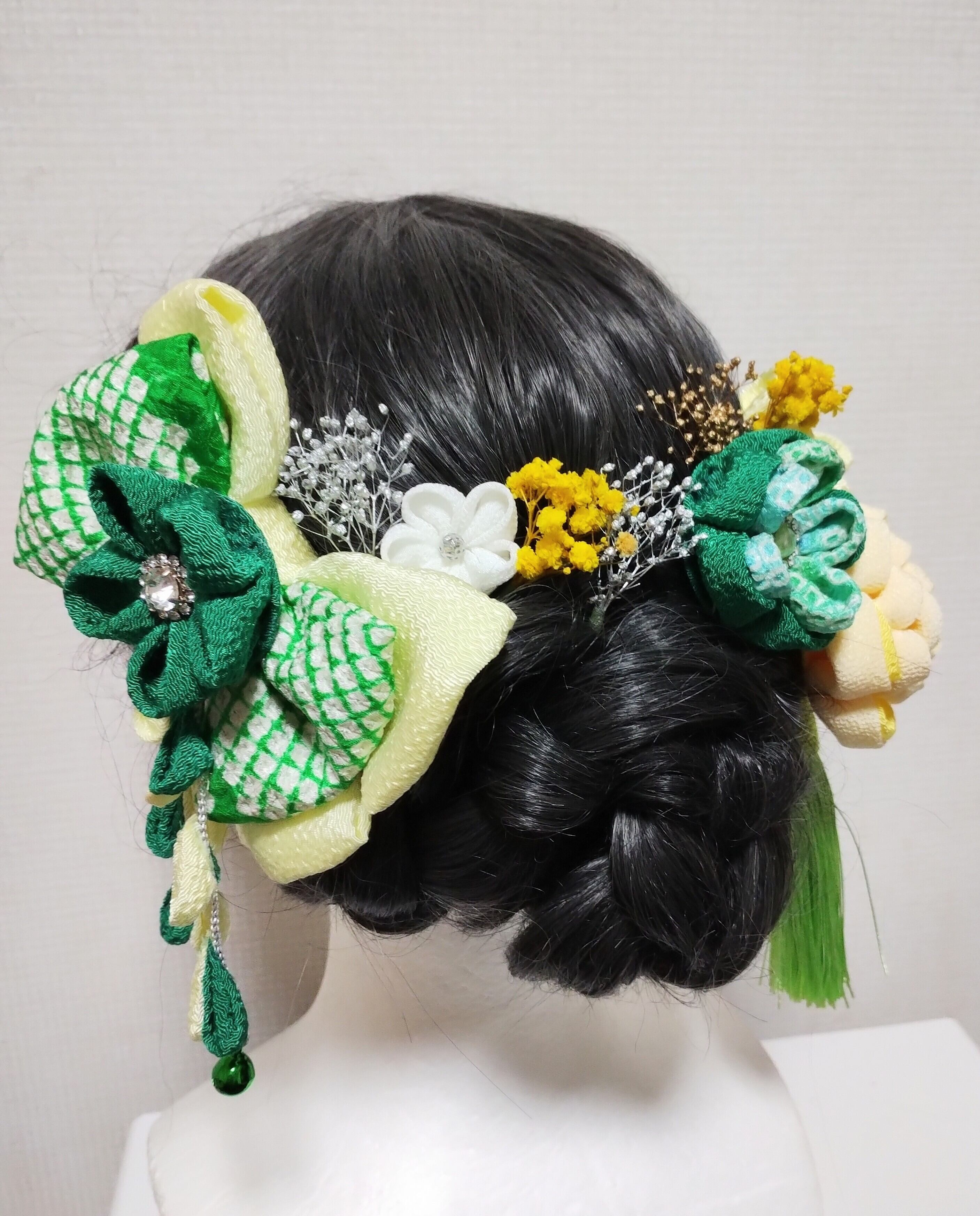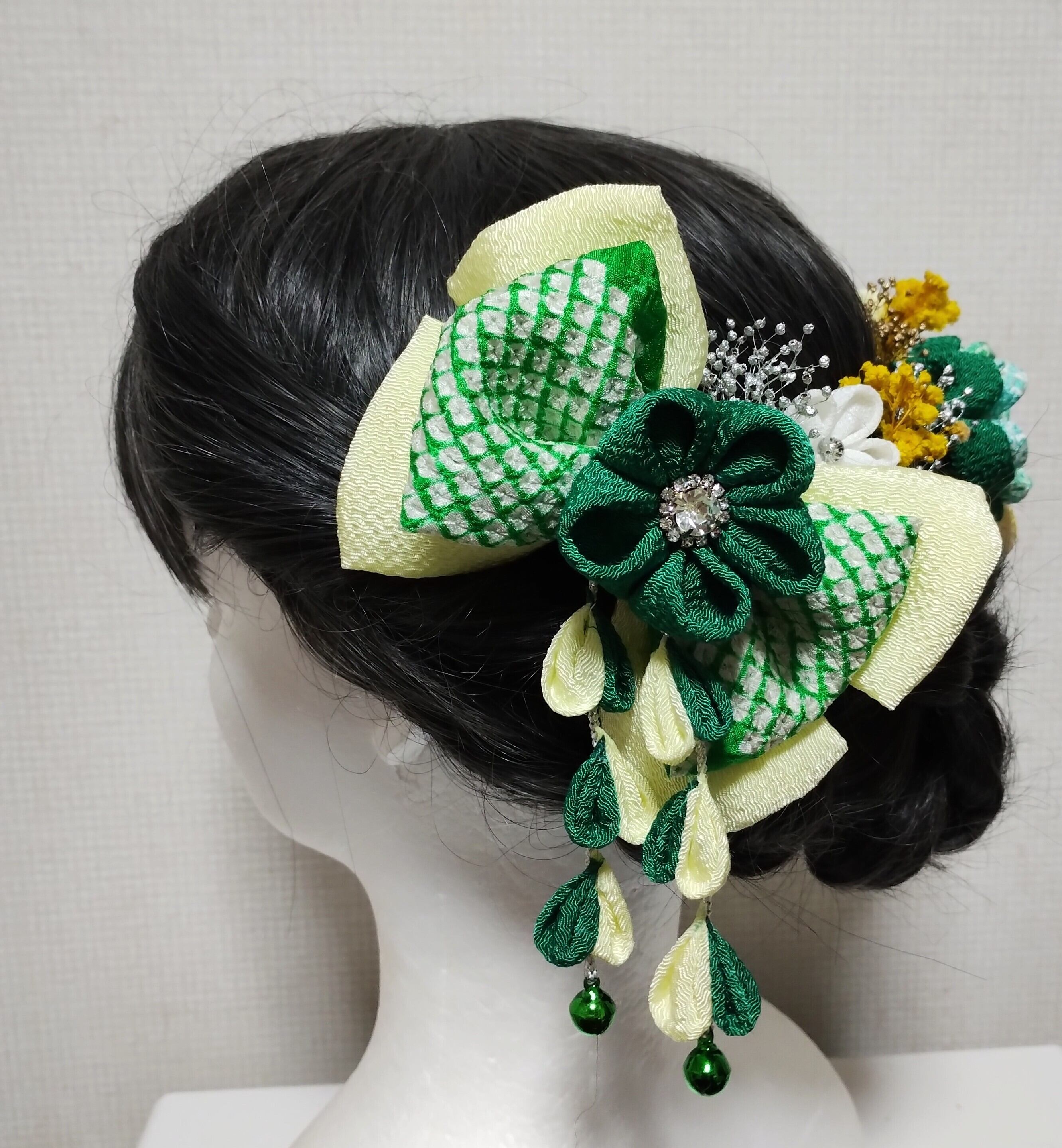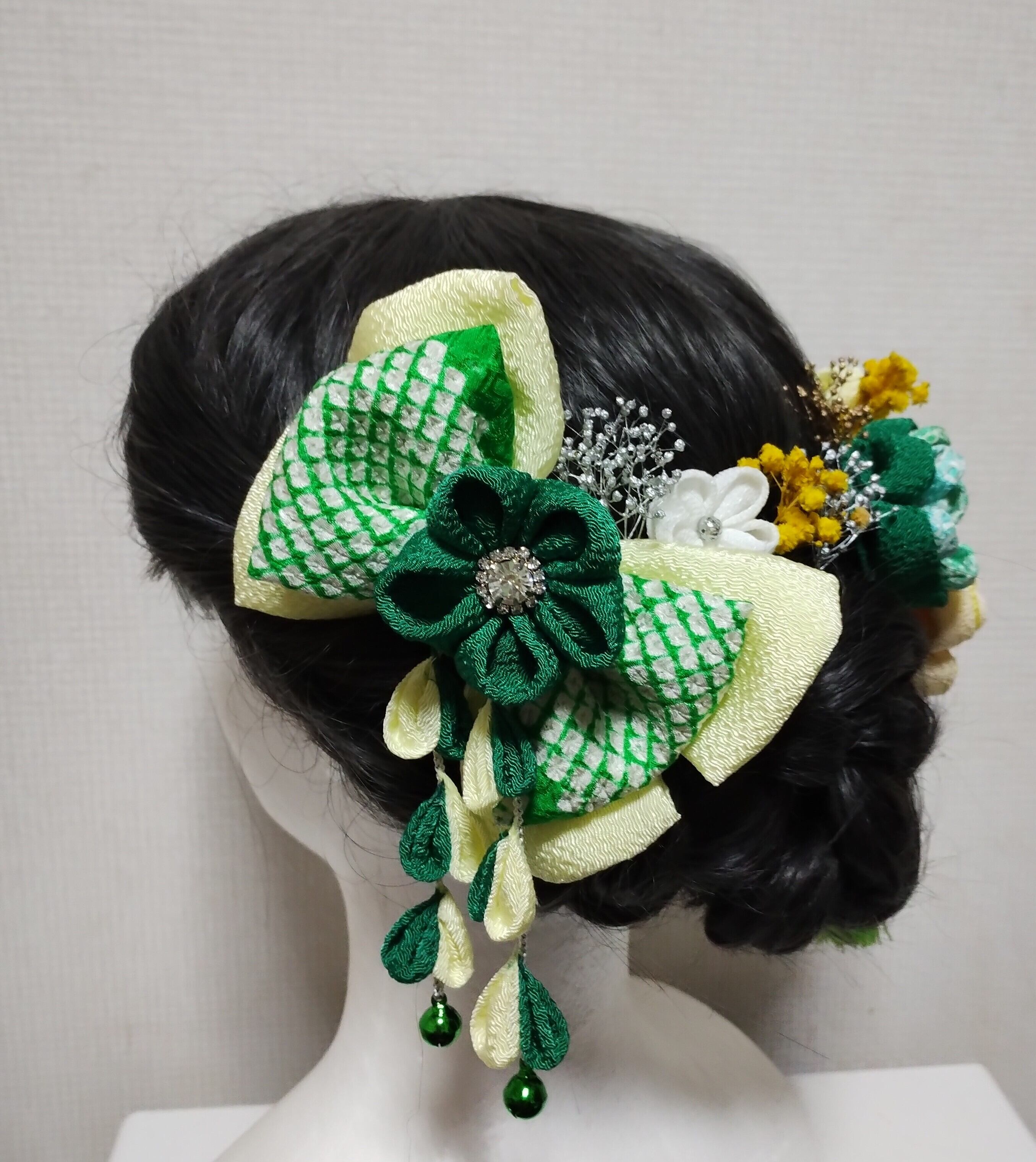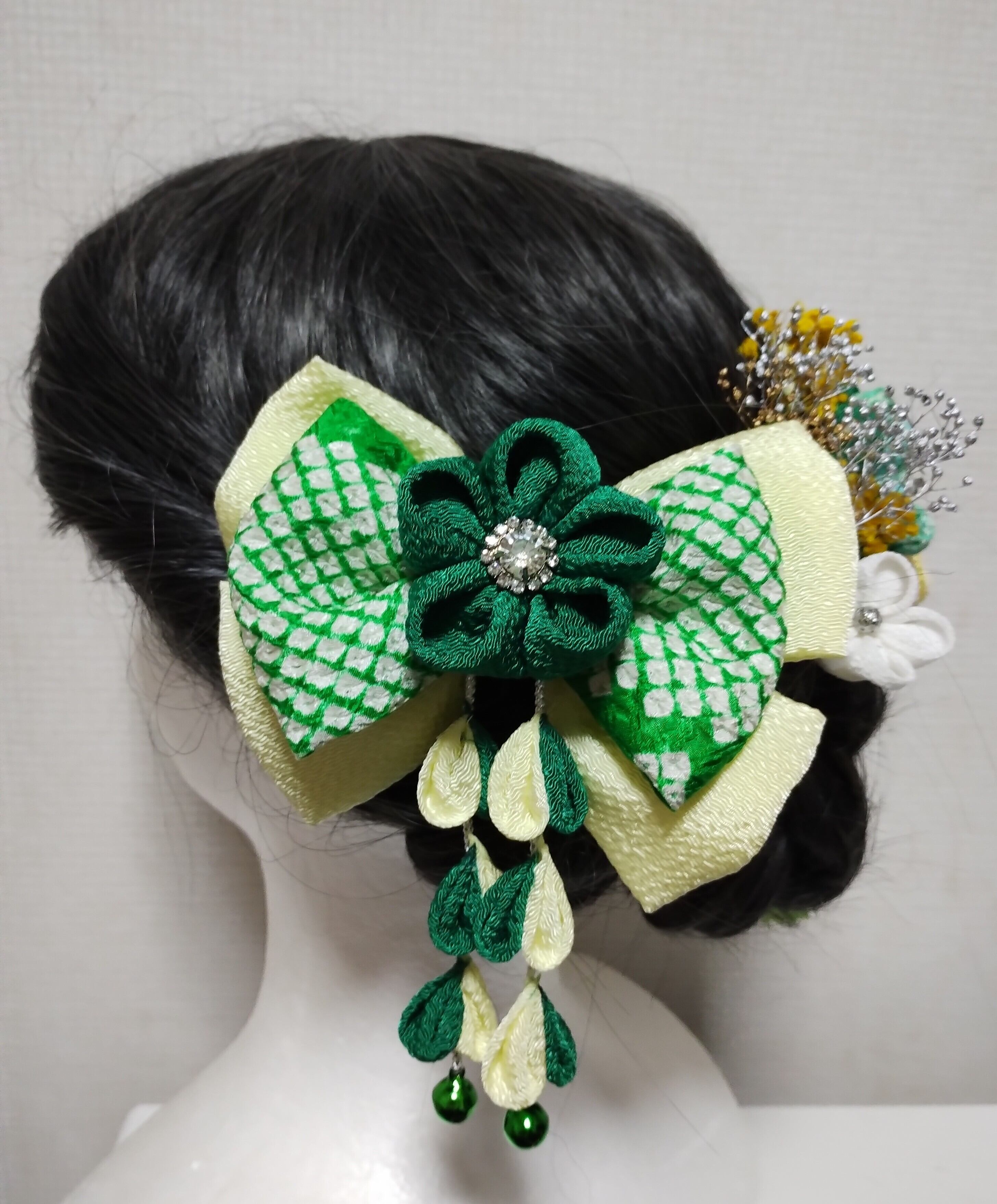 髪飾り 髪飾りイエロー 髪飾りグリーン 成人式 髪飾り 卒業式髪飾り 七五三髪飾り リボン