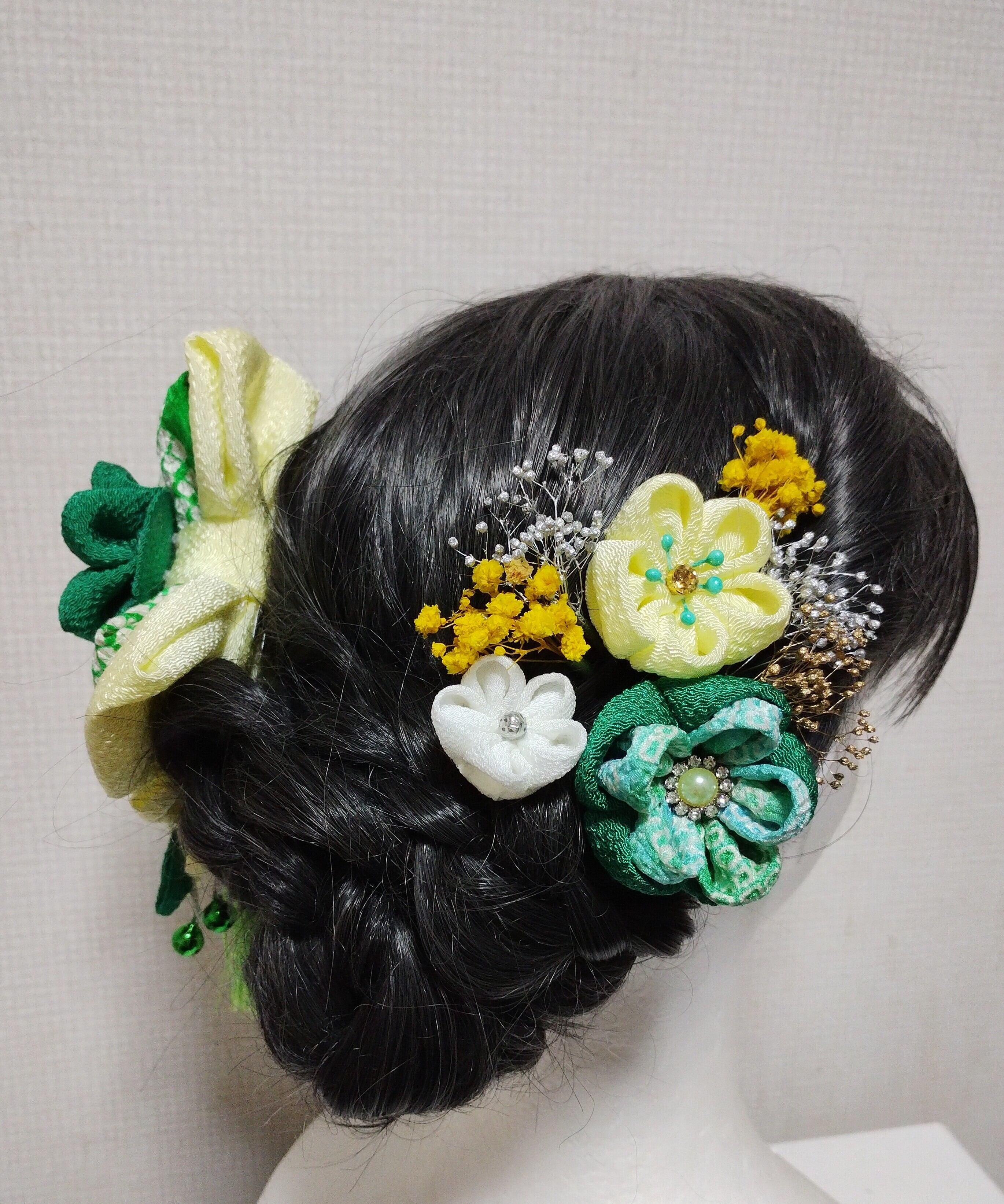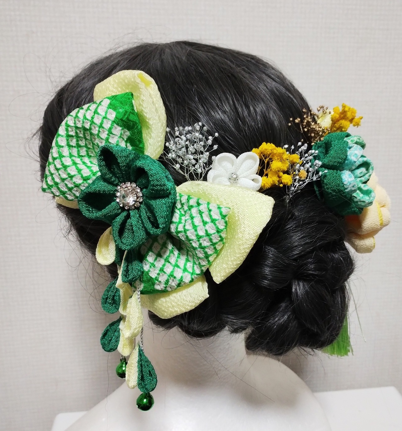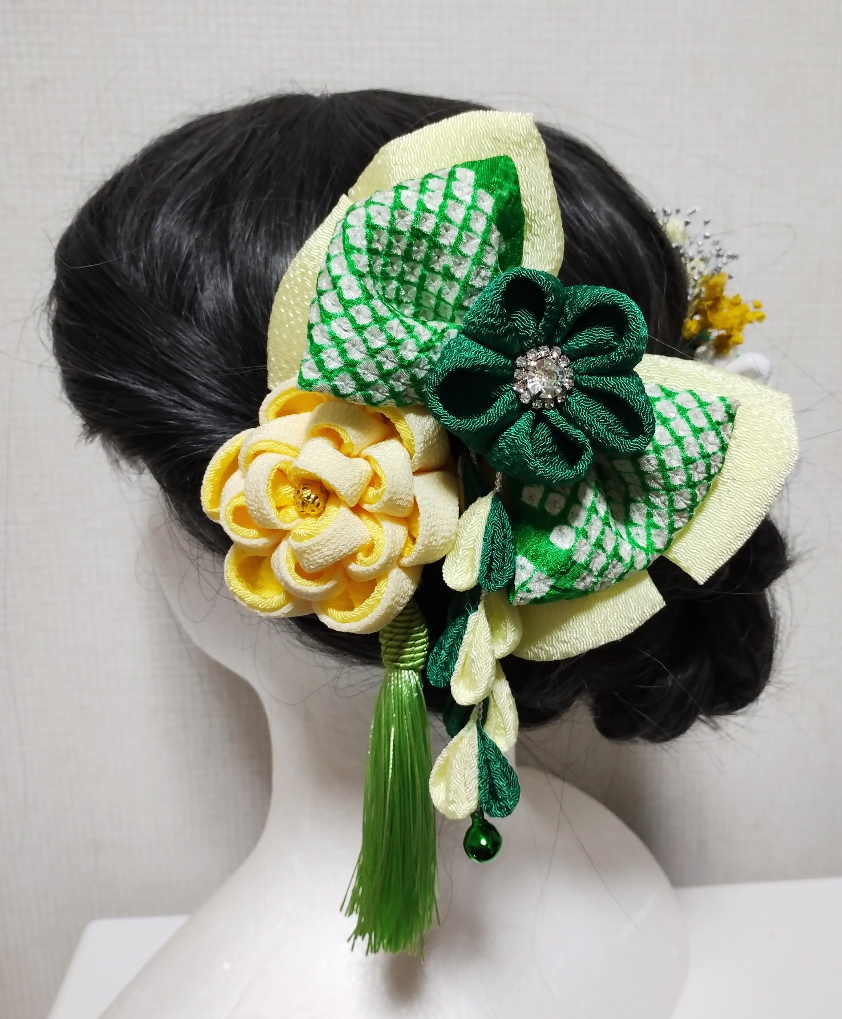 髪飾り 髪飾りイエロー 髪飾りグリーン 成人式 髪飾り 卒業式髪飾り 七五三髪飾り リボン
