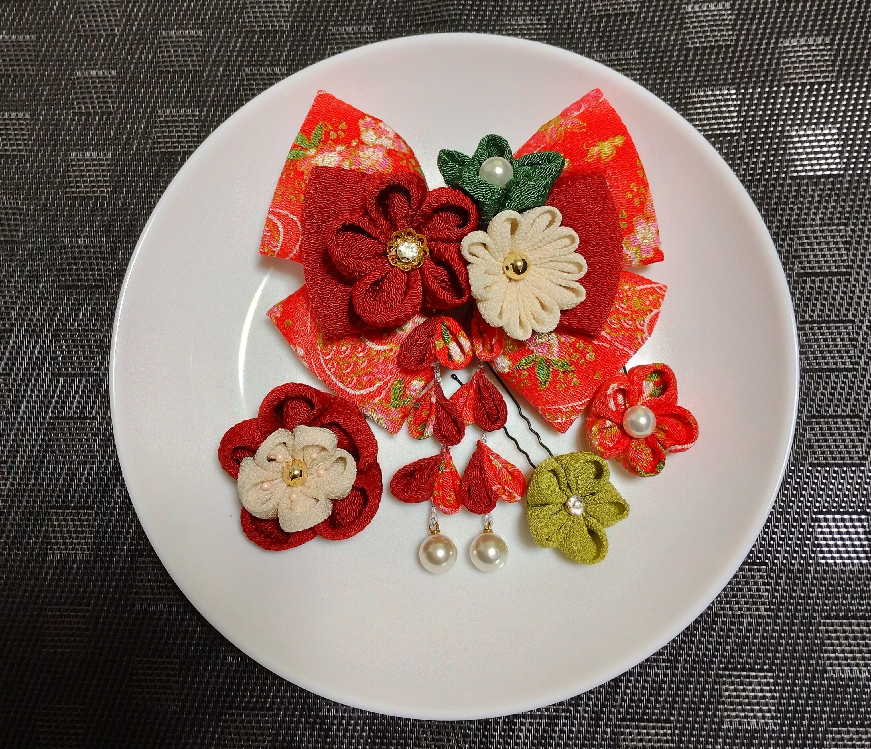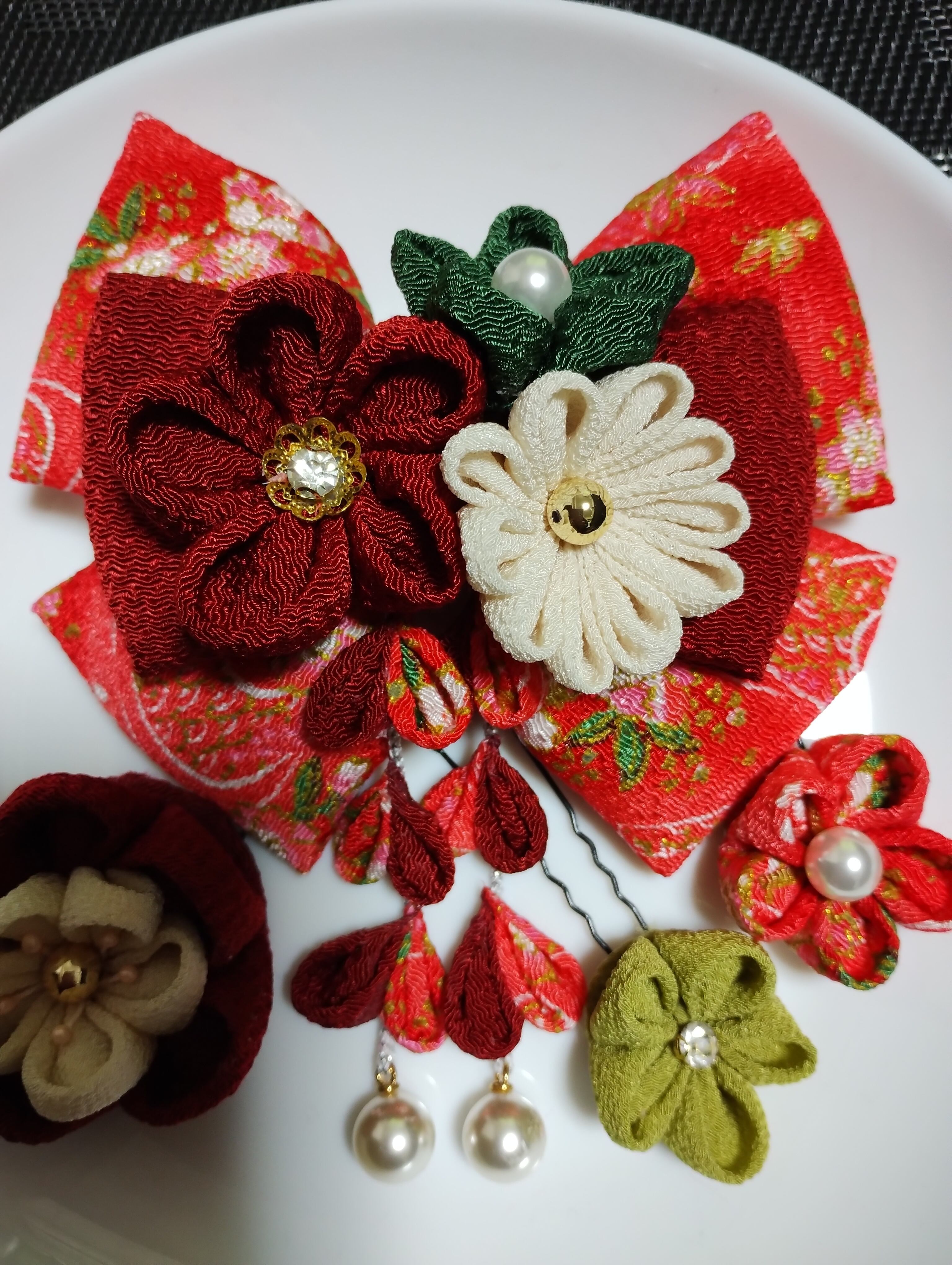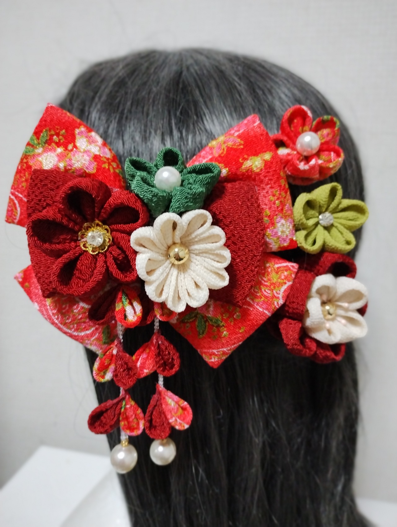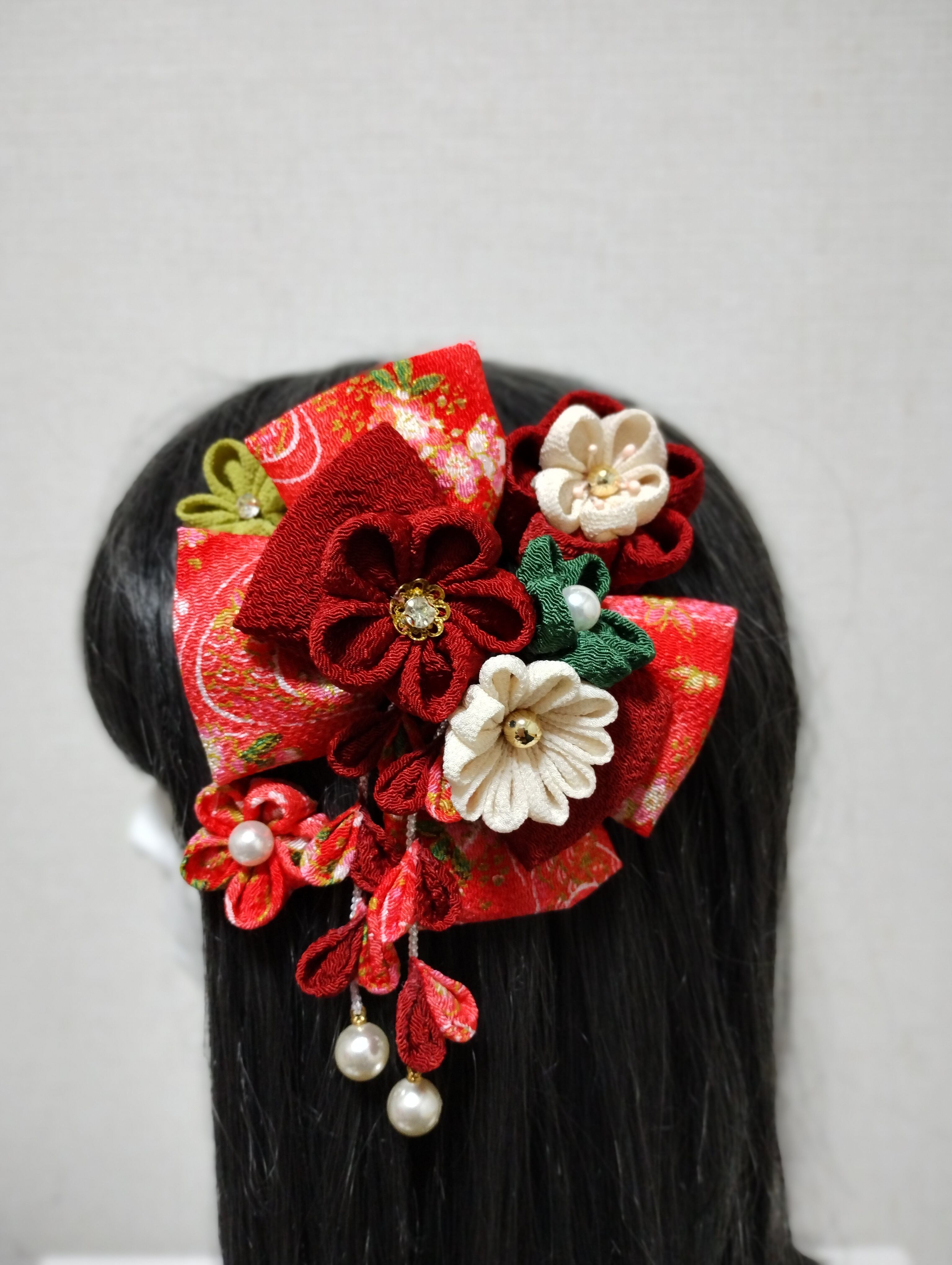 #成人式 #成人式髪飾り #卒業式髪飾り #七五三髪飾り #袴髪飾り #浴衣 #えんじ色 #髪飾り赤