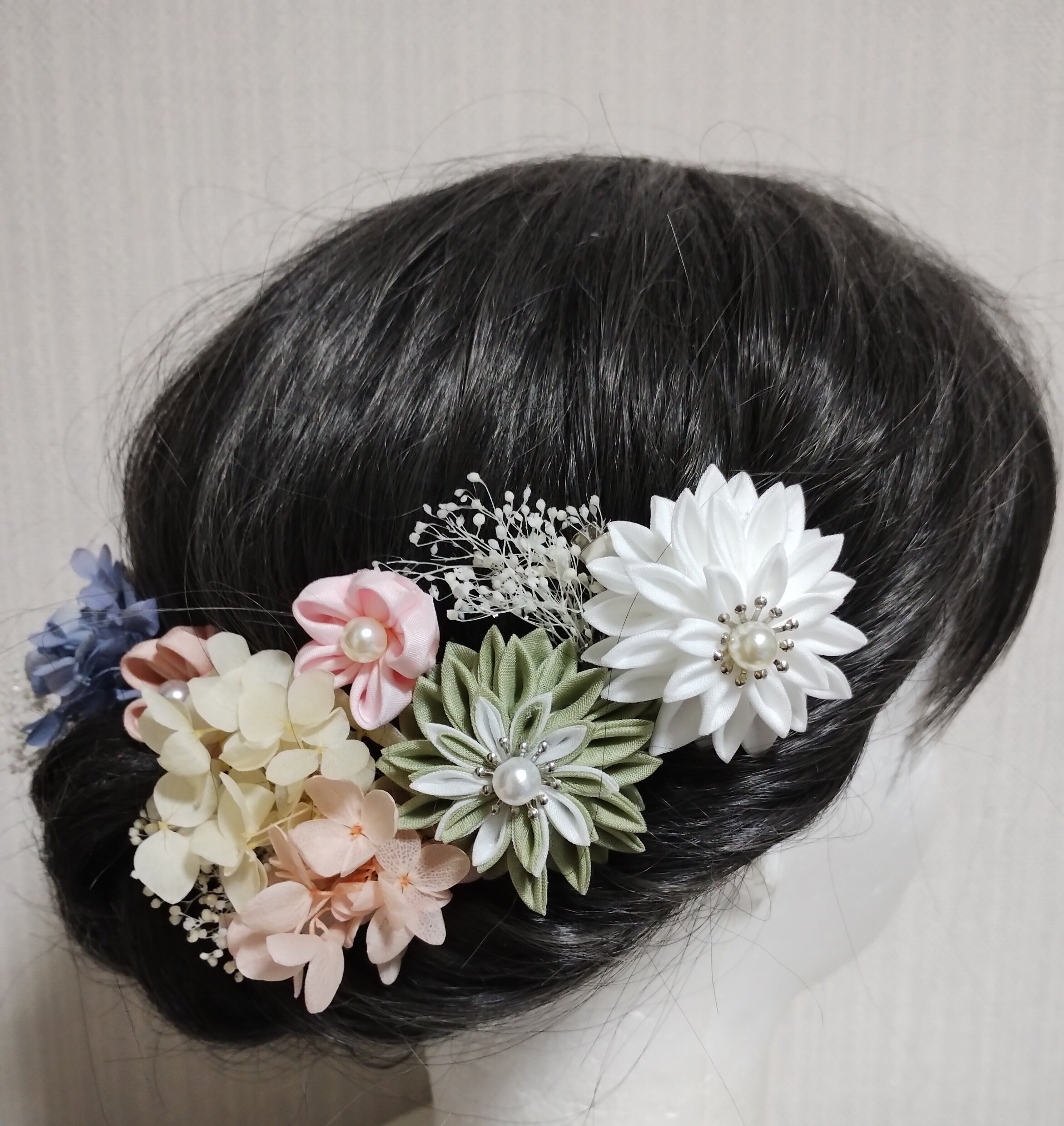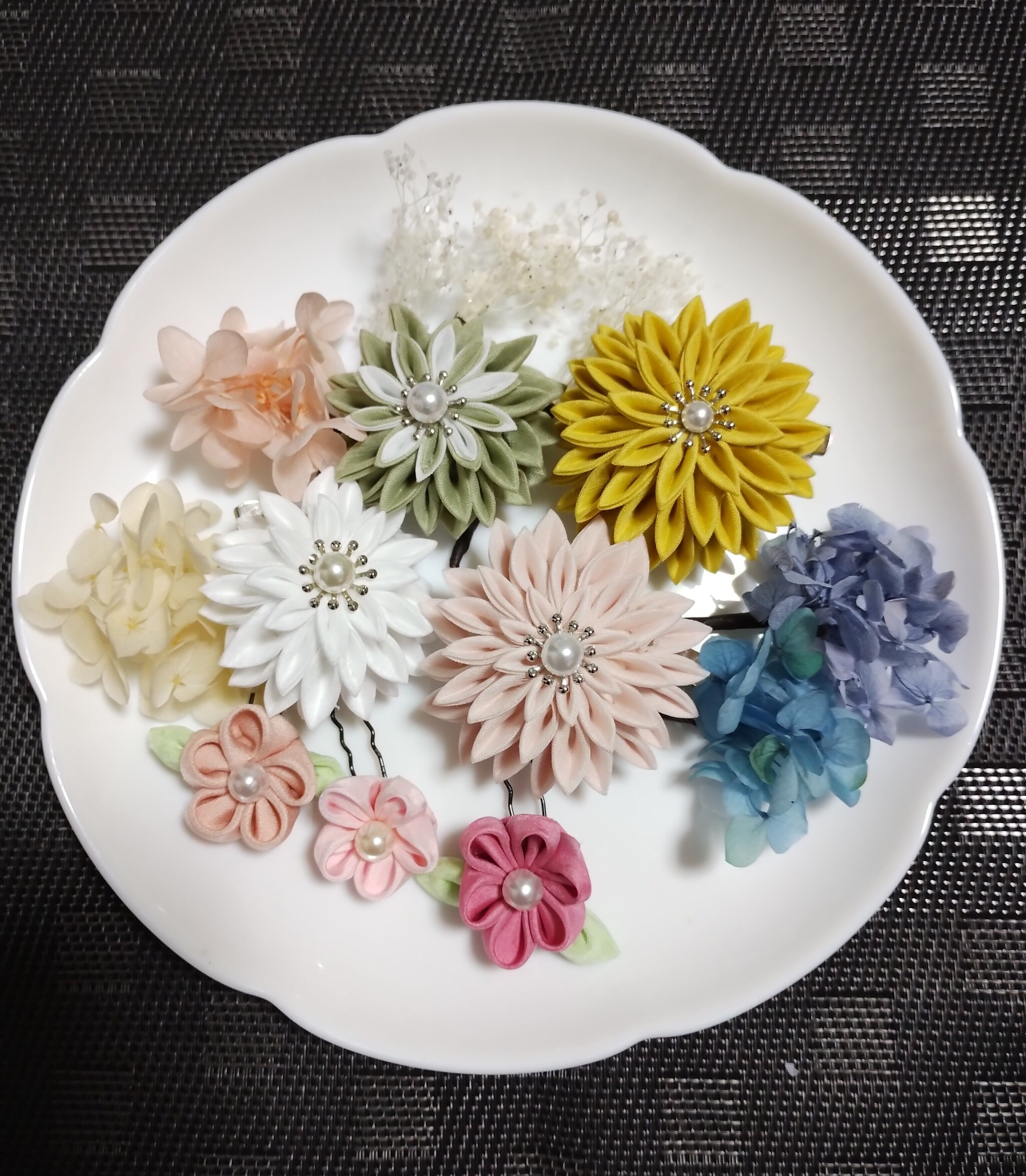 ご購入いただくお客様のお気持ちに応えるべく、制作に対する丁寧さやこだわりも徹底しています。素材や色合い、装飾の配置など、細部までこだわり抜いたつまみ細工髪飾りは、着用する方に高い満足感をお届けできること間違いありません。大切な日に込められた思いを共有し、きらびやかで素敵な時間を過ごしていただきたいと願っています。