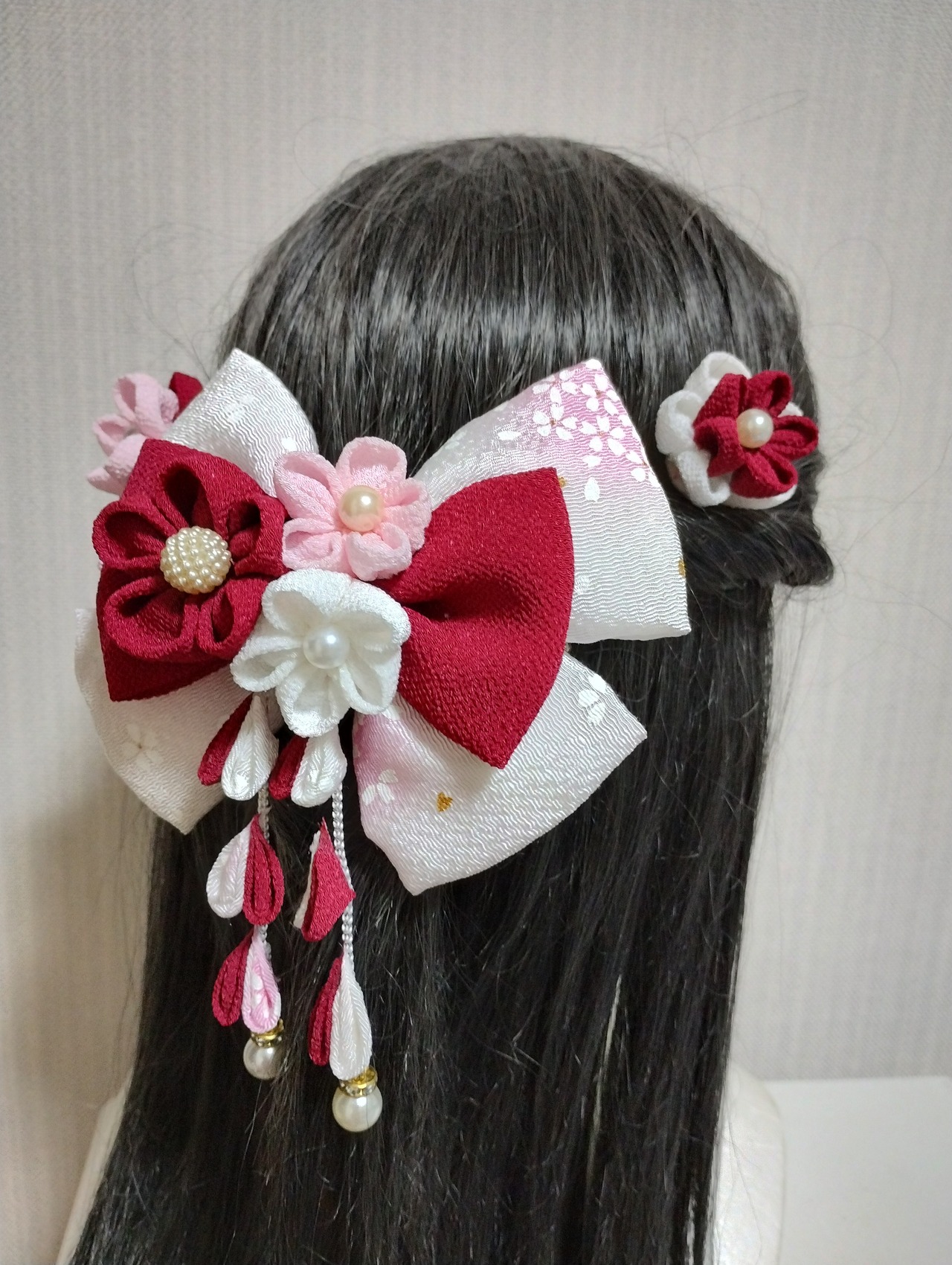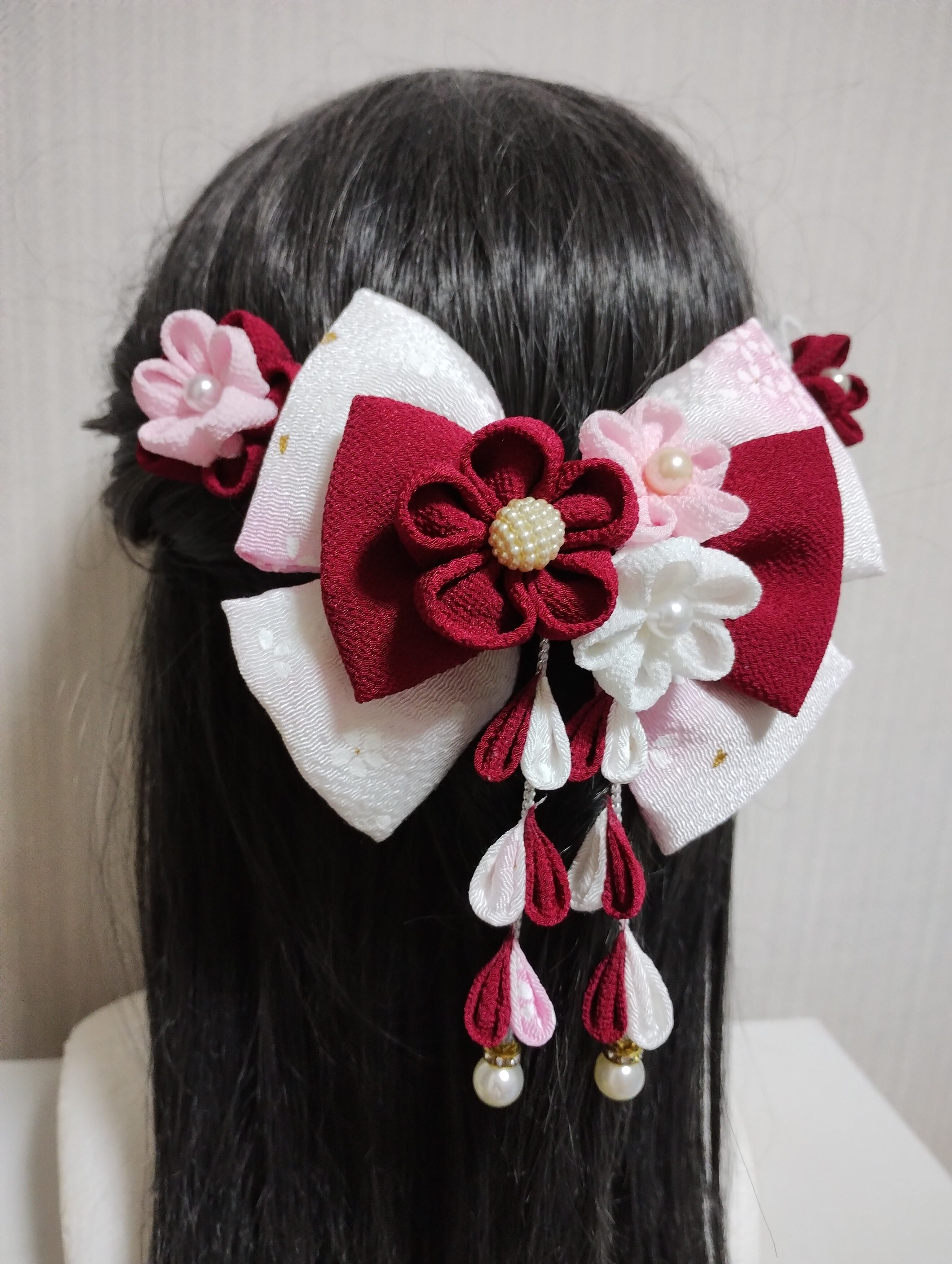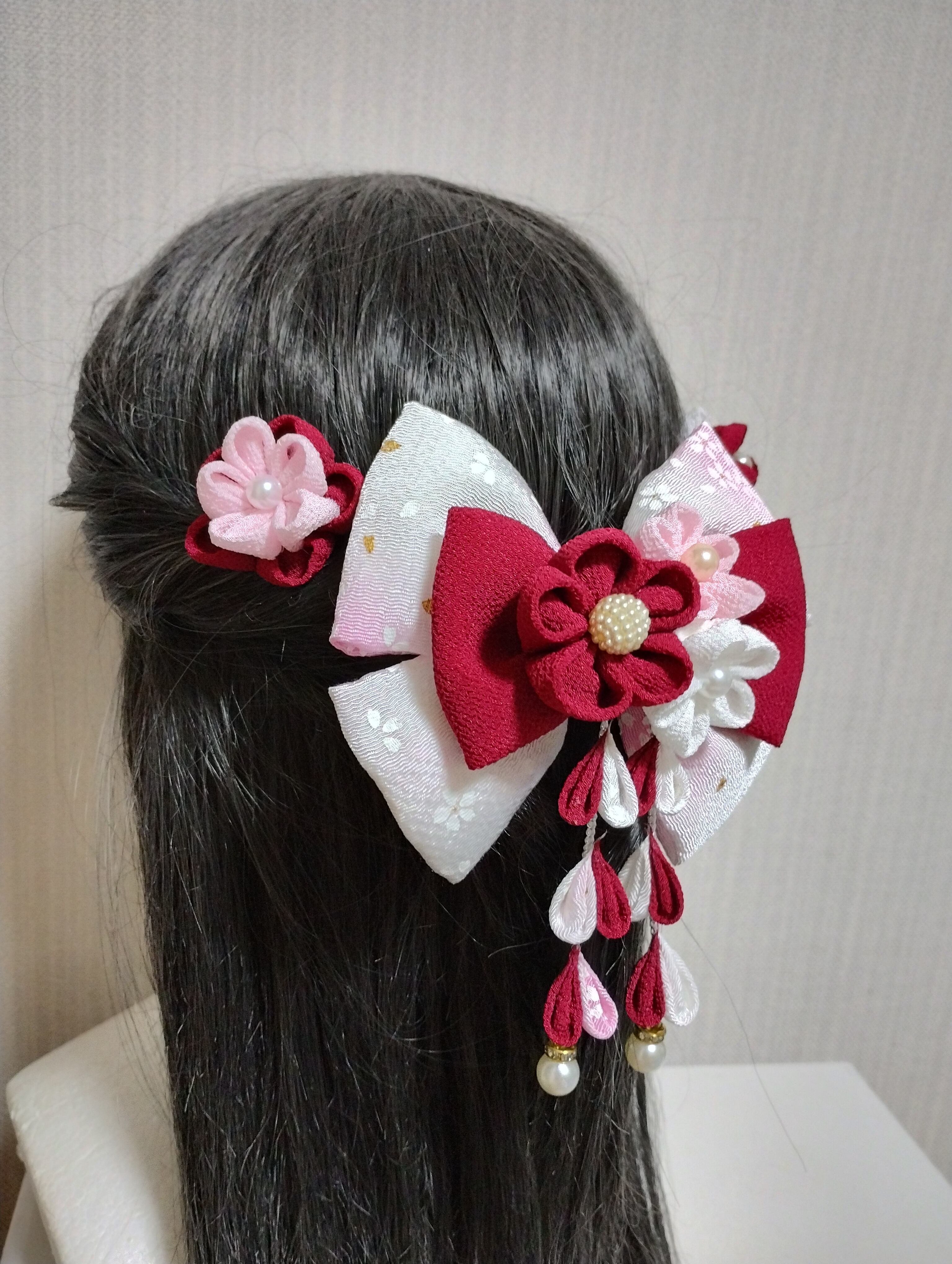 #花 #つまみ細工 #ヘヤピン #ヘアクリップ袴髪飾り#髪飾り #卒業式リボン#七五三髪飾り#着物#kimono #成人式前撮り#卒業式前撮り#卒業式ヘアスタイル#kamikazarin #つまみ細工#hair #pretty#kimono #beautiful#handmade#振袖#オーダーメイド #リボン#卒業式リボン#リボン赤