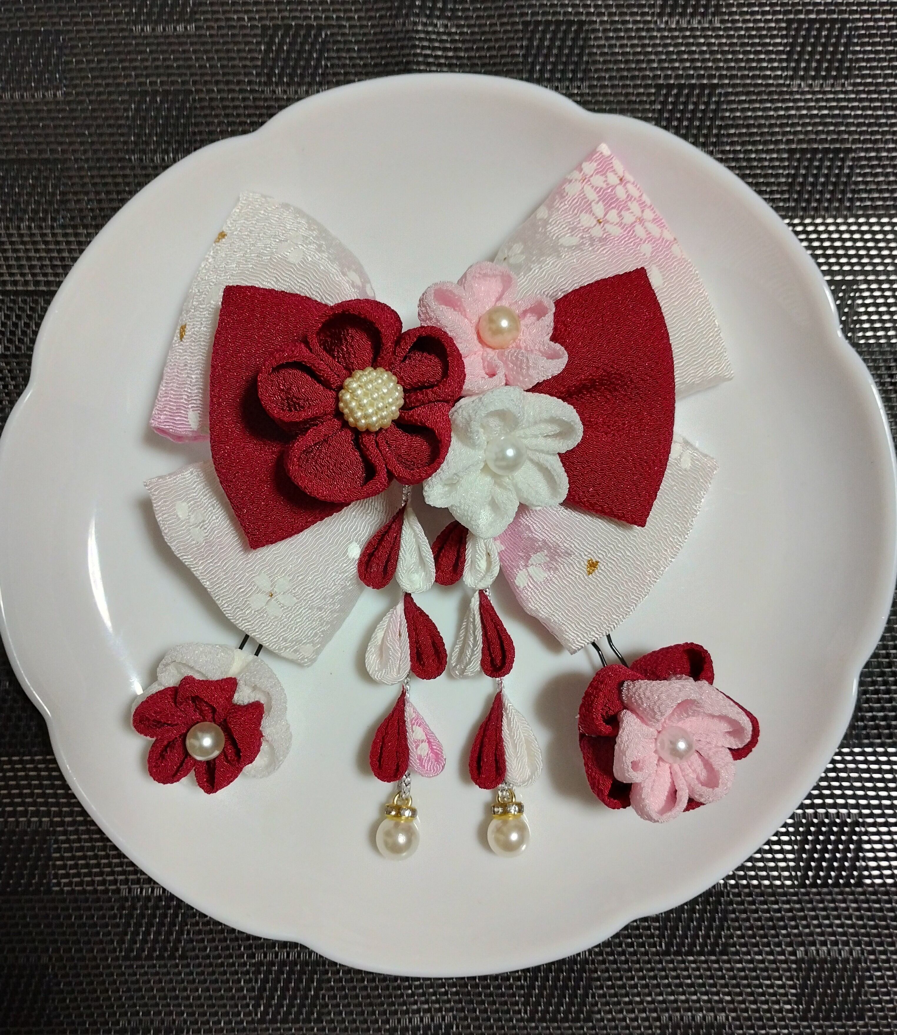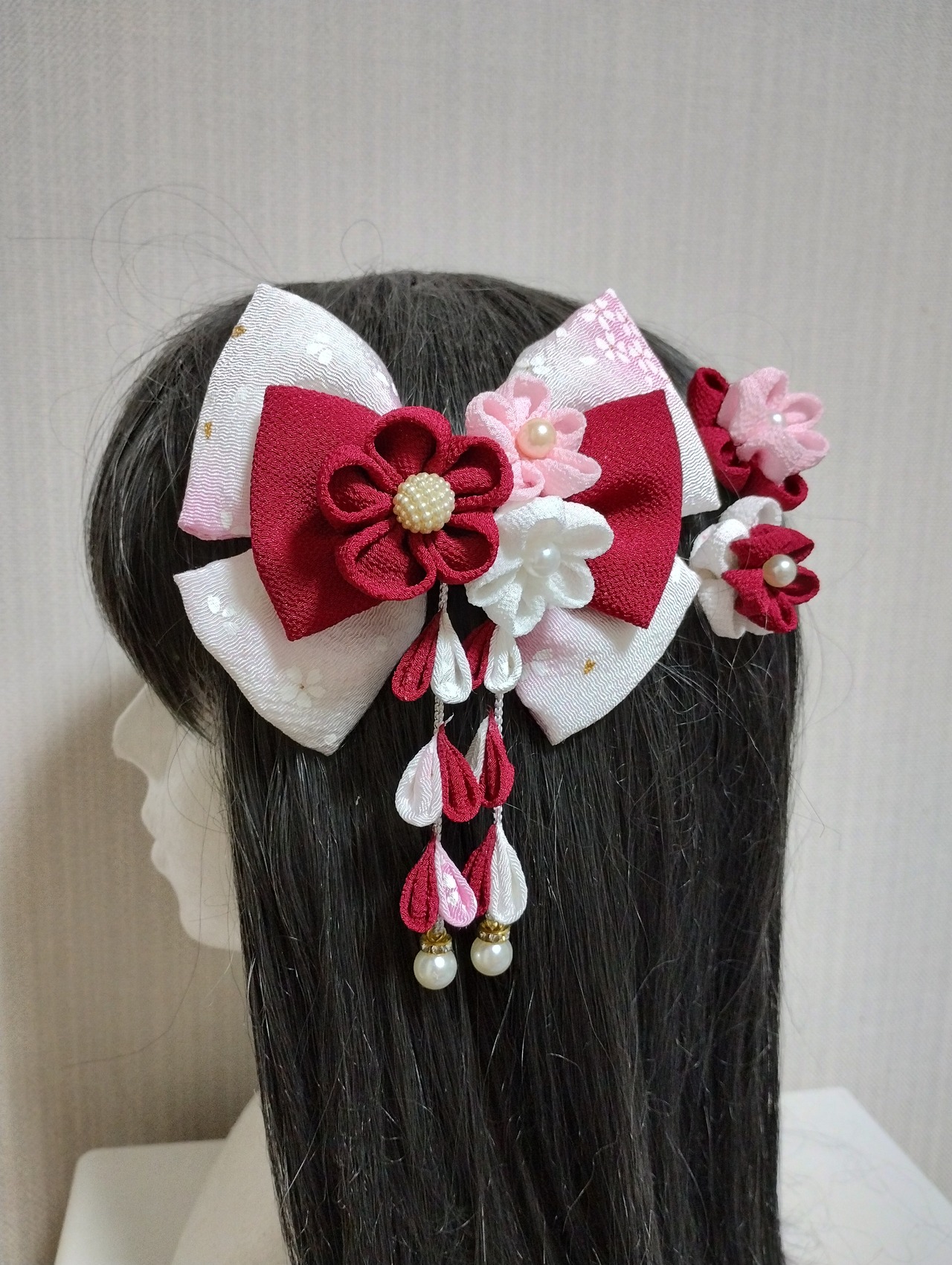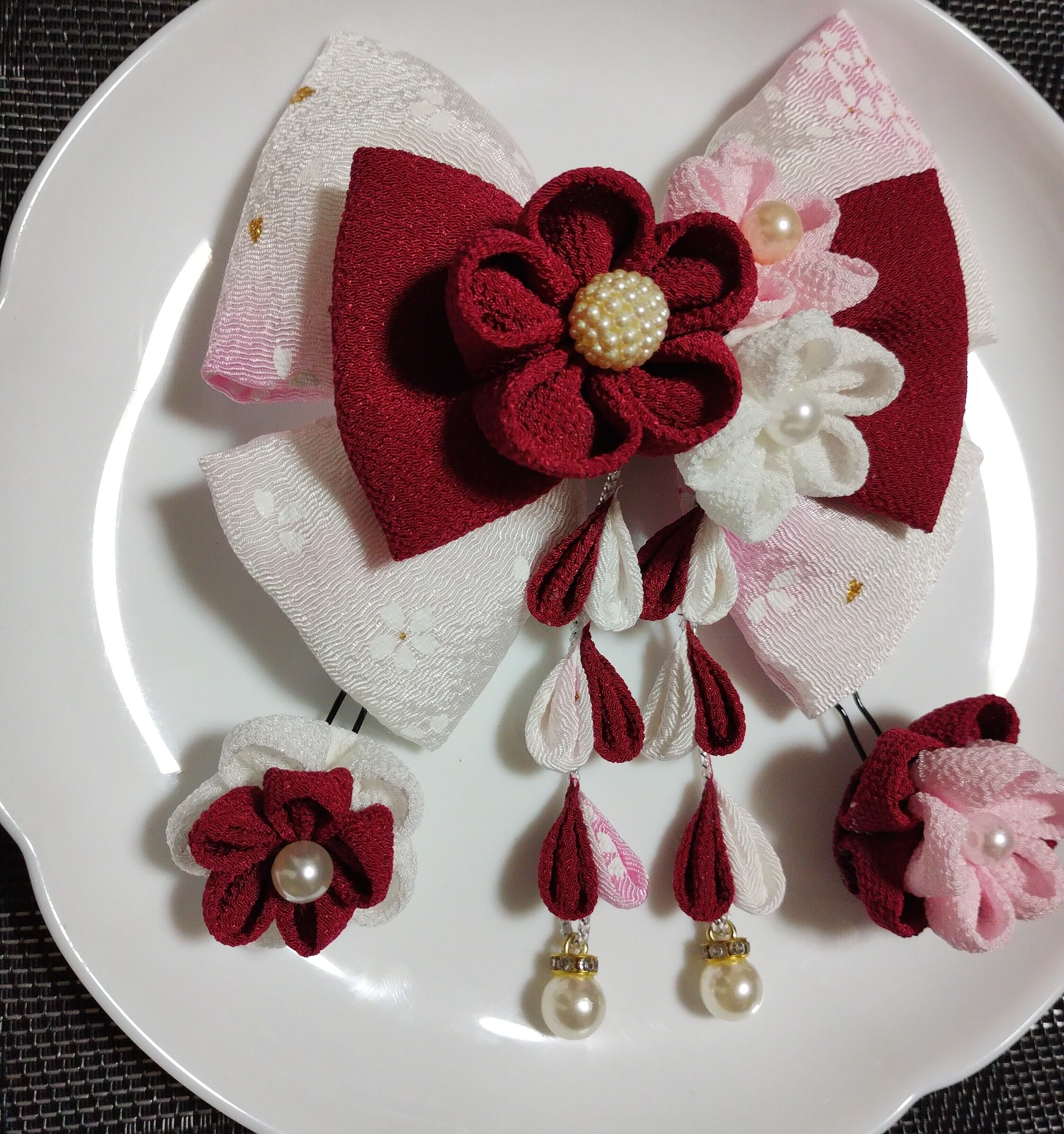 #花 #つまみ細工 #ヘヤピン #ヘアクリップ袴髪飾り#髪飾り #卒業式リボン#七五三髪飾り#着物#kimono #成人式前撮り#卒業式前撮り#卒業式ヘアスタイル#kamikazarin #つまみ細工#hair #pretty#kimono #beautiful#handmade#振袖#オーダーメイド #リボン#卒業式リボン#リボン赤