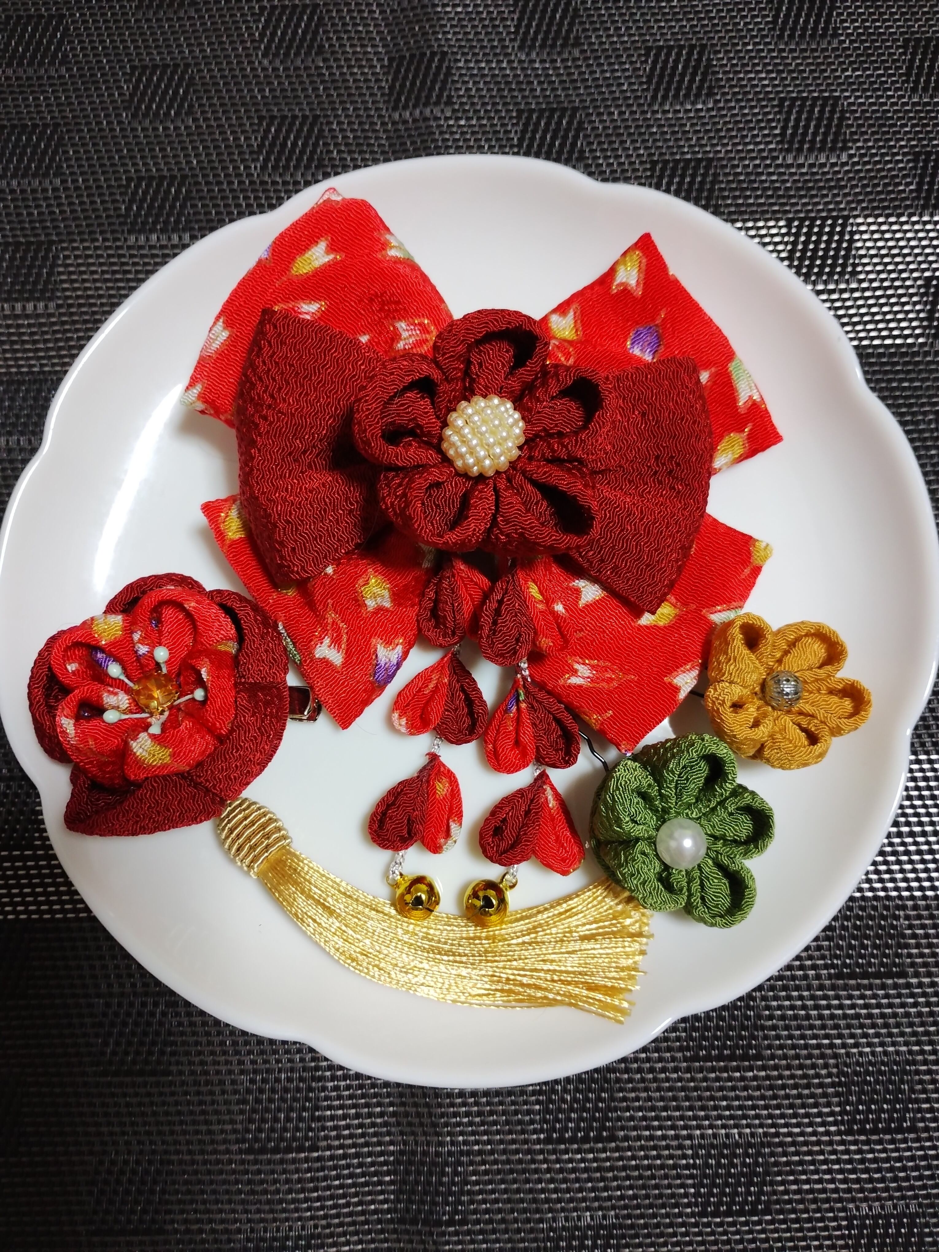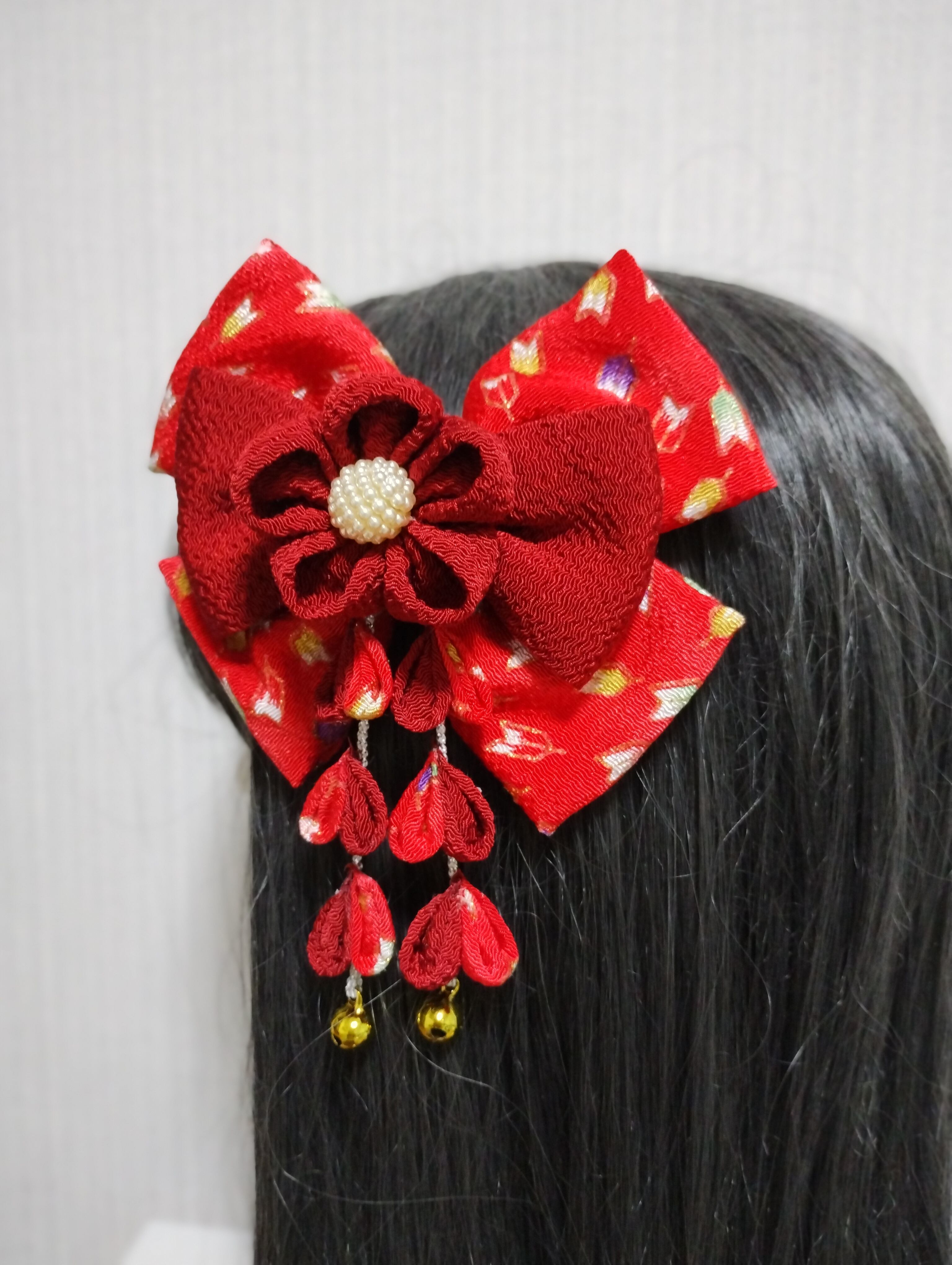 #花 #つまみ細工 #ヘヤピン #ヘアクリップ袴髪飾り#髪飾り #卒業式リボン#七五三髪飾り#着物#kimono #成人式前撮り#卒業式前撮り#卒業式ヘアスタイル#kamikazarin #つまみ細工#hair #pretty#kimono #beautiful#handmade#振袖#オーダーメイド #リボン#卒業式リボン#リボン赤