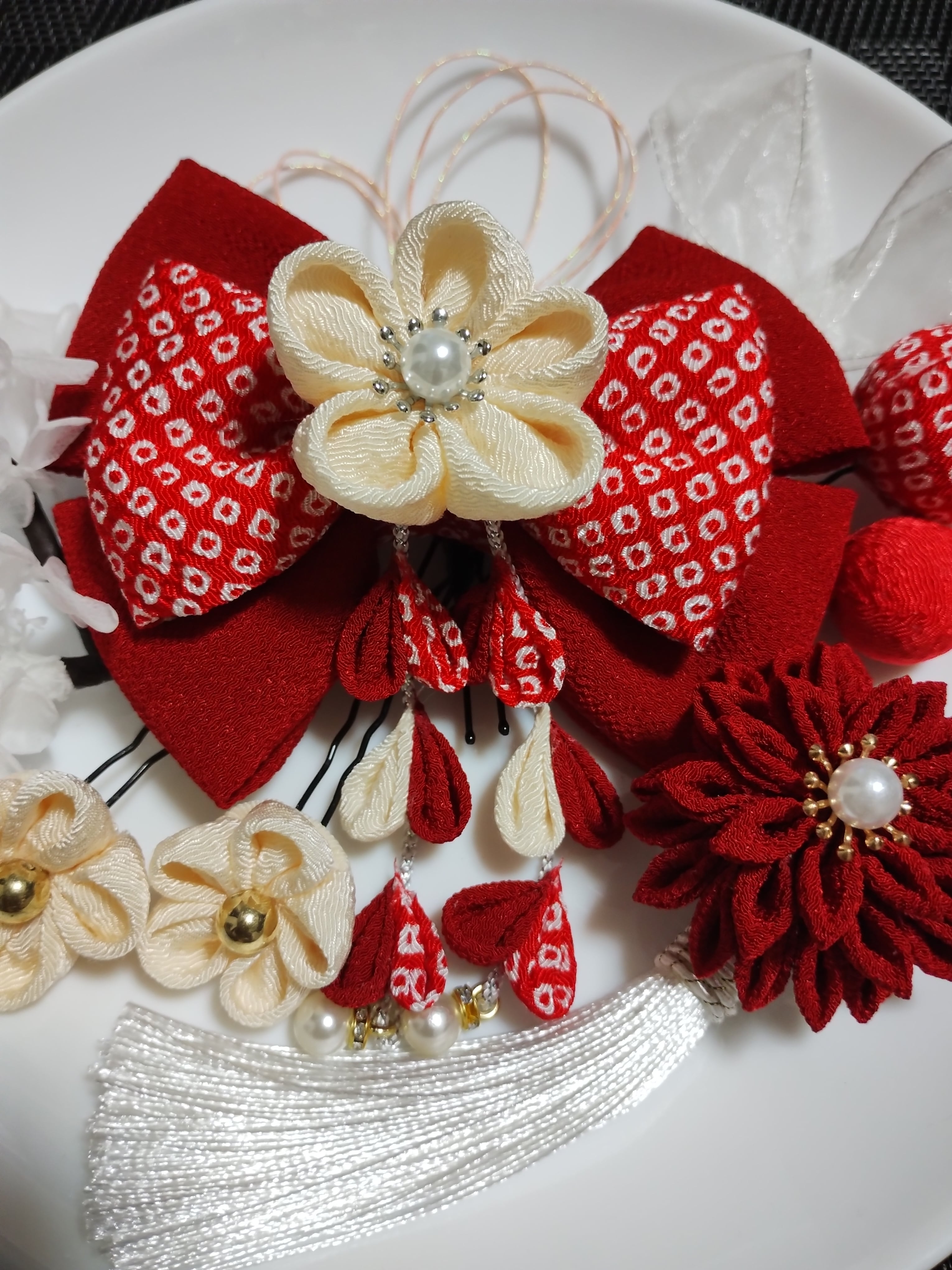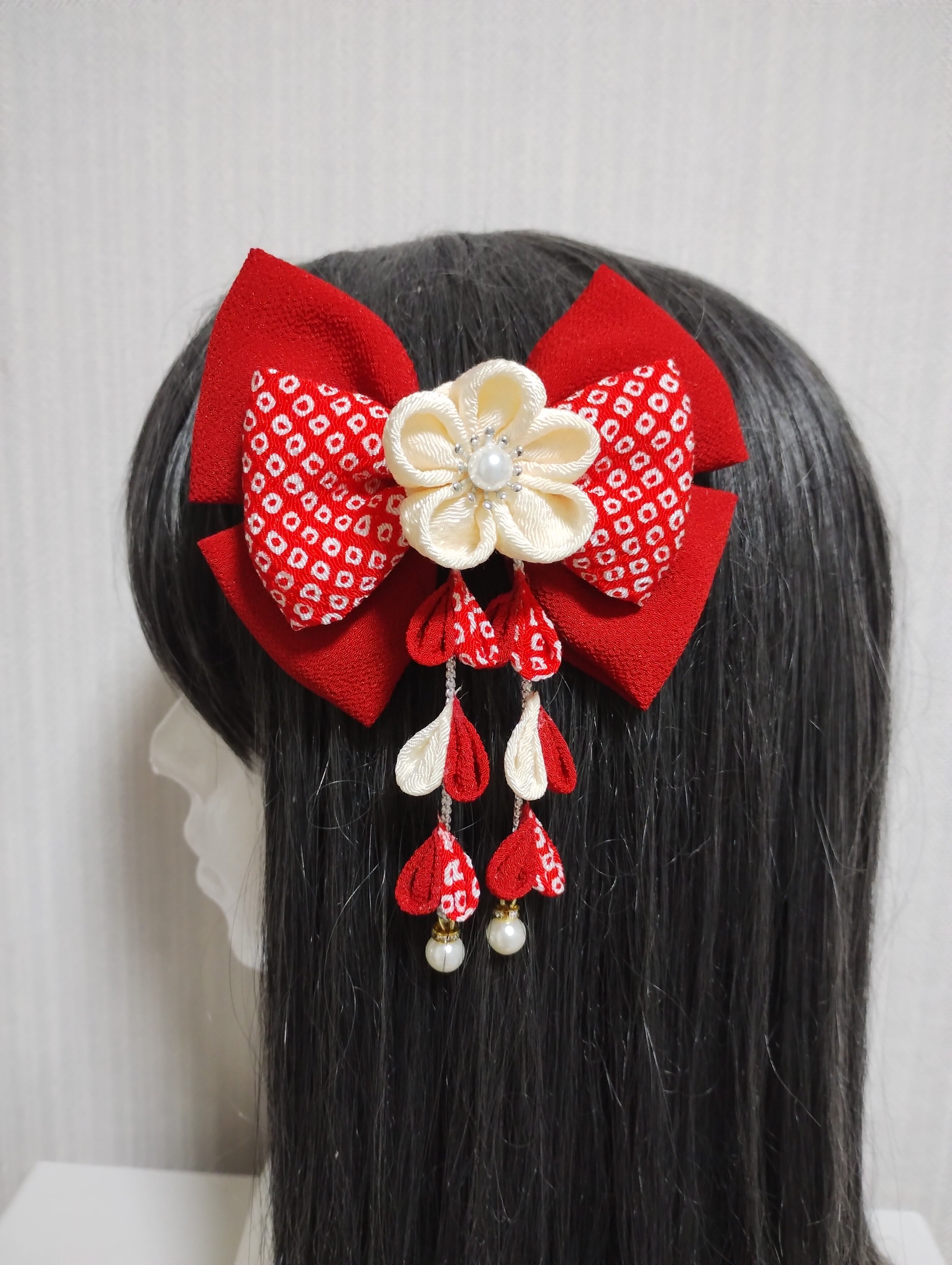 #花 #つまみ細工 #ヘヤピン #ヘアクリップ袴髪飾り#髪飾り #卒業式リボン#七五三髪飾り#着物#kimono #成人式前撮り#卒業式前撮り#卒業式ヘアスタイル#kamikazarin #つまみ細工#hair #pretty#kimono #beautiful#handmade#振袖#オーダーメイド #リボン#卒業式リボン#リボン赤