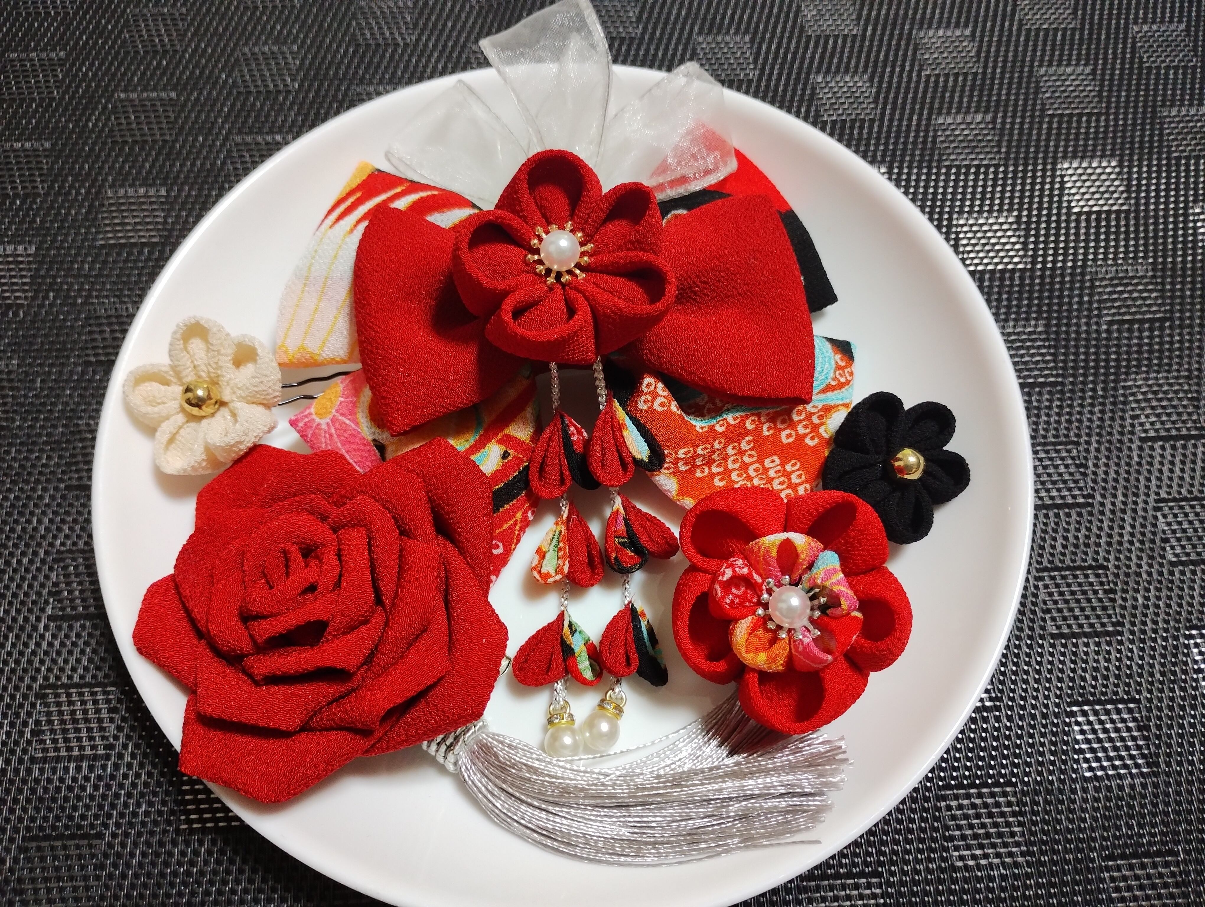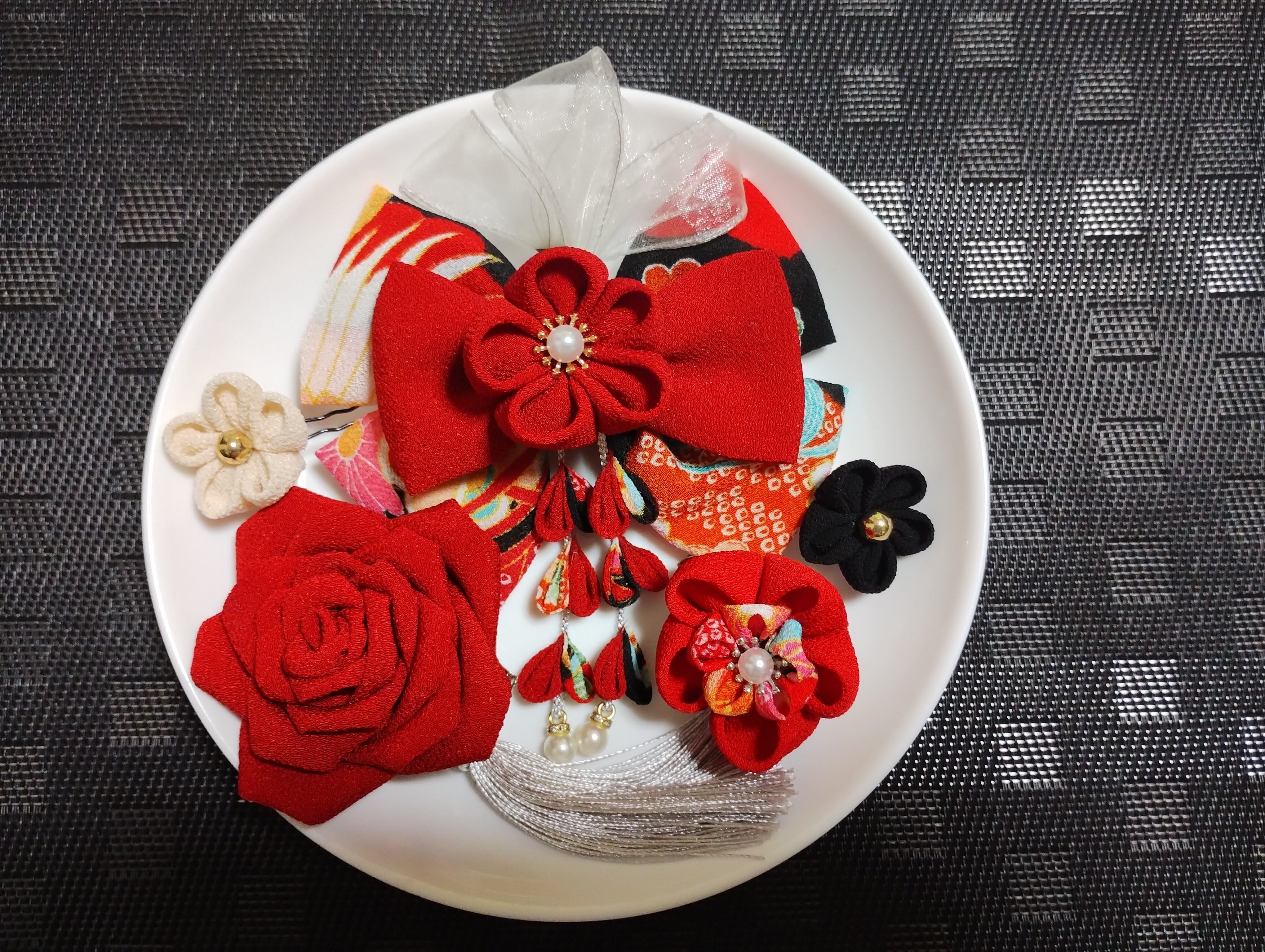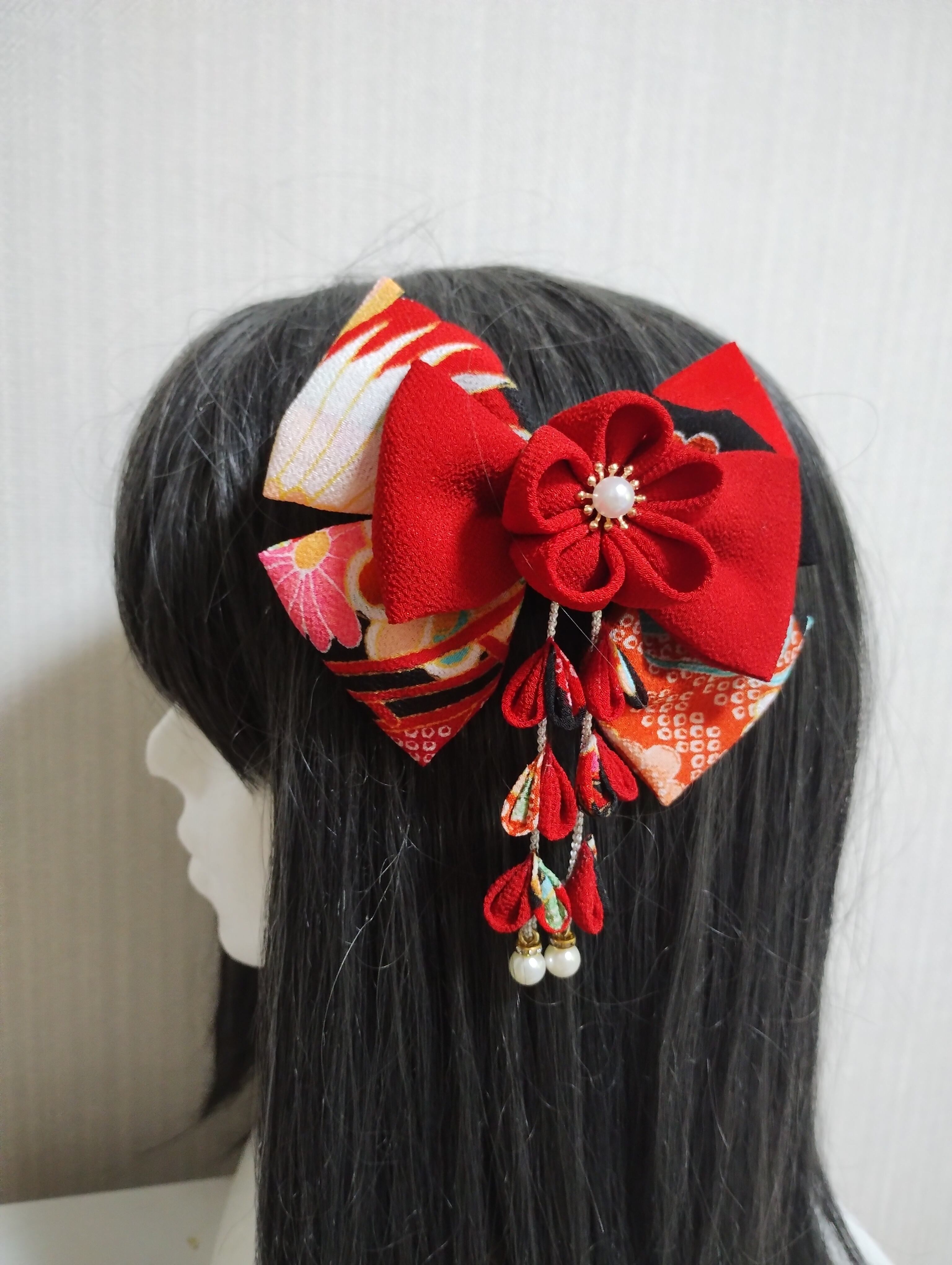 #花 #つまみ細工 #ヘヤピン #ヘアクリップ袴髪飾り#髪飾り #卒業式リボン#七五三髪飾り#着物#kimono #成人式前撮り#卒業式前撮り#卒業式ヘアスタイル#kamikazarin #つまみ細工#hair #pretty#kimono #beautiful#handmade#振袖#オーダーメイド #リボン#卒業式リボン#リボン赤