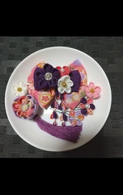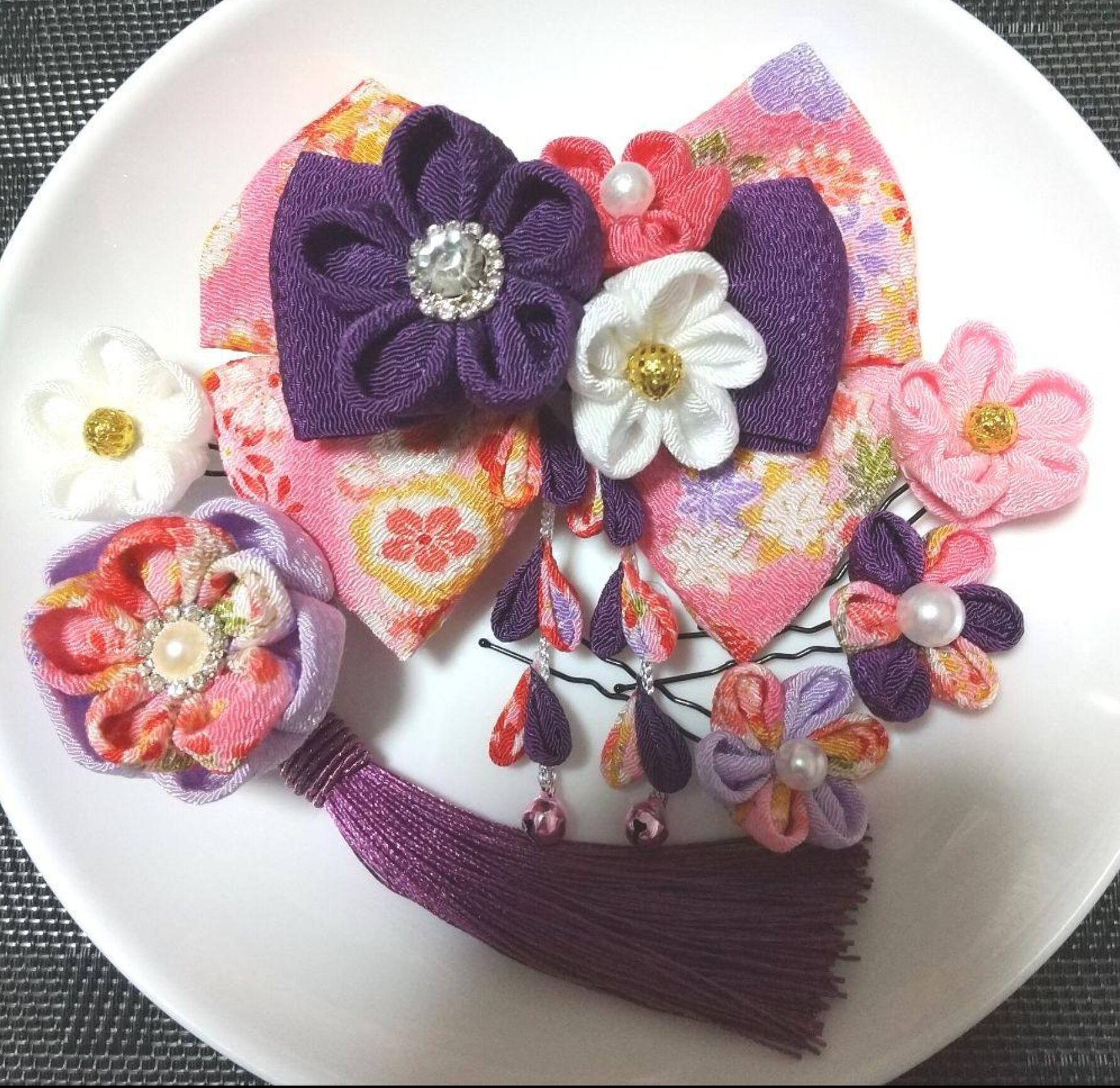#卒業式髪飾り#つまみ細工リボン #矢絣髪飾り髪飾り#布がたり#つまみ細工髪飾り#髪飾り紫#はいからさんリボン#japan#卒業式ヘア#卒業式 #プリザーブドフラワー