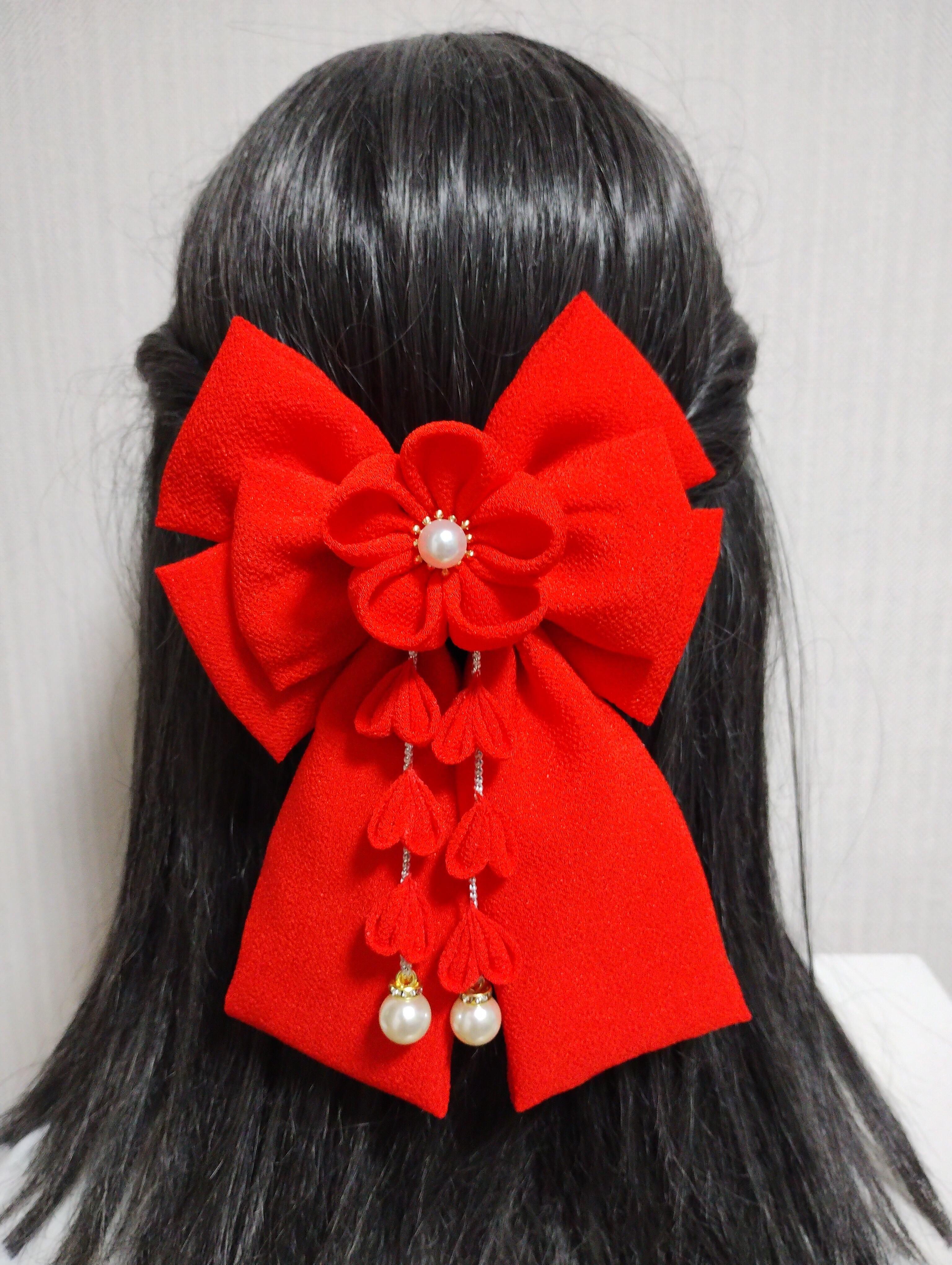 #花 #つまみ細工 #ヘヤピン #ヘアクリップ袴髪飾り#髪飾り #卒業式リボン#七五三髪飾り#着物#kimono #成人式前撮り#卒業式前撮り#卒業式ヘアスタイル#kamikazarin #つまみ細工#hair #pretty#kimono #beautiful#handmade#振袖#オーダーメイド #リボン#卒業式リボン#リボン赤