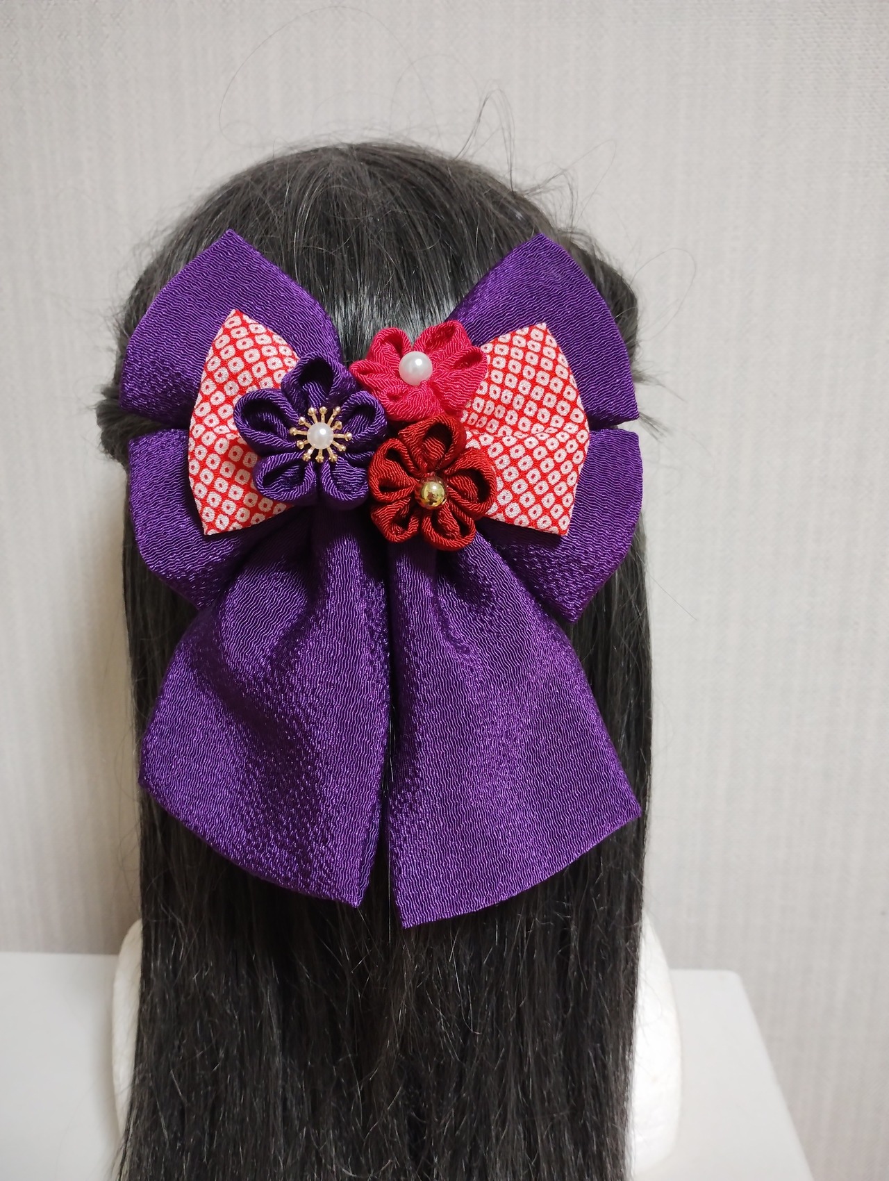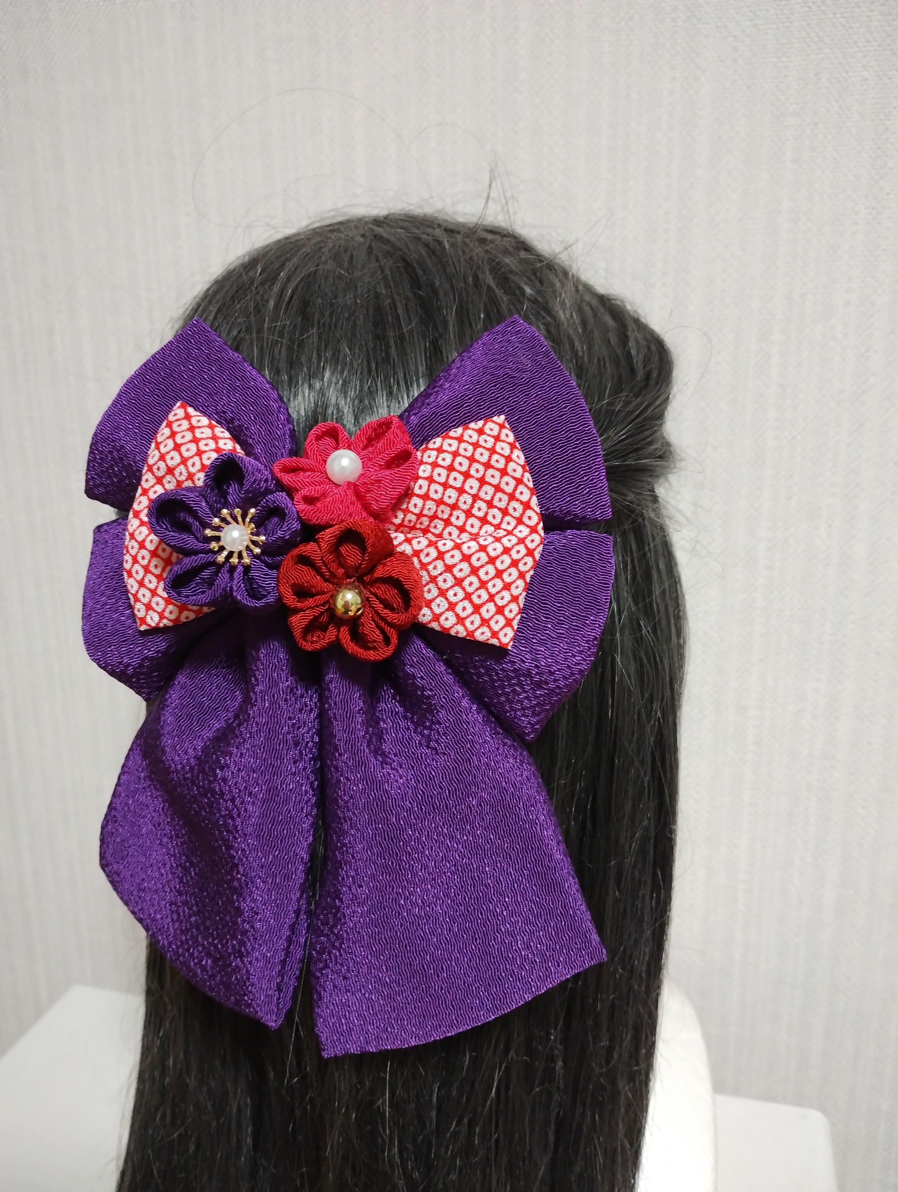 卒業式や入学式にぴったりな、華やかなリボンヘアアクセサリーをお探しの方にぴったりの商品です。上品なパープルカラーのリボンが、髪に華やかなアクセントをプラスしてくれます。ヘアピンで簡単に固定でき、長時間つけていても快適です。卒業式や入学式などの特別な日に、華やかさを演出してくれるアイテムとしておすすめです。