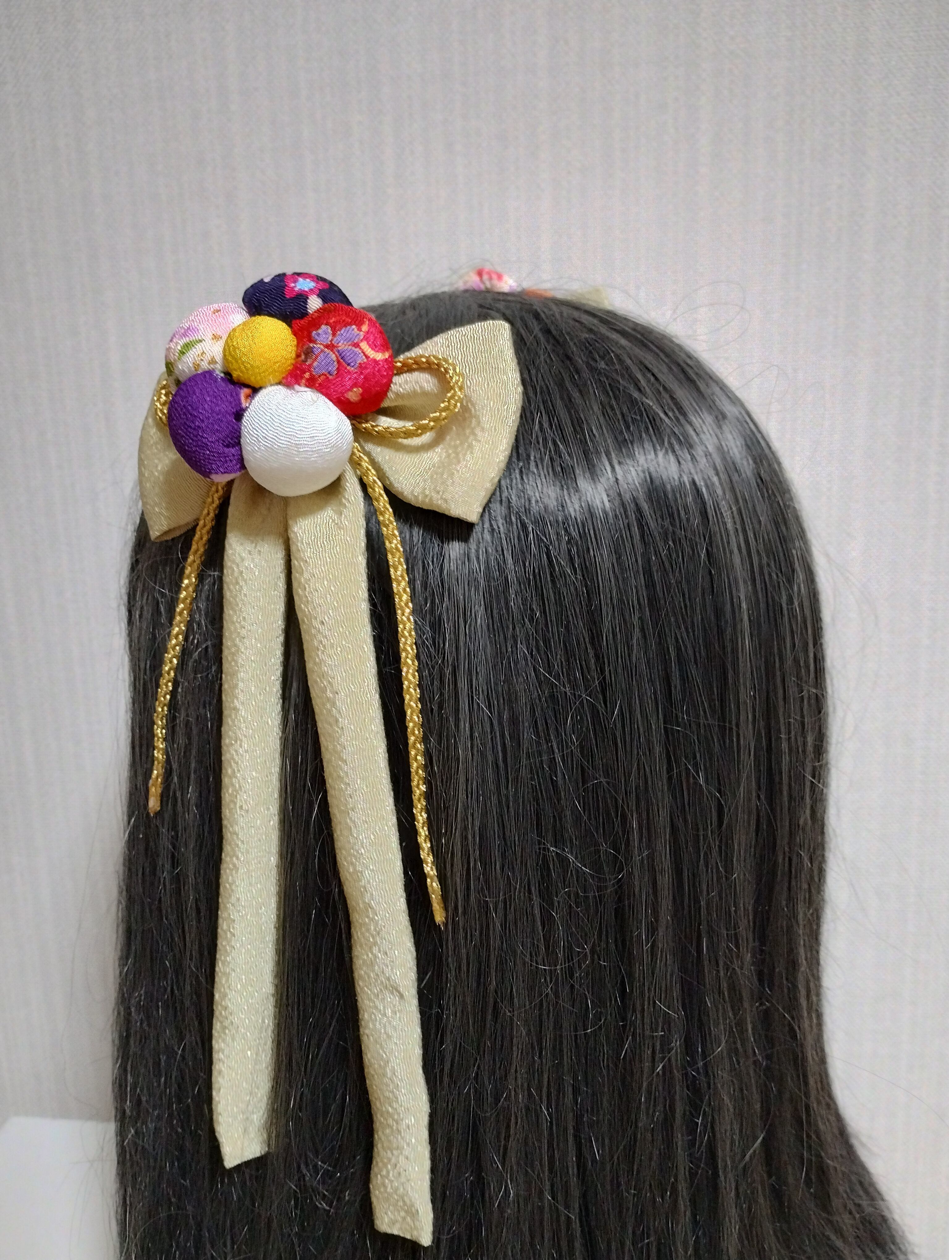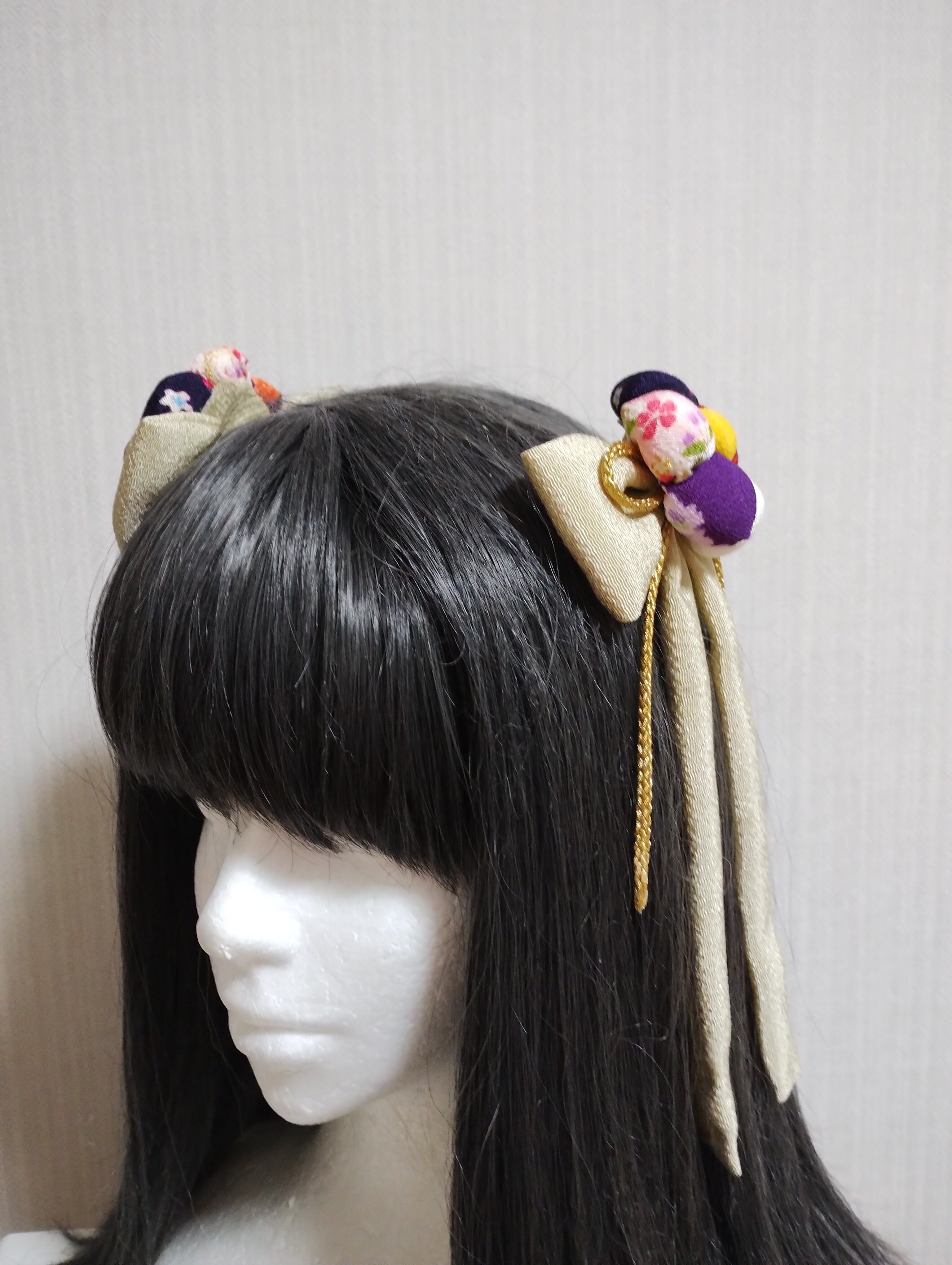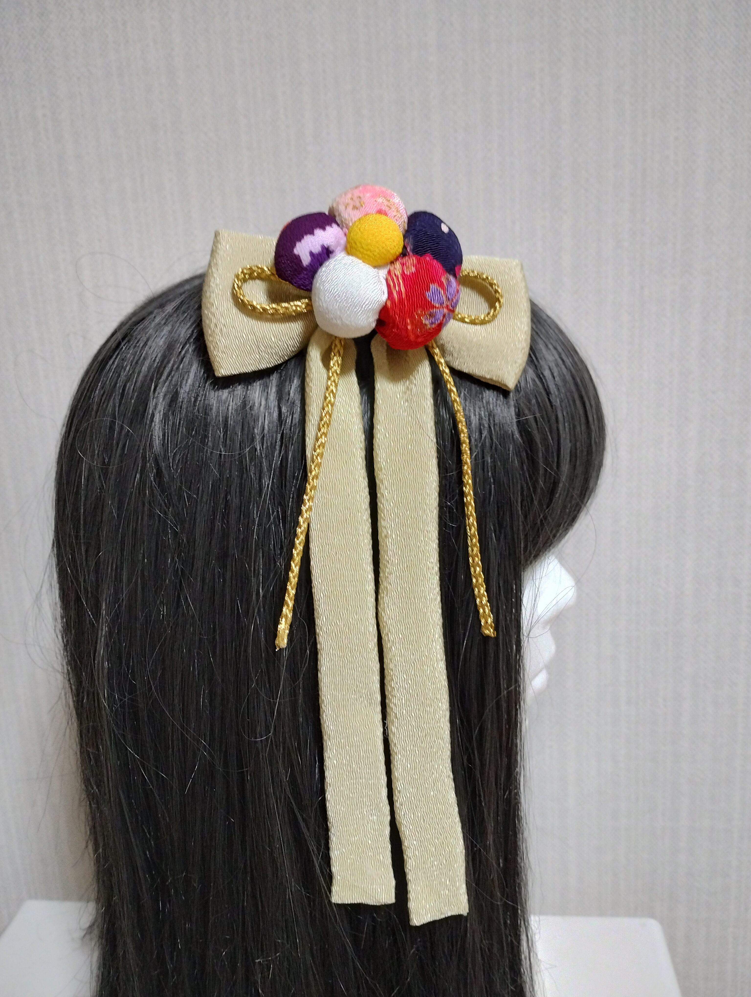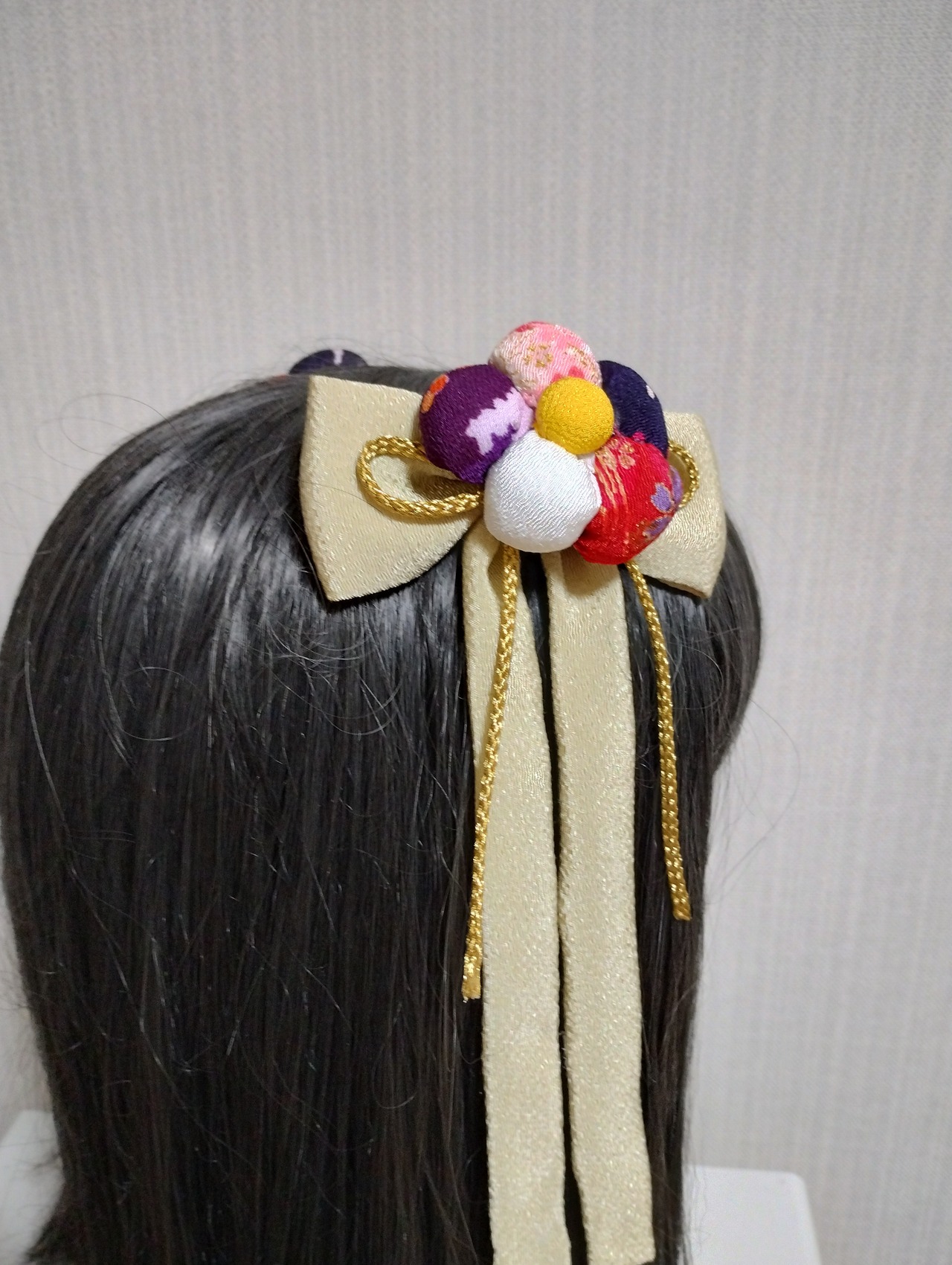 ご要望の商品、ツインテールリボン、卒業式や成人式、七五三などの特別なシーンにぴったりのアイテムです。上品なベージュの色合いで、どんなヘアスタイルにも調和し、華やかさを引き立ててくれます。ツインテールに添えたり、袴のリボンとしてもお使いいただける優れもの。記念すべき日の演出を一層華やかに彩ります。