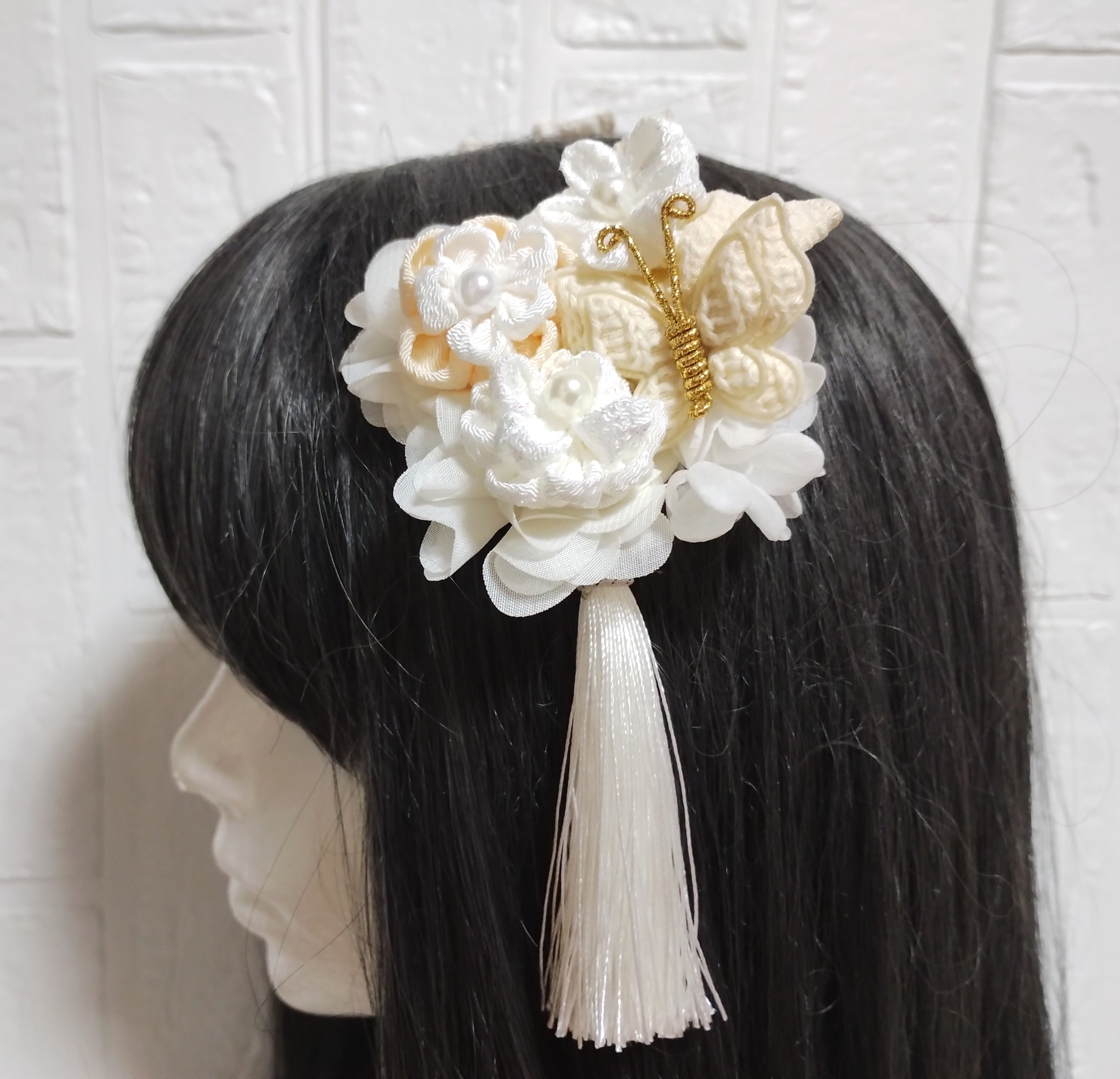 髪飾りアイボリーは、大切な日のお供として、あなたの美しさを一層引き立て、特別な時間を彩ってくれることでしょう。