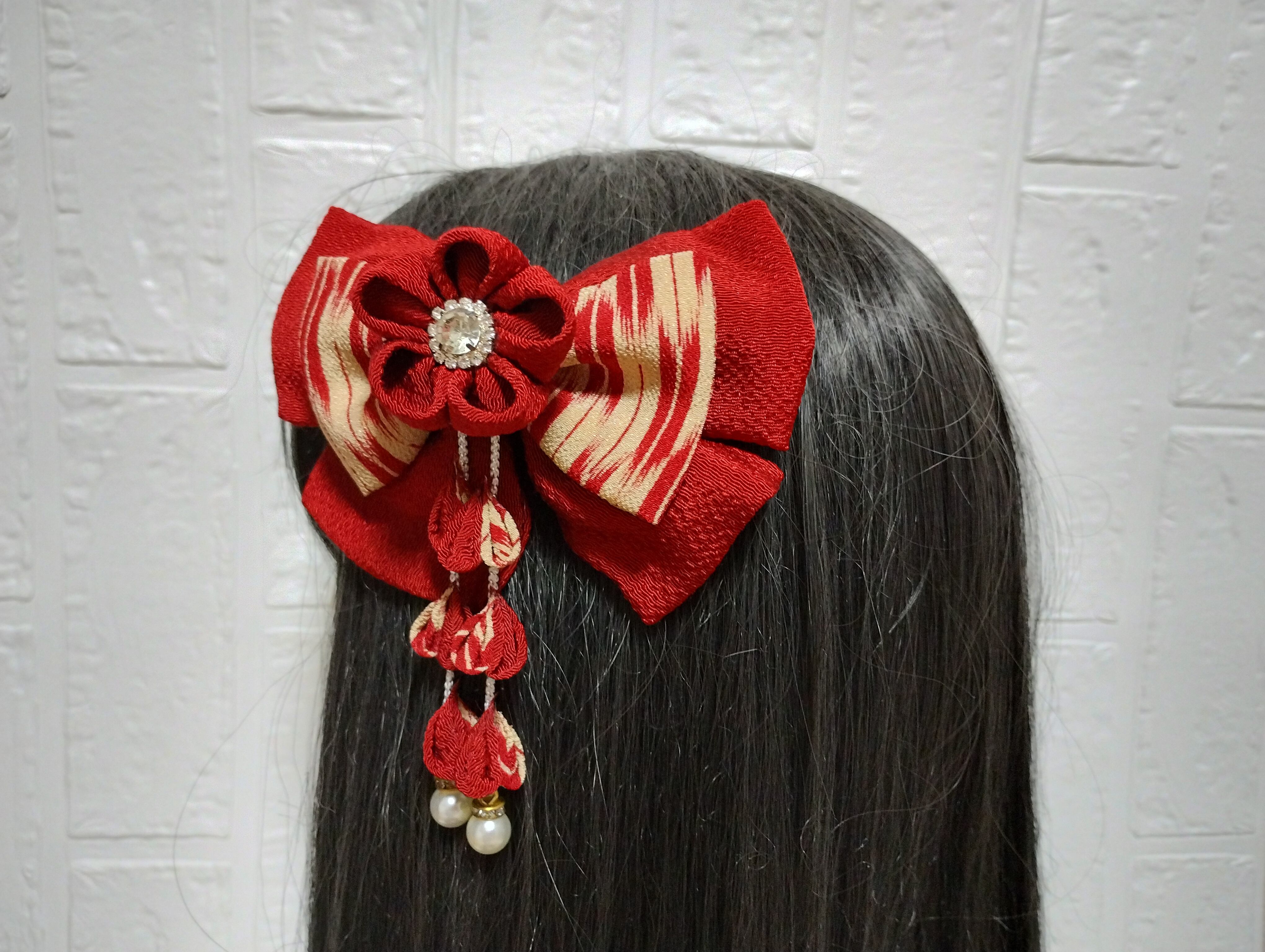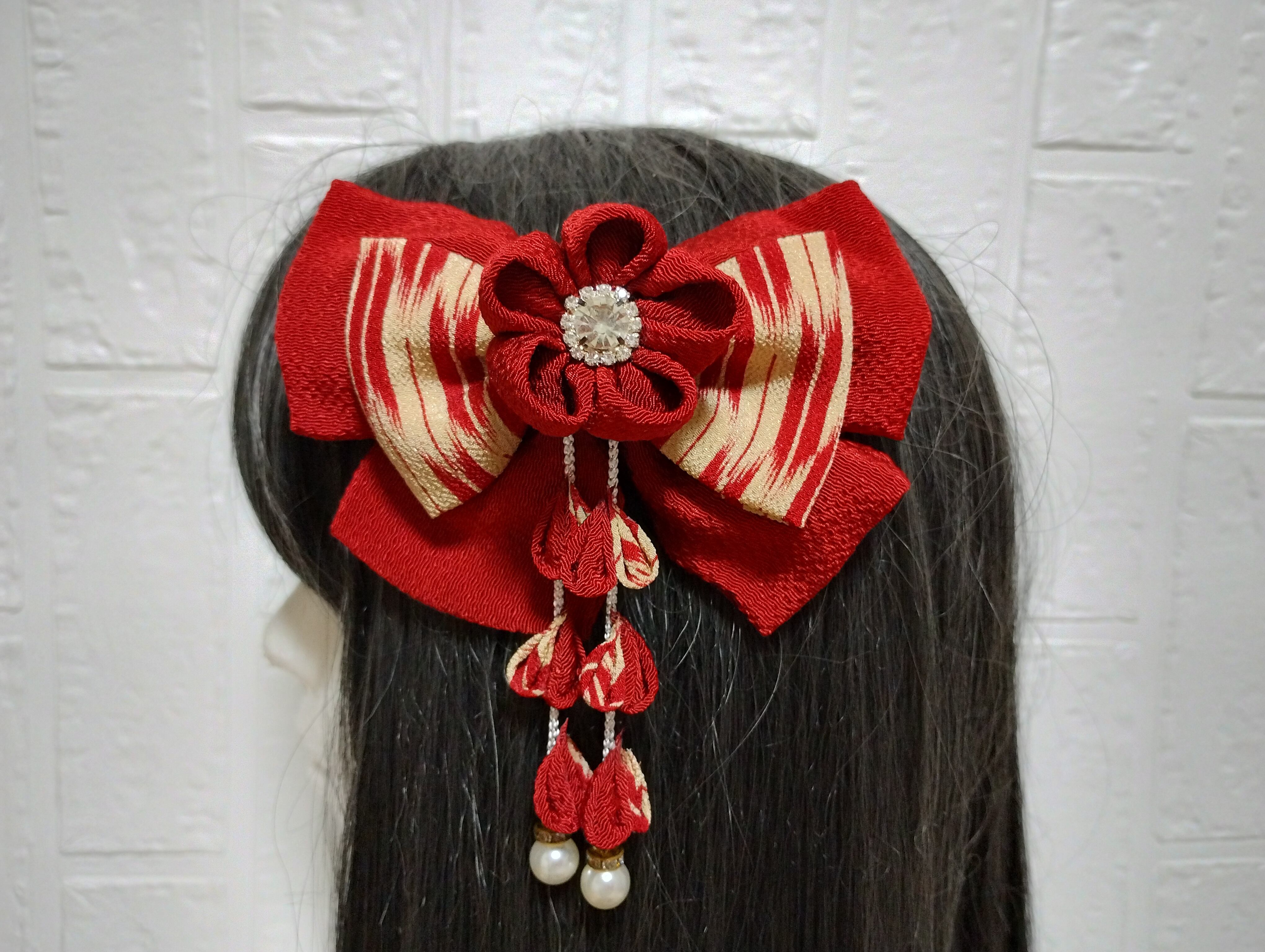色打掛、成人式、卒業式、七五三、浴衣、結婚式など、さまざまなシーンで活躍する和装髪飾りとしておすすめです。ハンドメイド作品はすべて1点ものですので、誰ともかぶらない、唯一無二の作品をお楽しみいただけます(^_^)