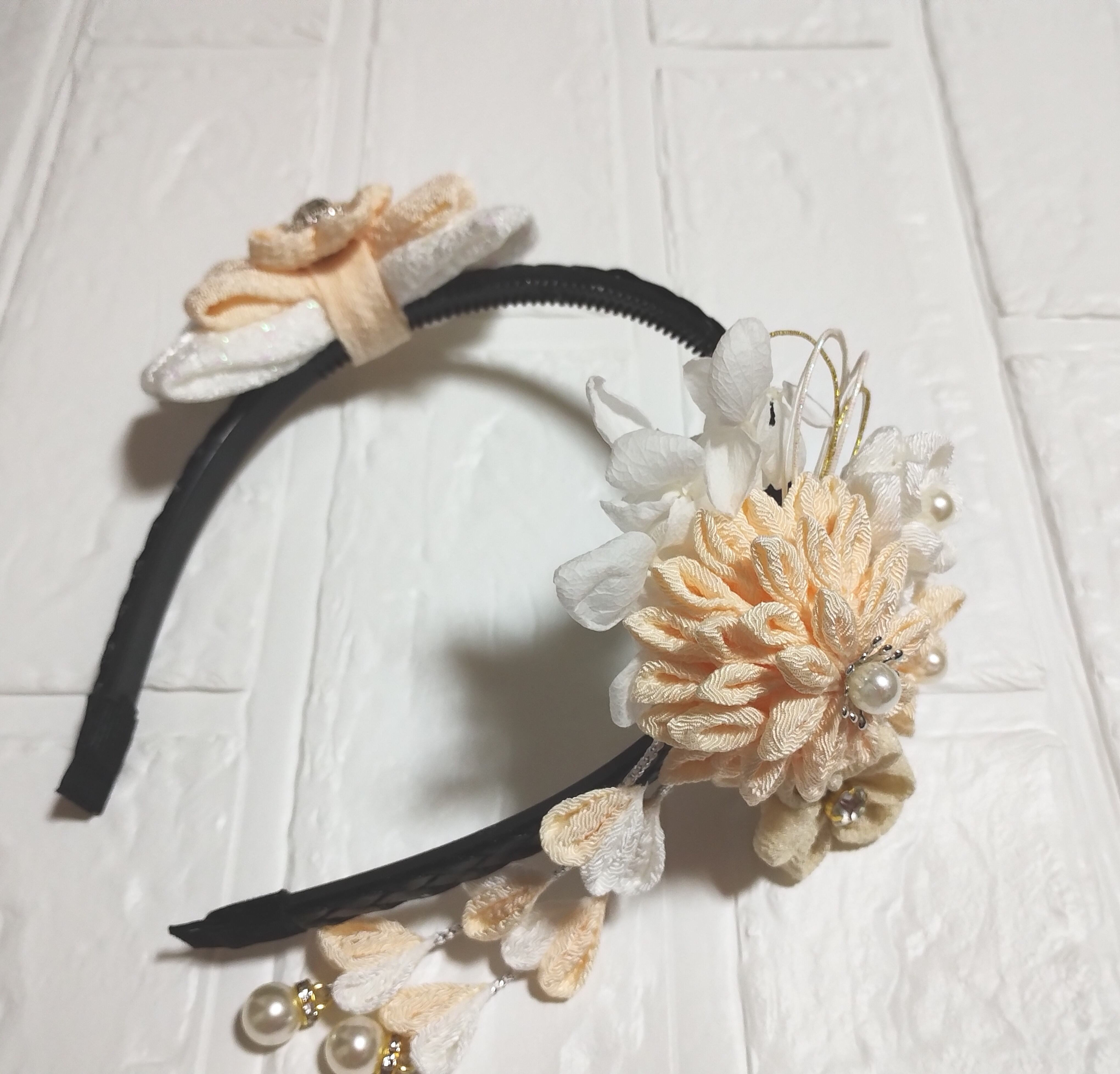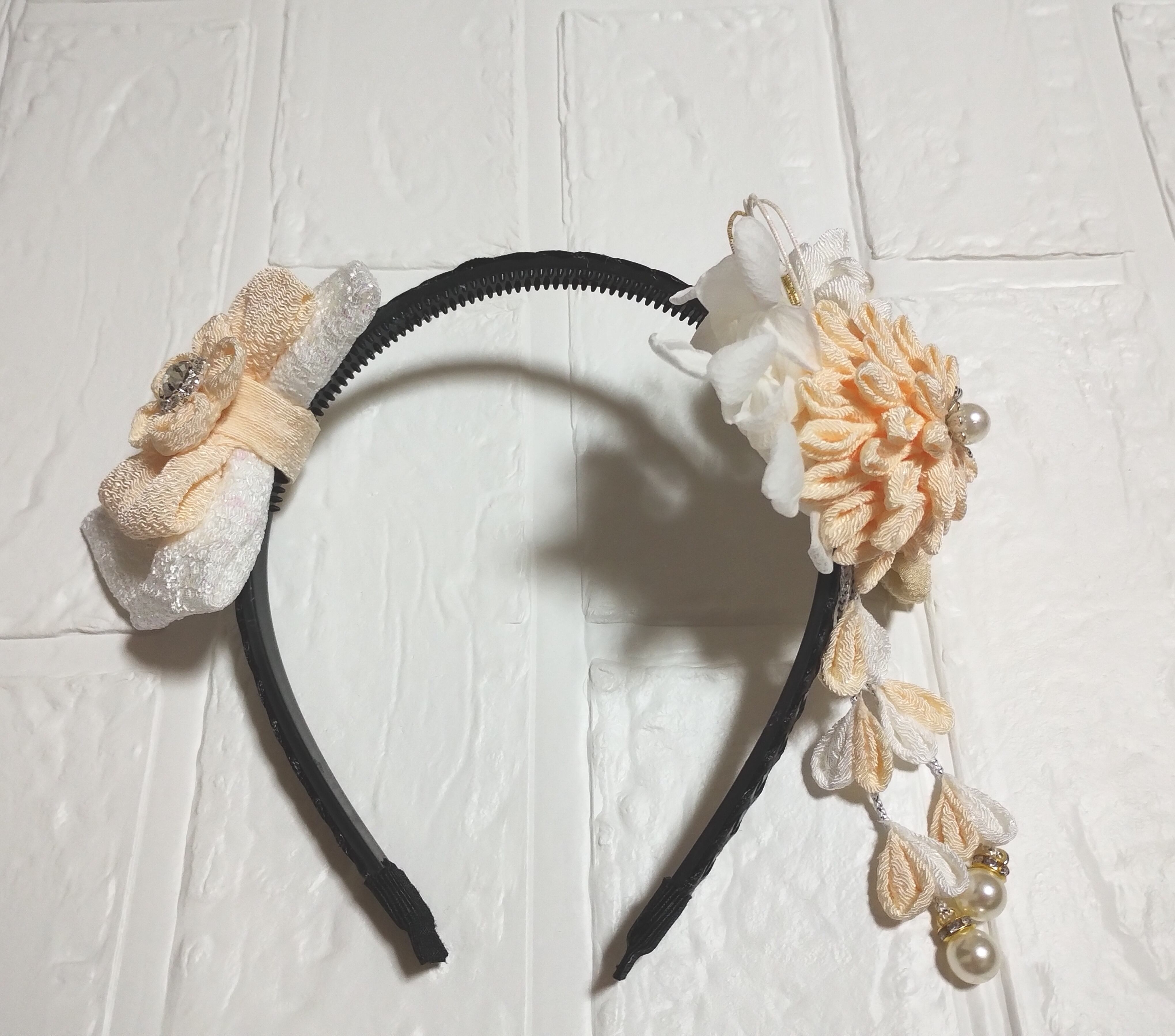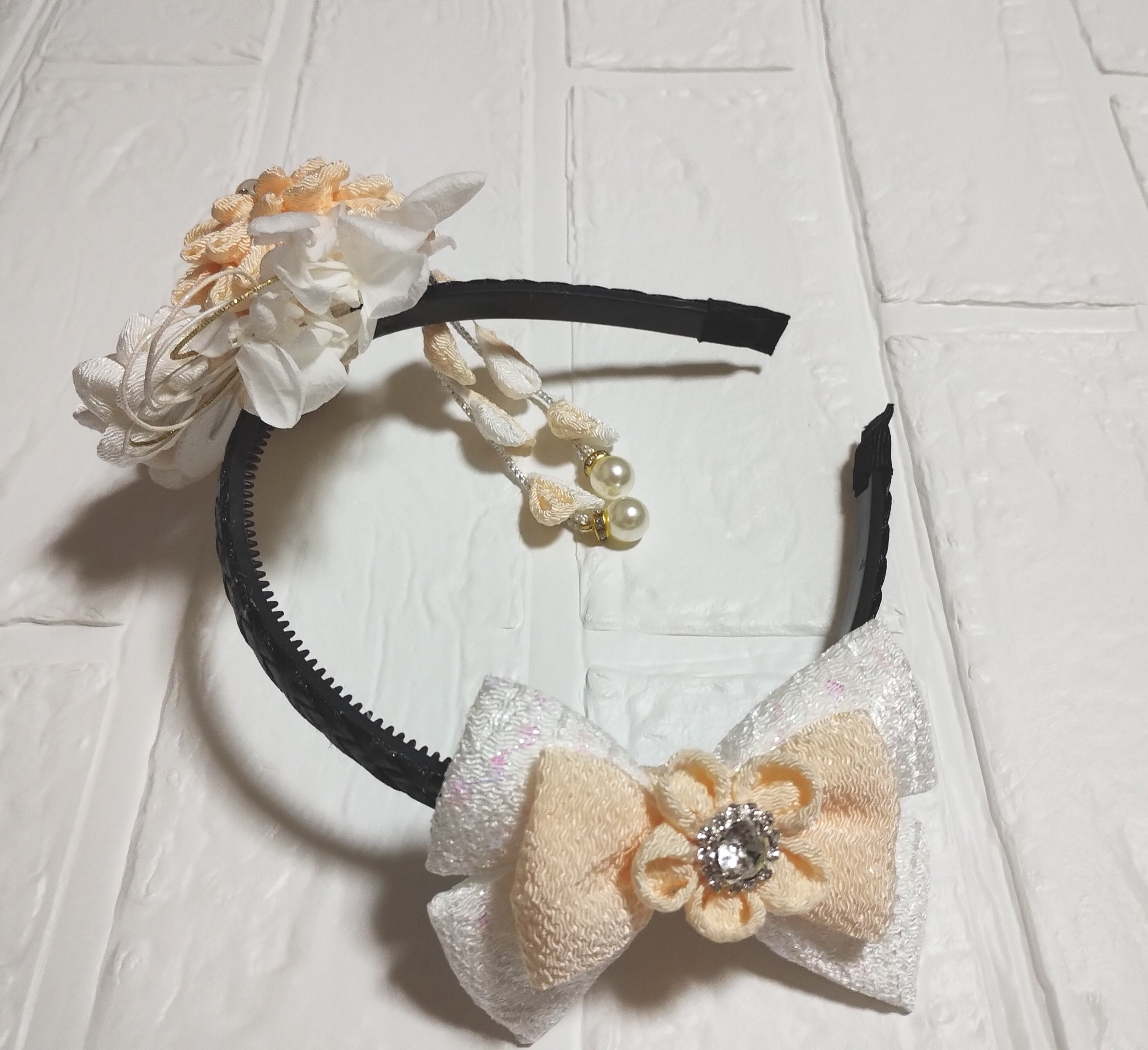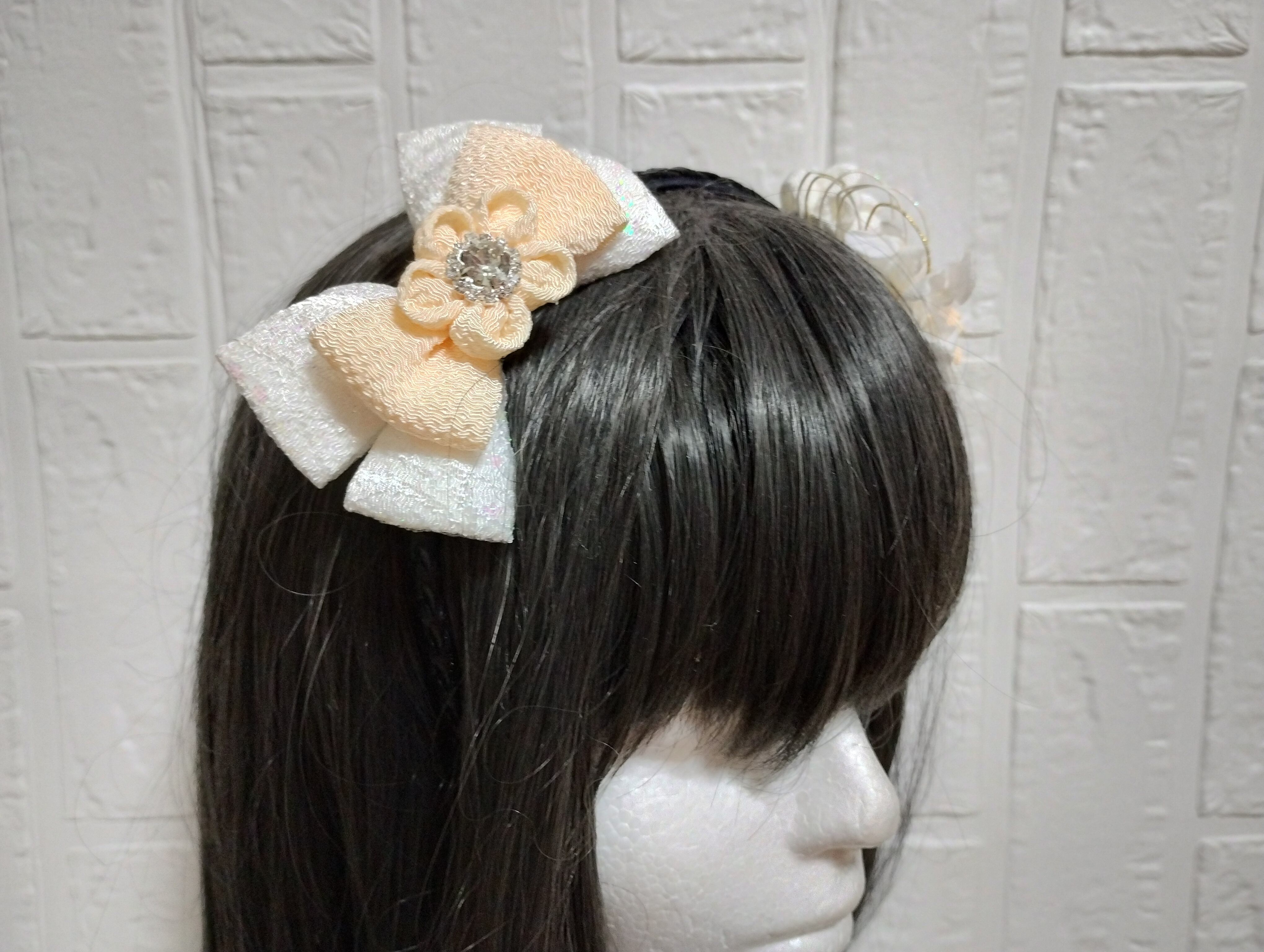 ショートカットの方や髪の毛がまだ少なくてピンが止めづらいお子さまでも、カチューシャになっておりますので、安心して着けて頂けます。